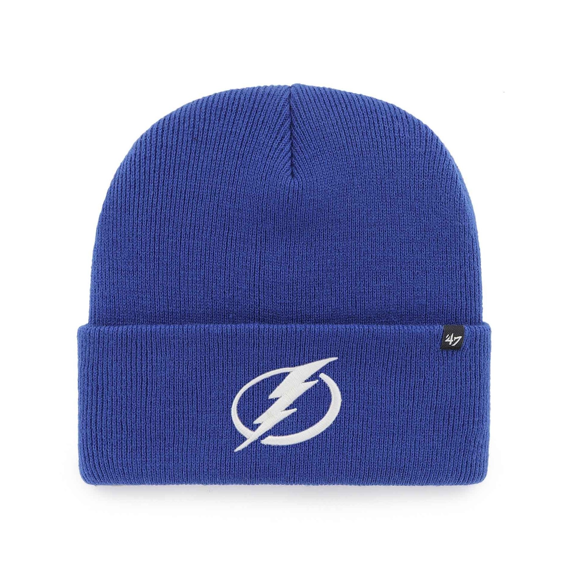 47 Tampa Bay Lightning beanie är en varm vintermössa för män eller kvinnor med präglat broderi av hockeylaget Lightning på framsidan och en liten "47"-etikett på sidan.