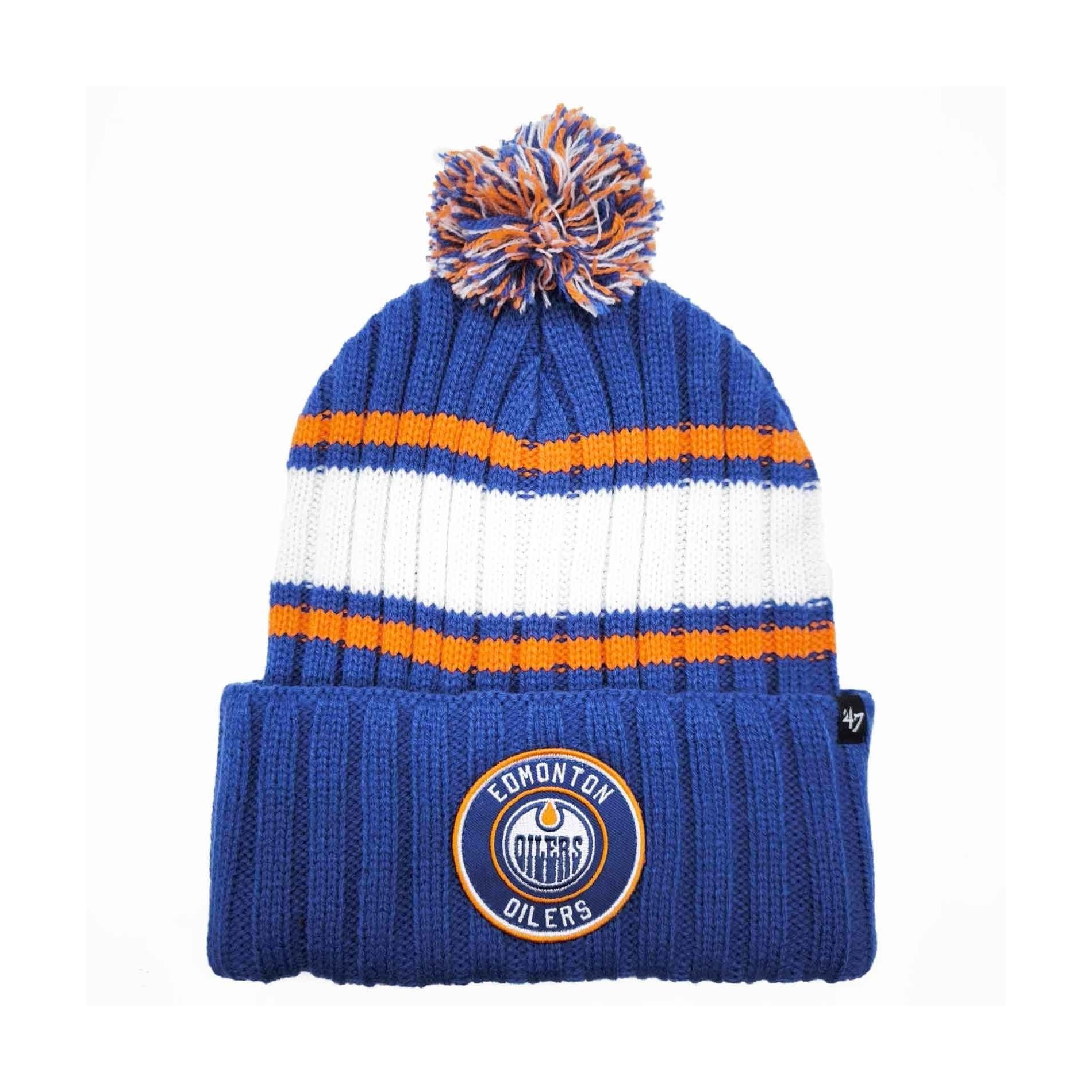 Visa ditt stöd för Edmonton Oilers med denna pom-pom mössa från "Plateau" kollektionen från '47 Brand, under officiell NHL-licens. Den här mössan kombinerar komfort och stil, perfekt för kalla vinterdagar och för att heja på ditt favoritlag.