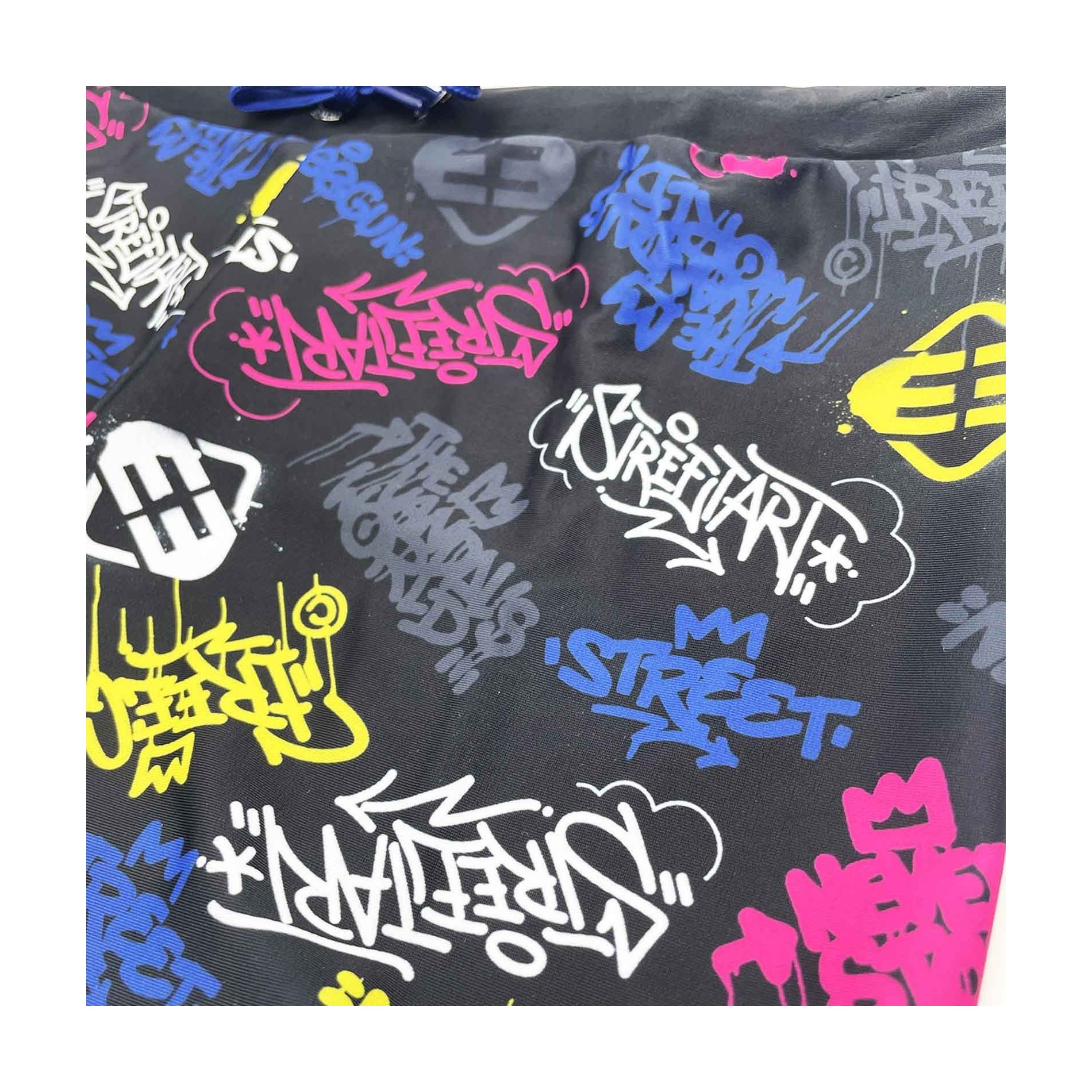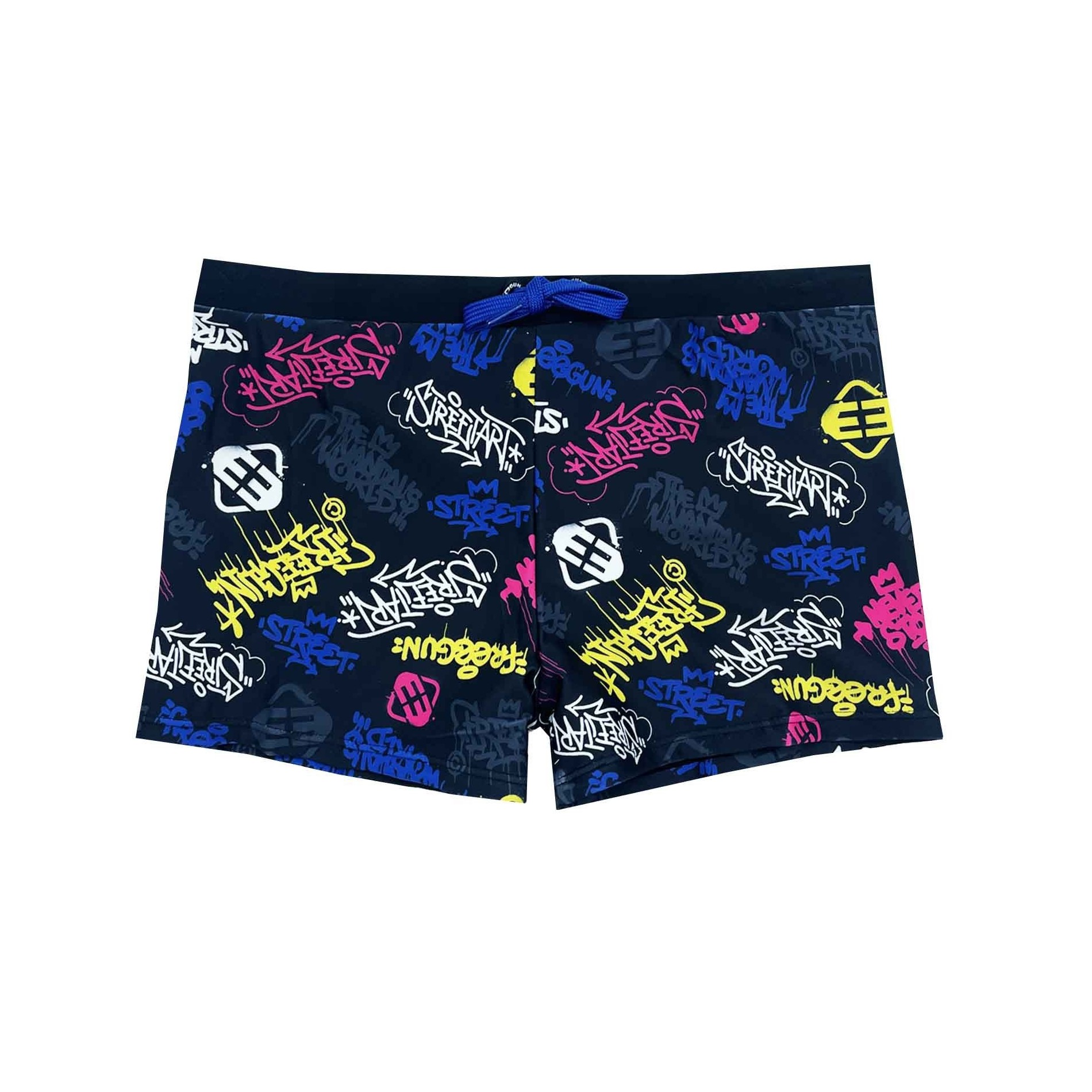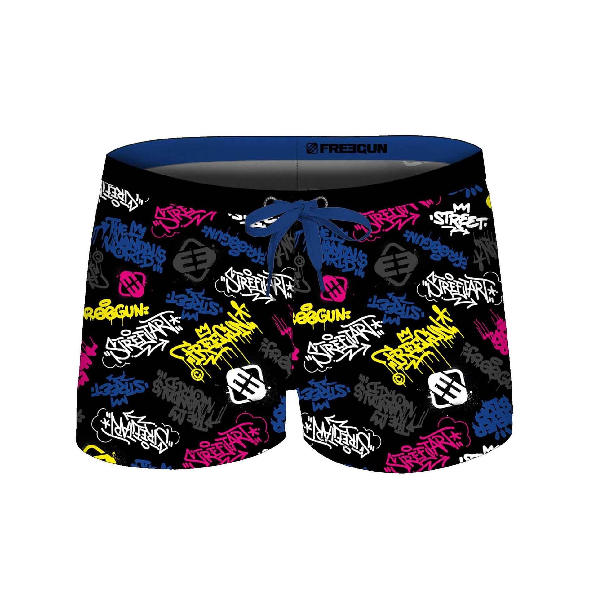 FREEGUN Pojke Baddräkt "Tag", med taggar och graffiti överallt, Utmärkt passform tack vare det elastiska tyget, Lätt att justera med dragsnöret. 86% polyester 14% elastan