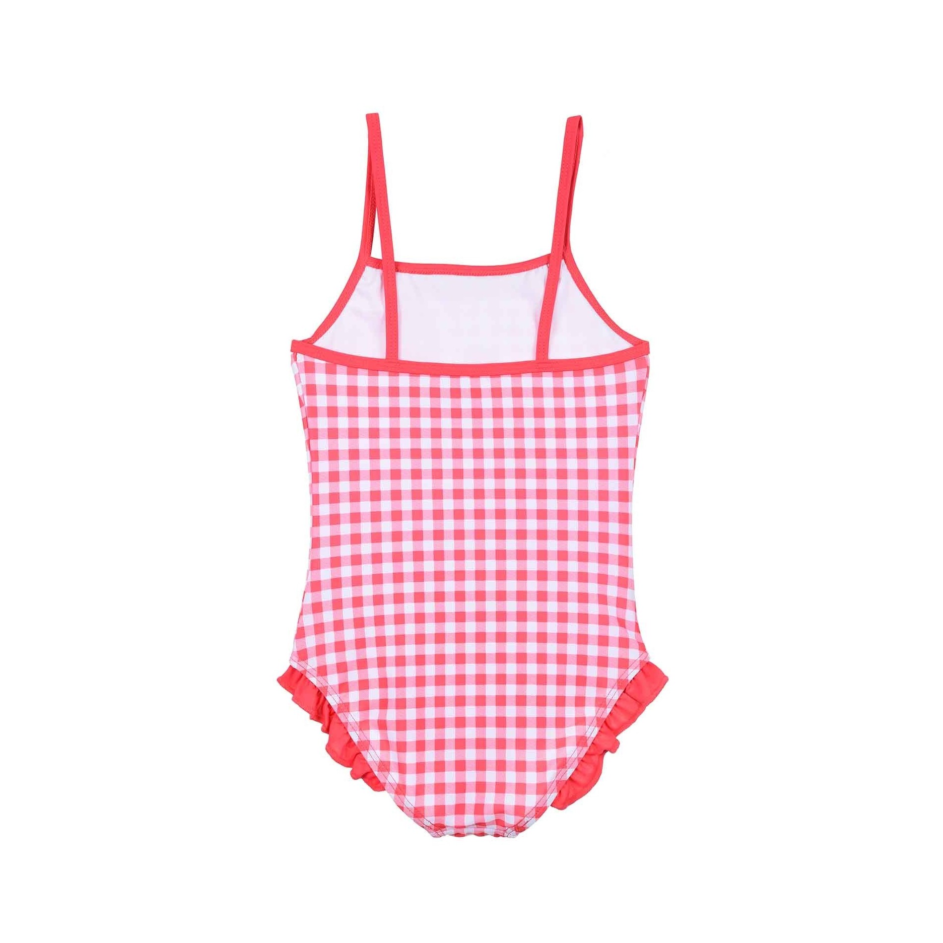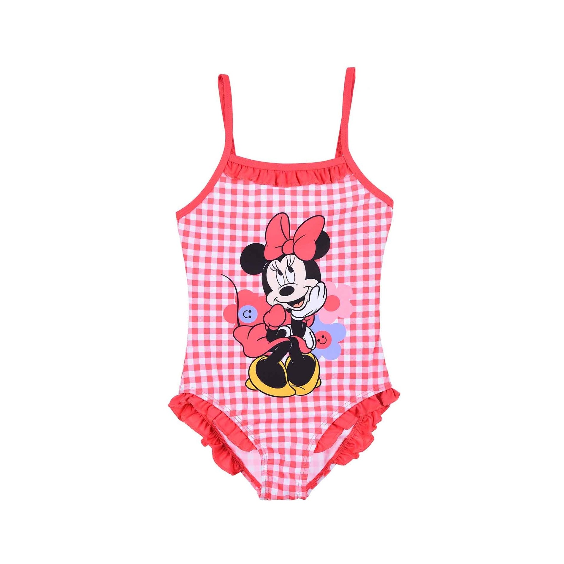 Bedårande Minnie Disney 1-dels baddräkt för flickor, retro gingham-tryck med volanger. Finns i rött eller lila. Bekväm och officiellt licensierad.