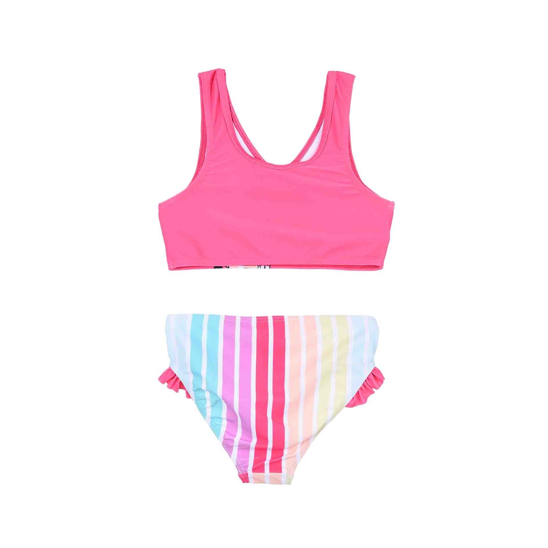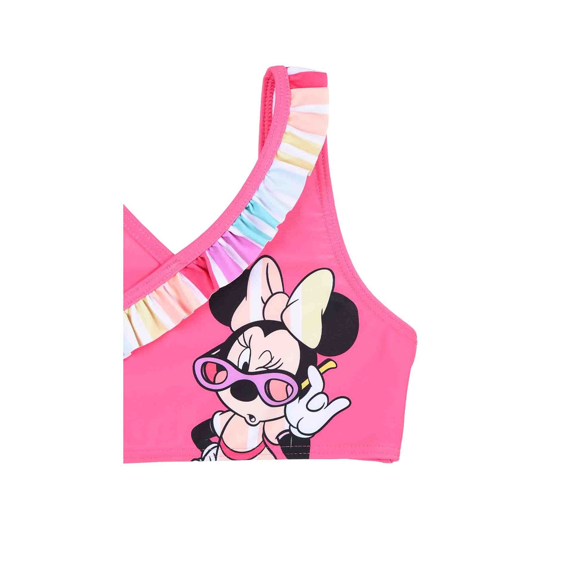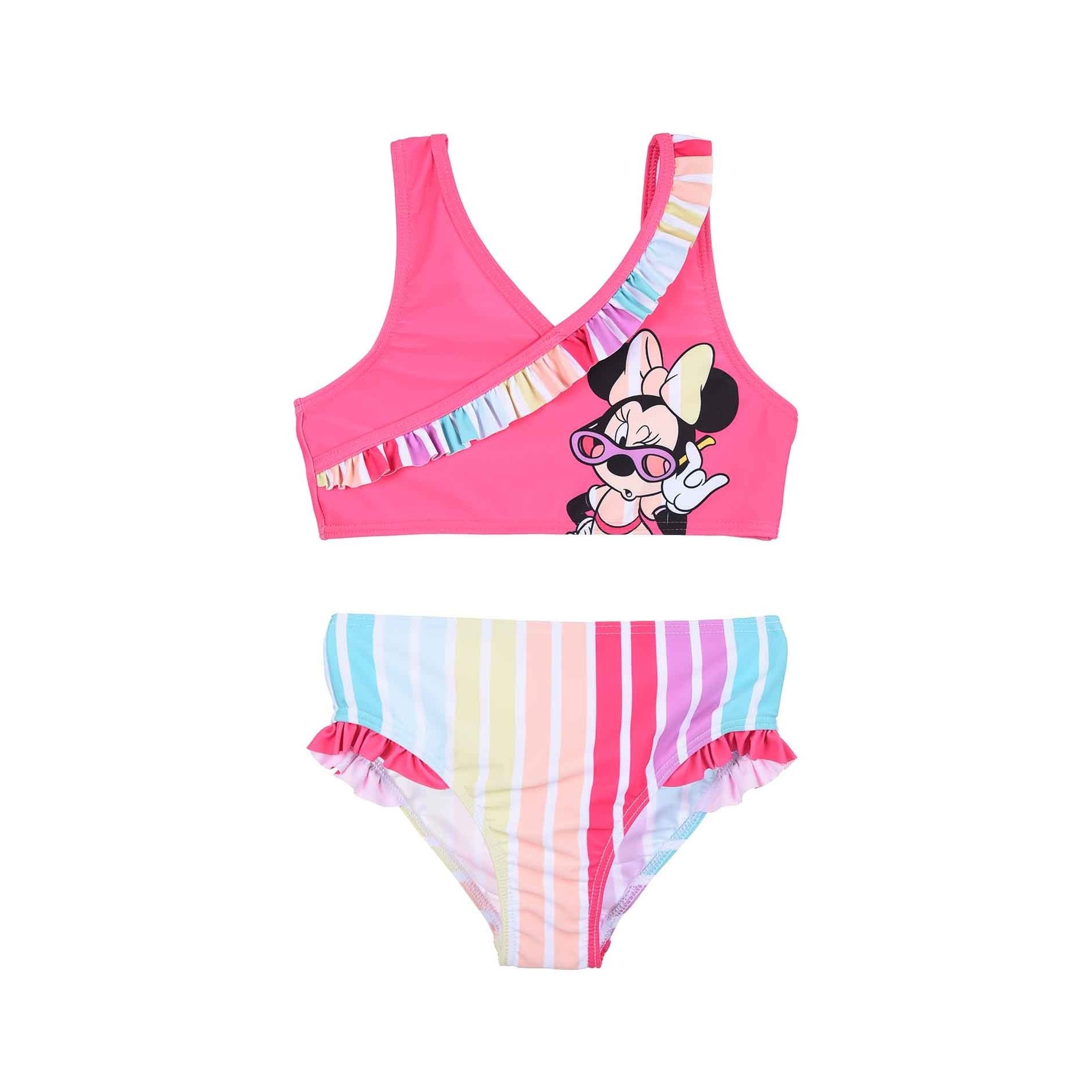 Minnie Disney 2-delad baddräkt för flickor. Tropisk look med färgglada volanger. Rosa eller fuchsia. Perfekt för semester, strand och pool.
