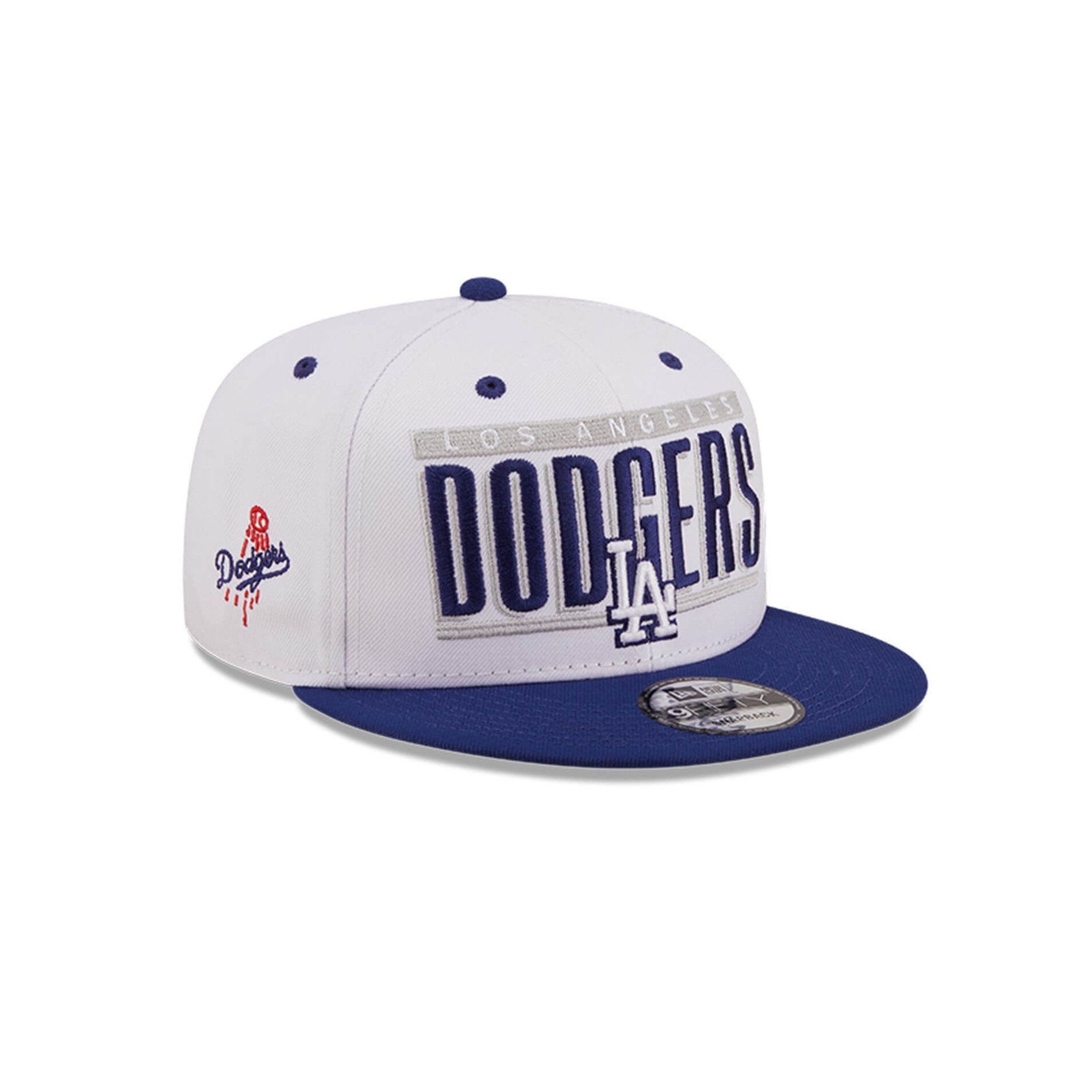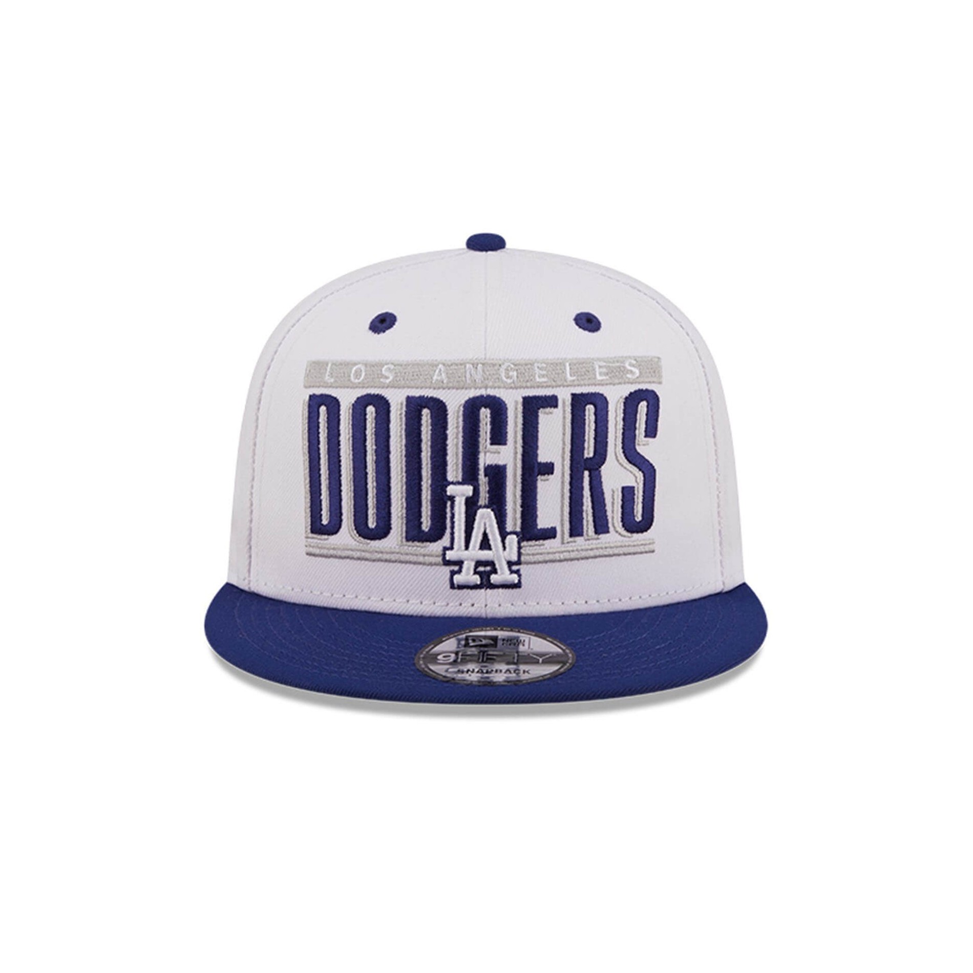 New Era 9FIFTY Los Angeles Dodgers Retro Title MLB cap, snapbackjusteringssystem, bomullsmaterial med Los Angeles Dodgers-logotyp på sidan och Los Angeles Dodgers-skrift på framsidan.