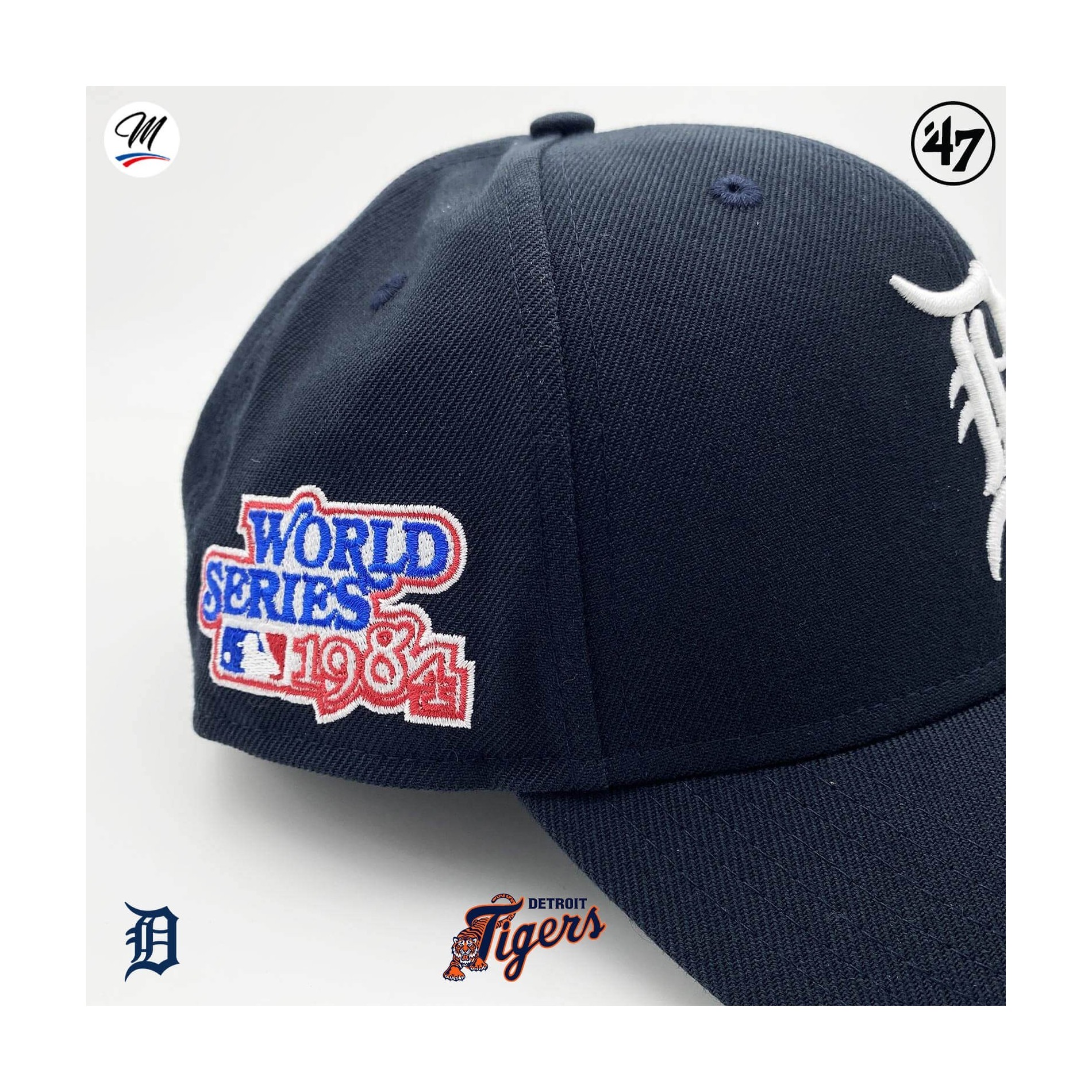 Detroit Tigers Sure Shot MVP '47 Snapback MLB World Series 1984 keps är en strukturerad, böjd basebollkeps med präglat broderi på framsidan, '47 broderi på sidan och en kardborreknäppning på baksidan.