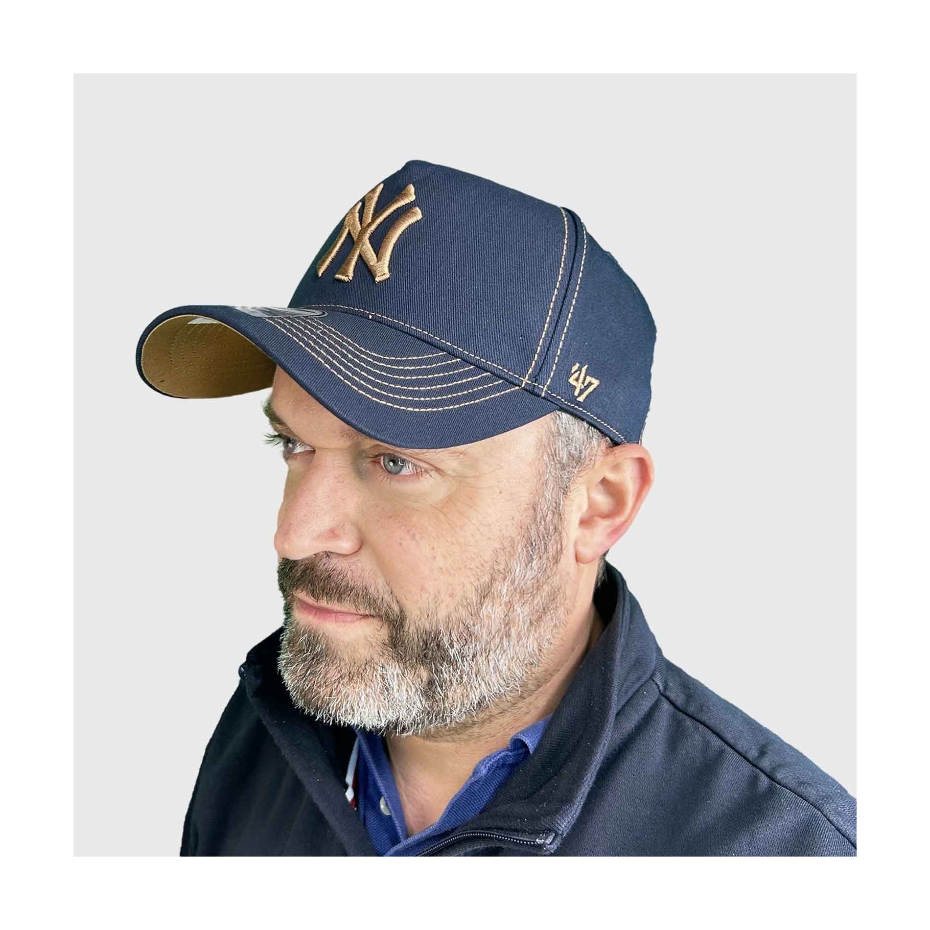 Kepsen har en djup marinblå färg som förstärks av kamelfärgade kontrastsömmar för en autentisk vintage-look. Den berömda "NY"-logotypen broderad i relief på framsidan är en påminnelse om arvet från det mest legendariska laget i amerikansk baseboll.