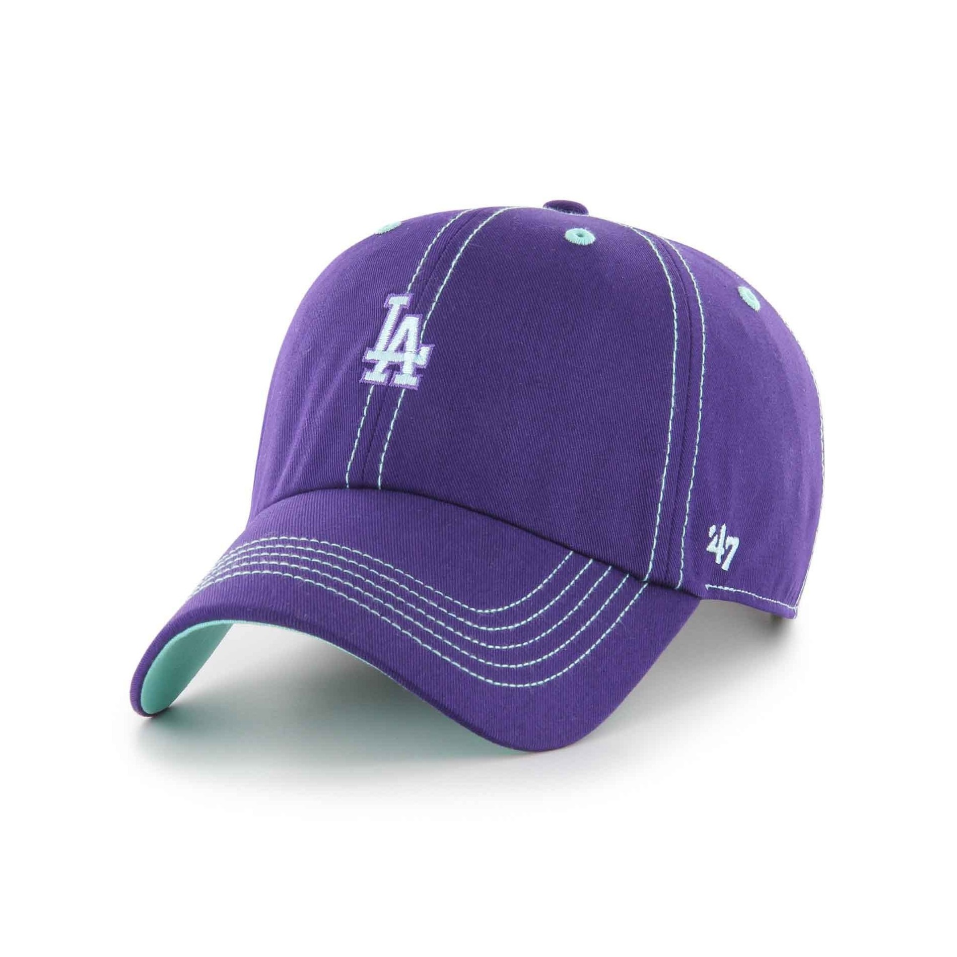 Lila MLB Los Angeles Dodgers keps, kontrasterande sömmar, broderad LA-logotyp. Clean Up (dad cap) i bomull, justerbar. Trendig basebollstil, snabb leverans.