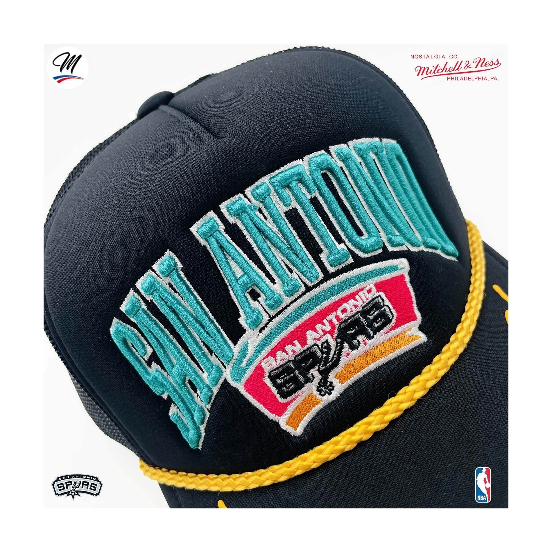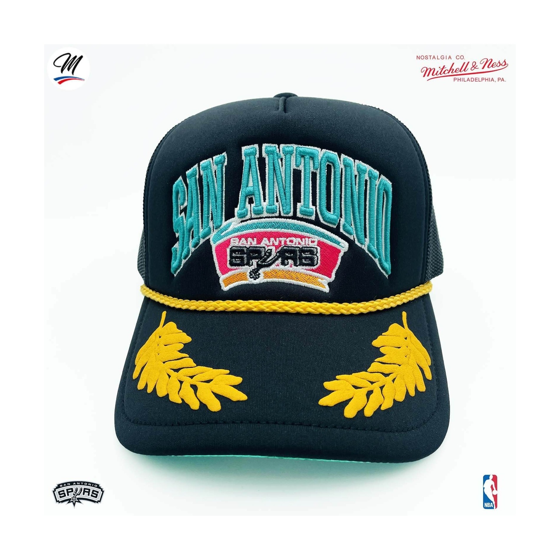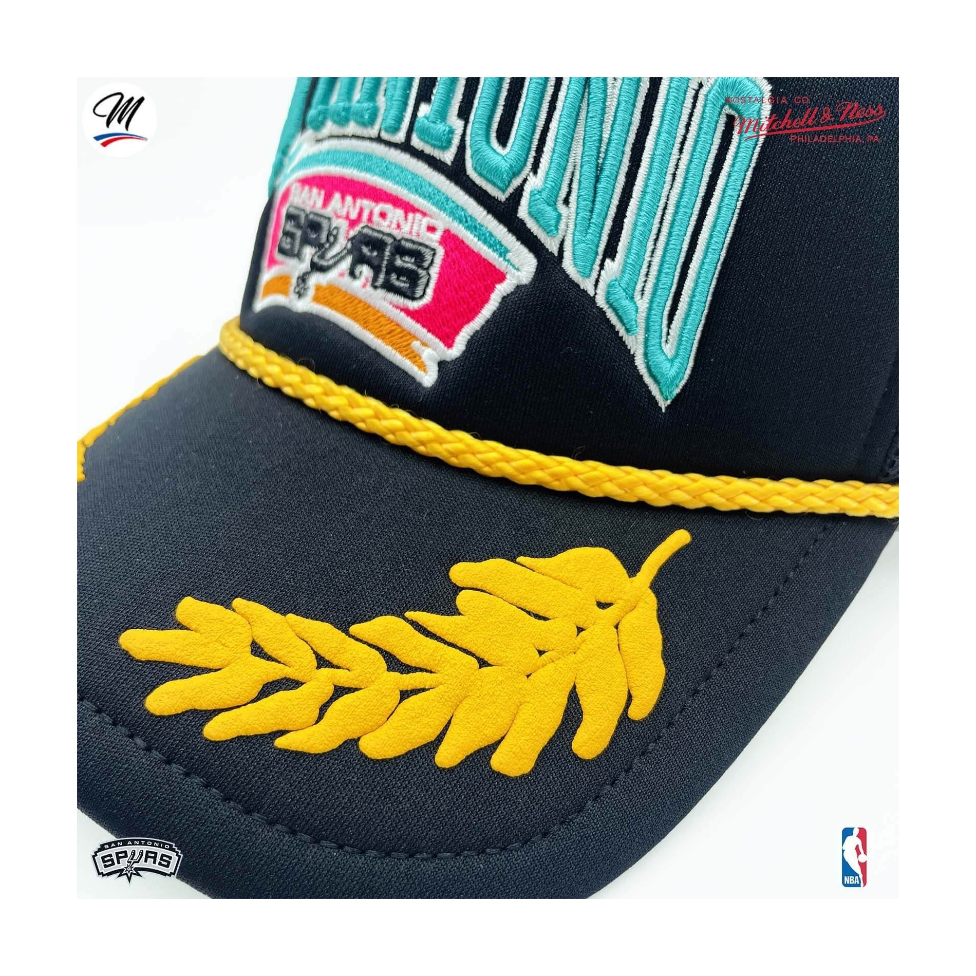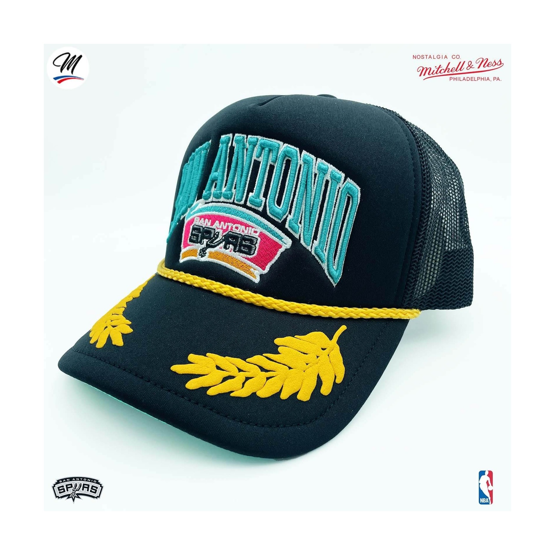 Mitchell & Ness - San Antonio Spurs HWC "Gold Leaf" NBA Trucker Cap med guldfenor på visiret. 100 % polyester