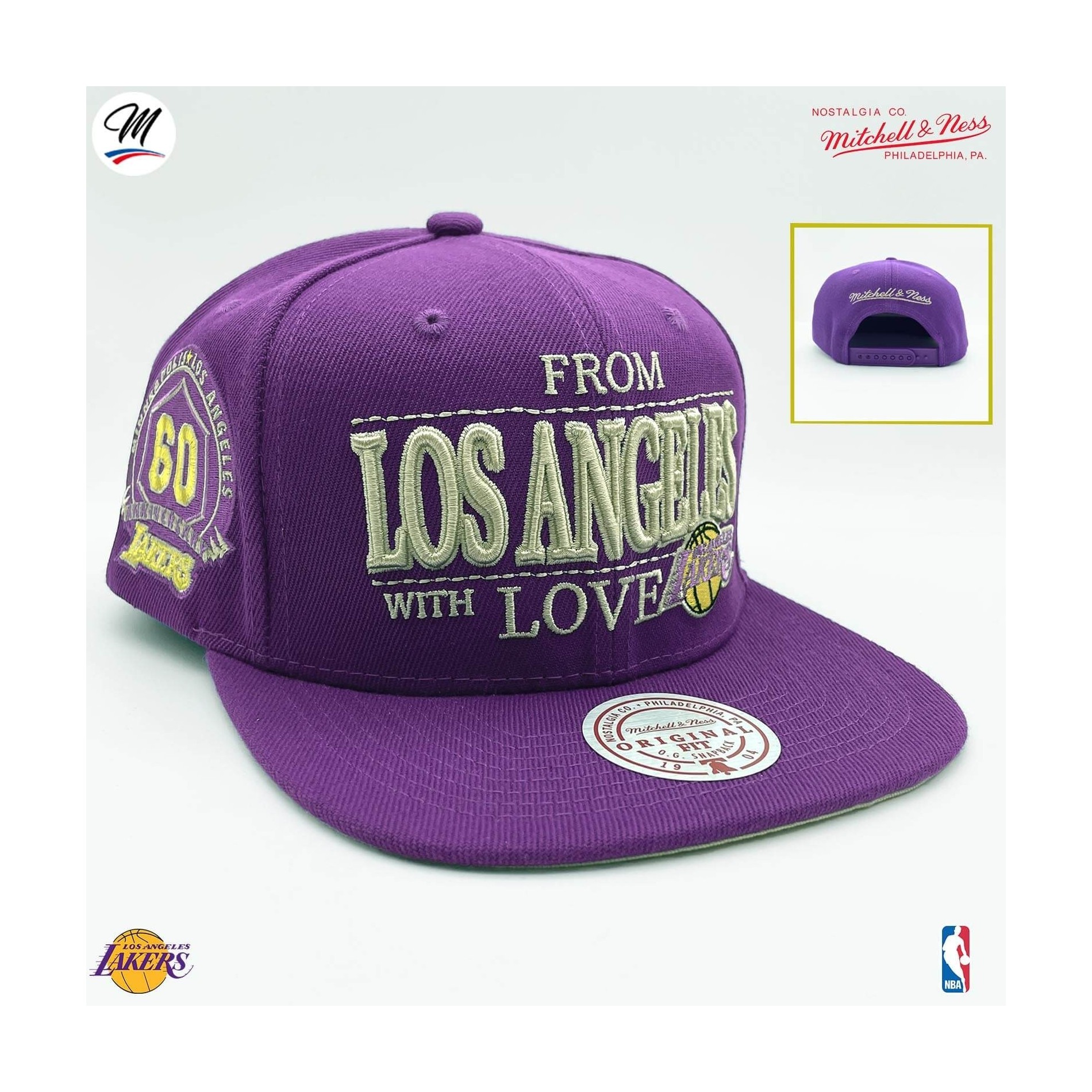 Autentisk MITCHELL & NESSbasketkeps, NBA Los Angeles Lakers "Los Angeles With Love".
