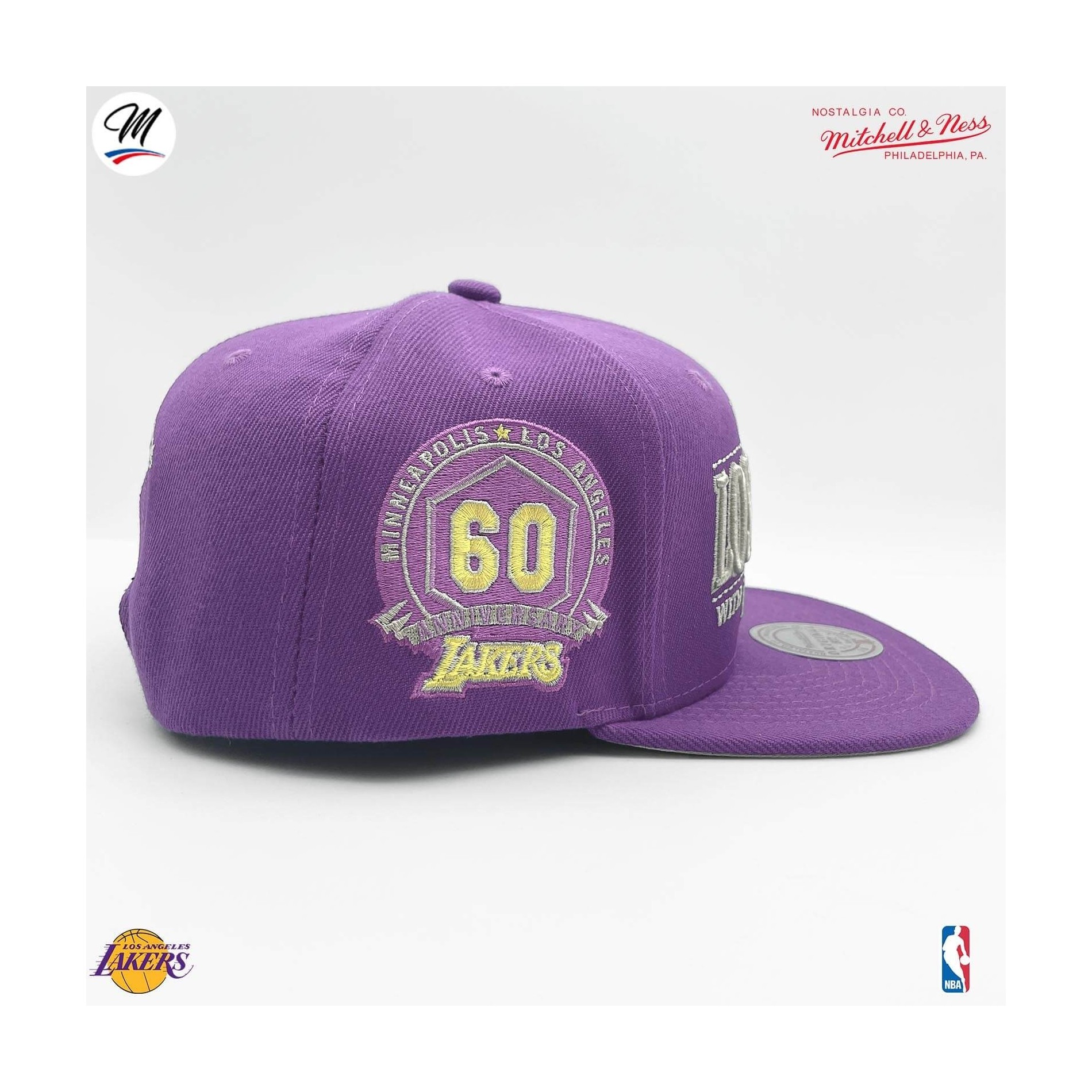 Minneapolis Los Angeles 60th Anniversary"-märke broderat på sidan för att fira 60-årsdagen av Lakers flytt från Minneapolis till Los Angeles 1960, med ankomsten av den legendariske Jerry West som ledde laget under hela sin karriär.