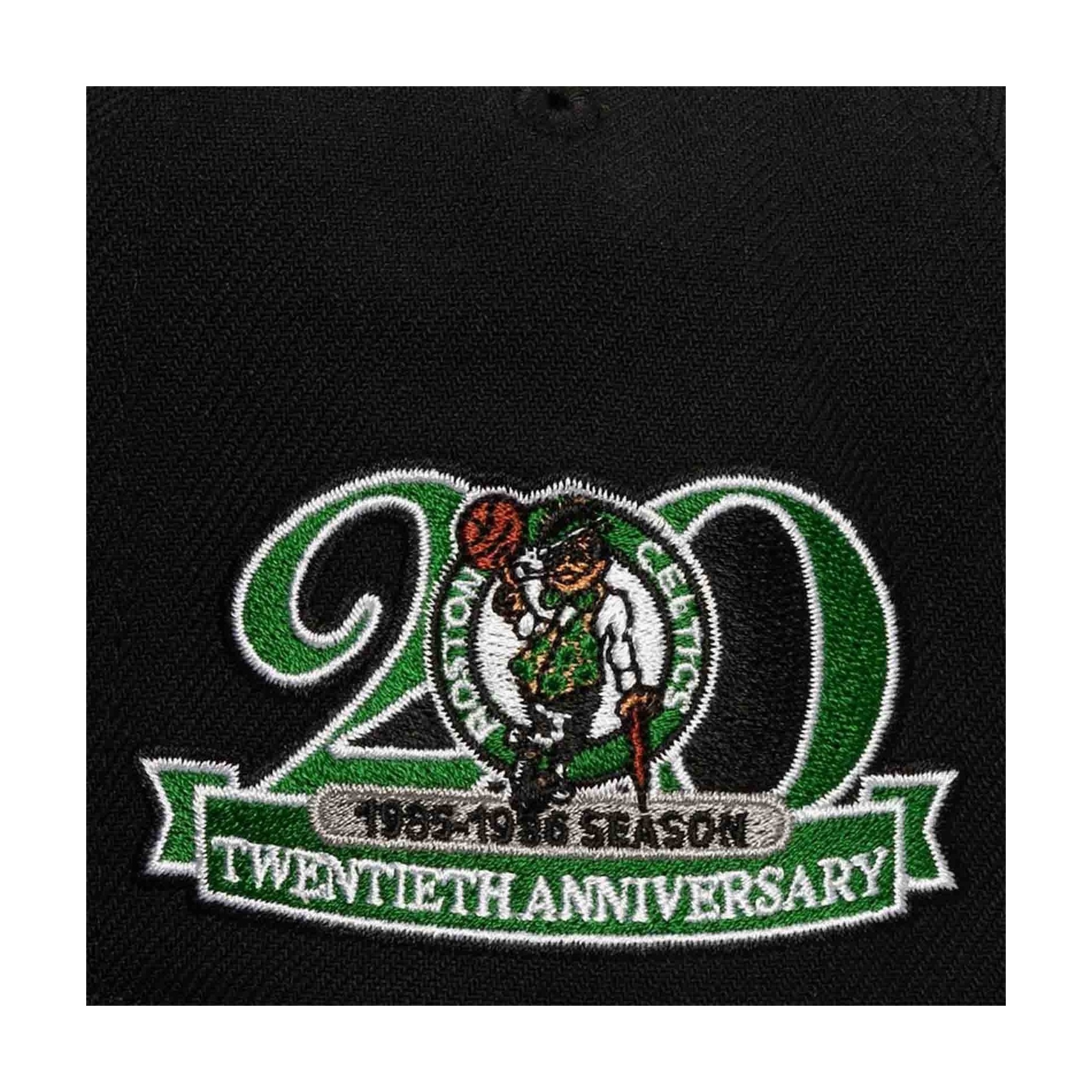 Officiell design: Celtics-logotyp broderad framtill. 20-årsjubileumslogotyp på sidan.