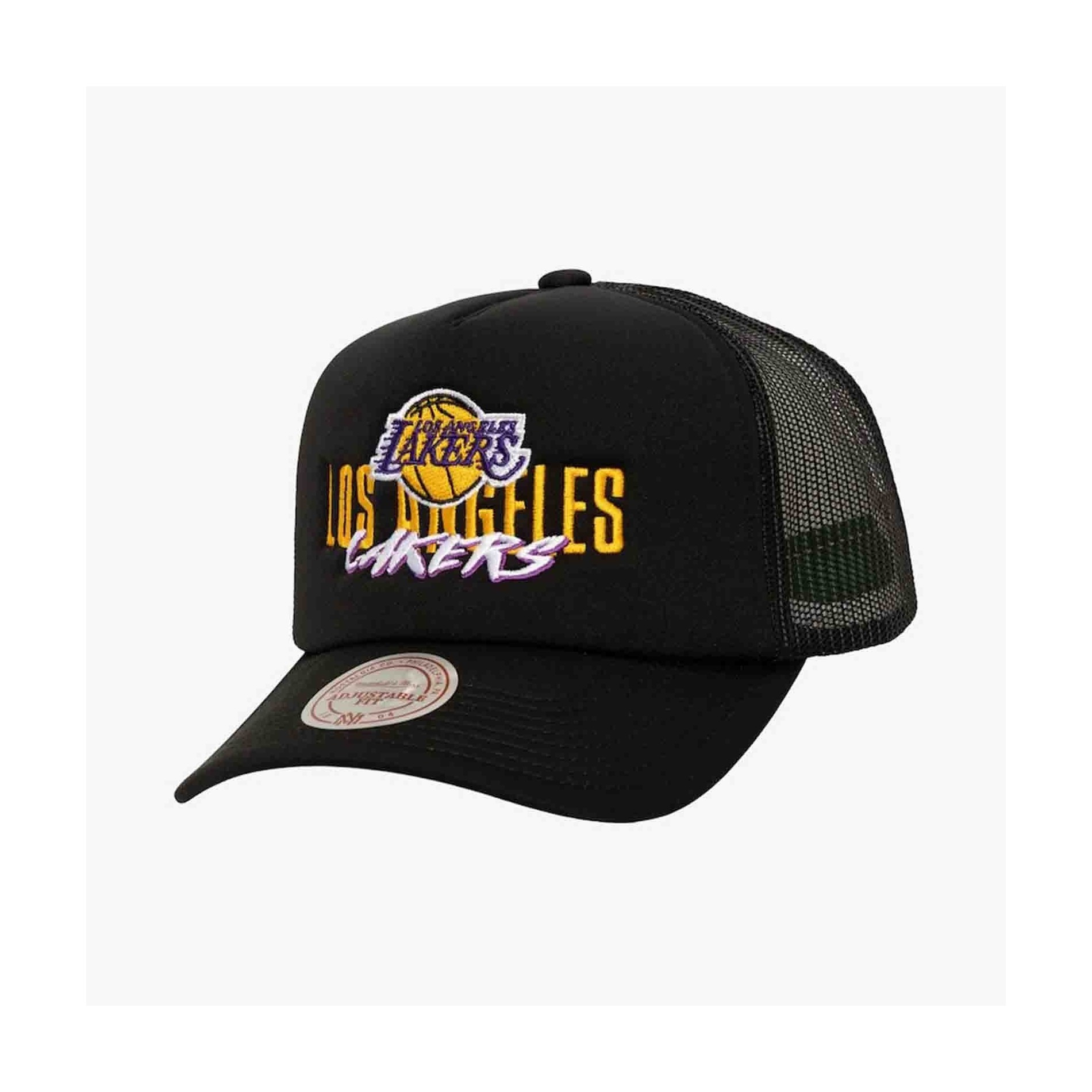 Skumfront: Styv struktur som ger utmärkt stöd, med broderad Los Angeles Lakers-logotyp med den berömda gyllene bollen och stiliserade lila bokstäver.