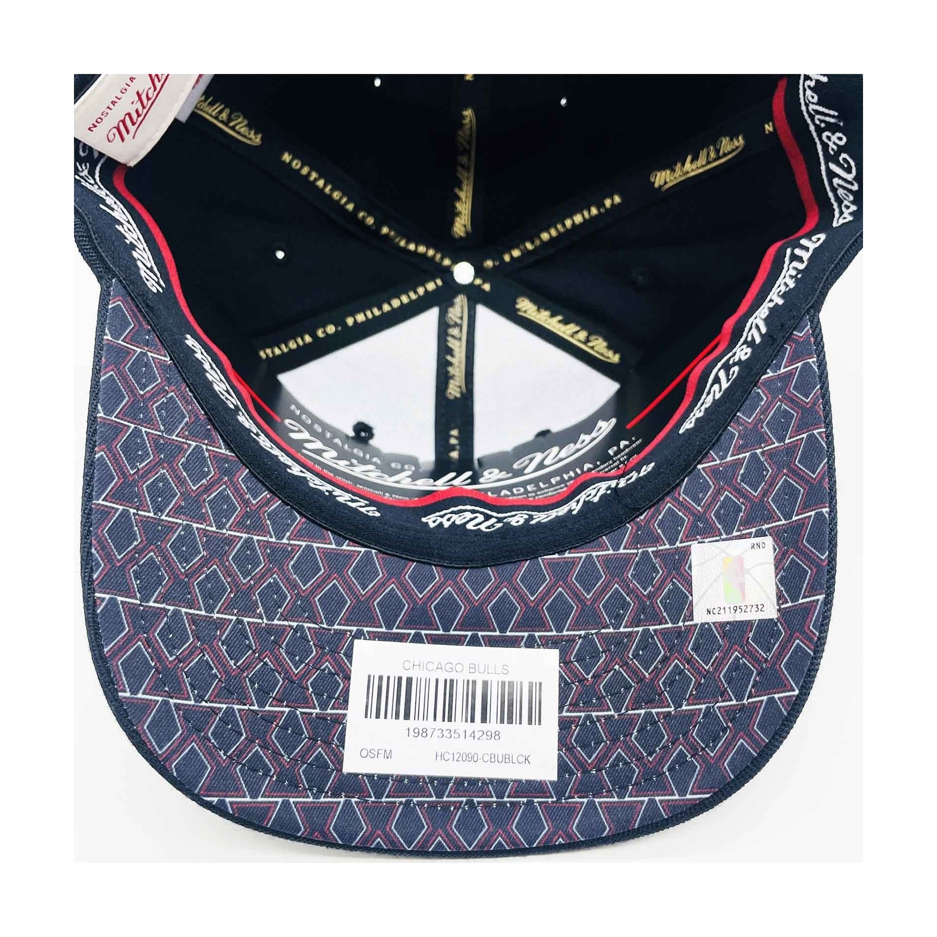 Premiumdetaljer: "Mitchell & Ness"-brodyr på baksidan, nedre visir med matchande logomotiv för en subtil grafisk påminnelse.