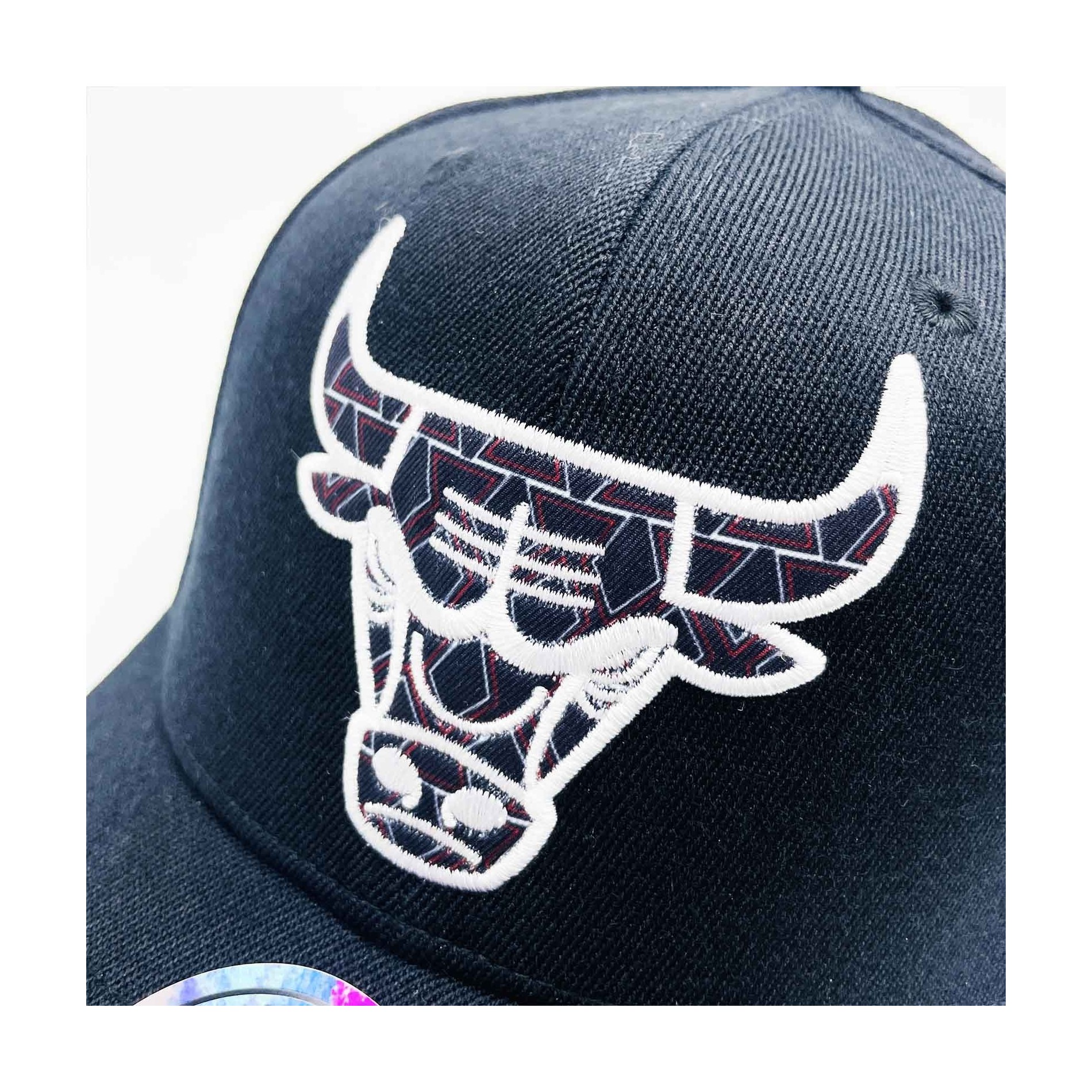 Djärv design: den legendariska Bulls-logotypen är återanvänd med ett geometriskt kamouflagemönster broderat i relief på framsidan.
