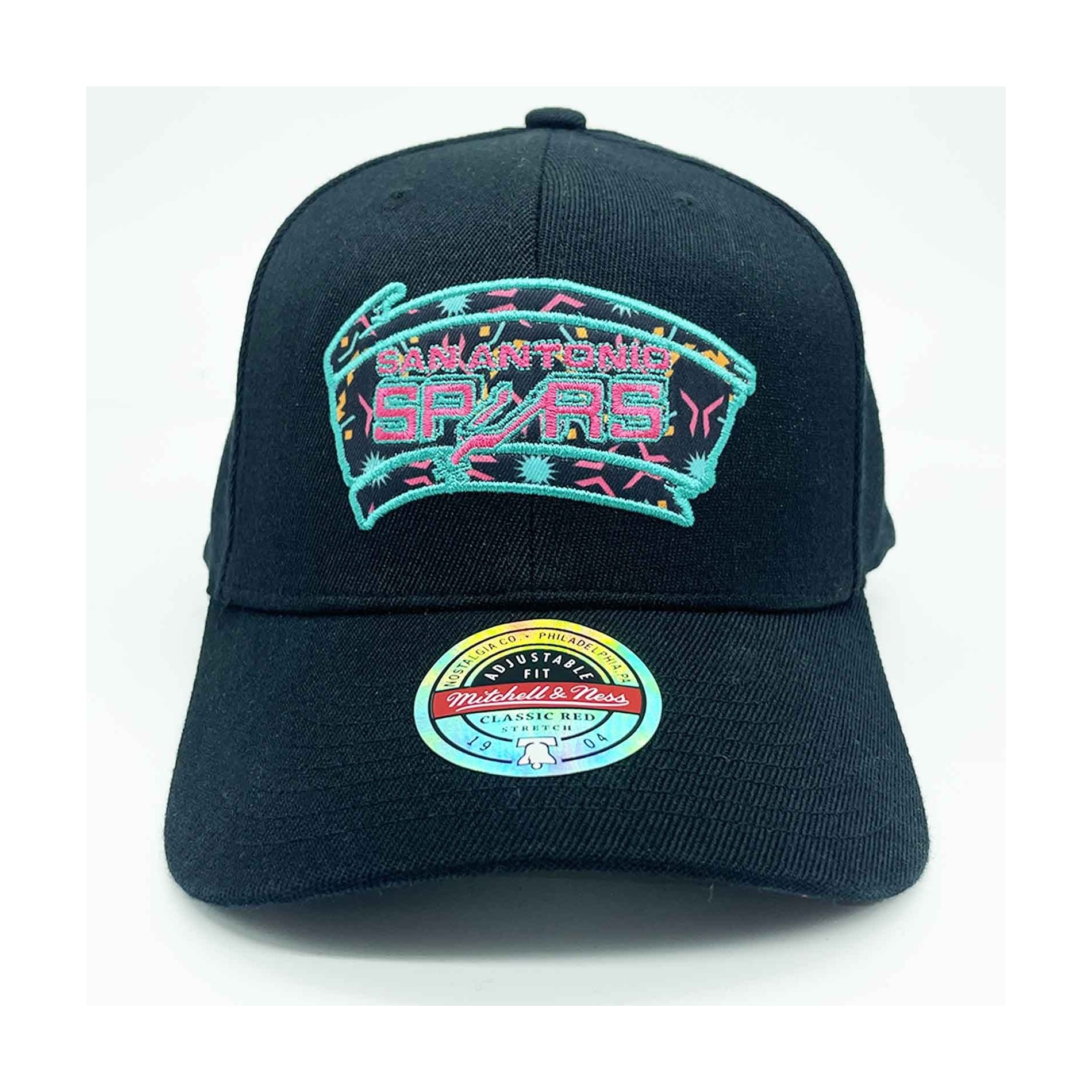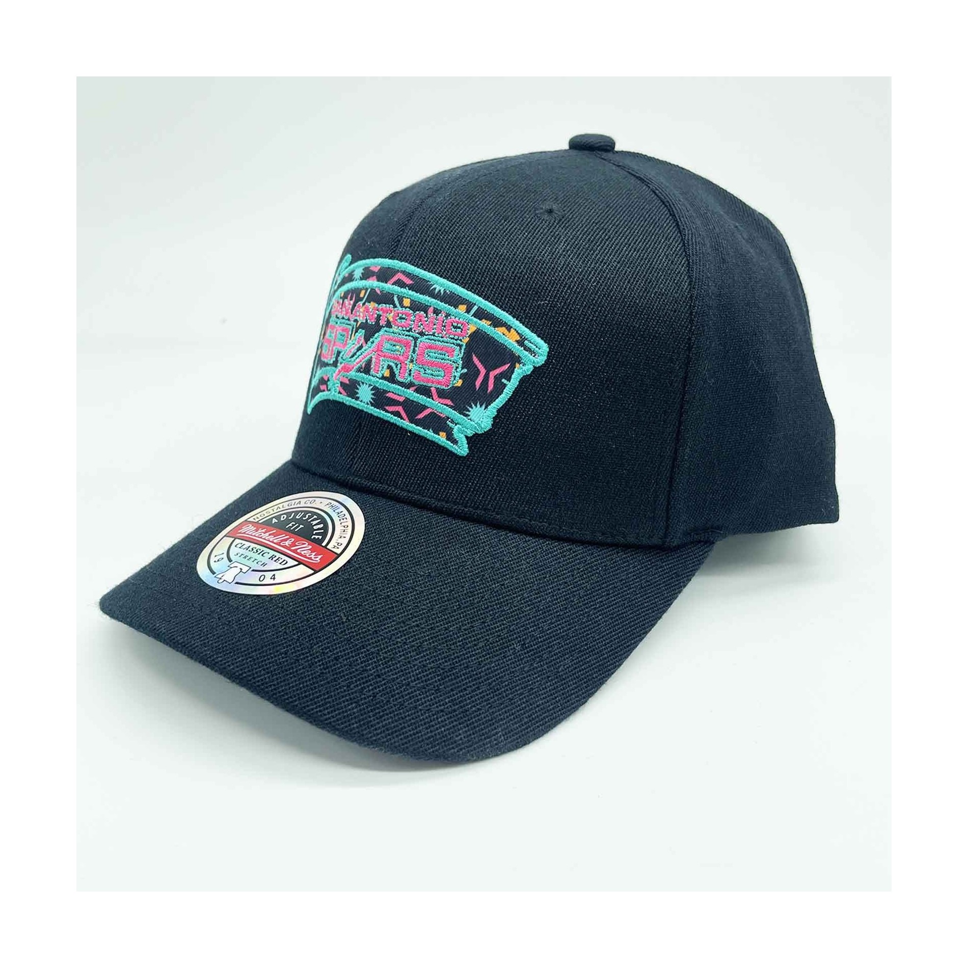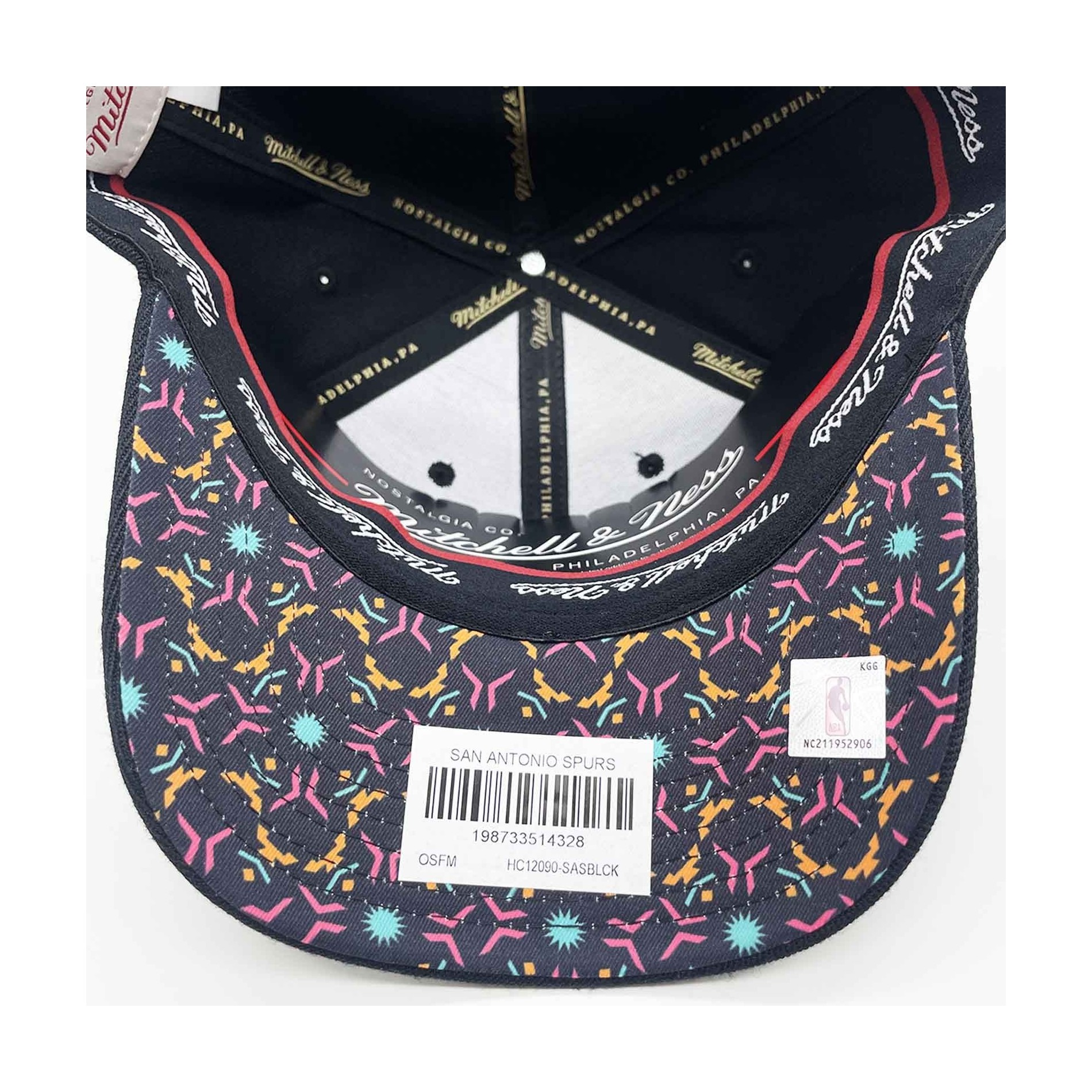 Officiell NBA-keps i Spurs-färger med retro-logotyp broderad i ett flerfärgat camo-motiv. Klassisk Mitchell & Ness-snitt, förböjd visir och justerbar snapback-fästning. Autentisk NBA-licens.