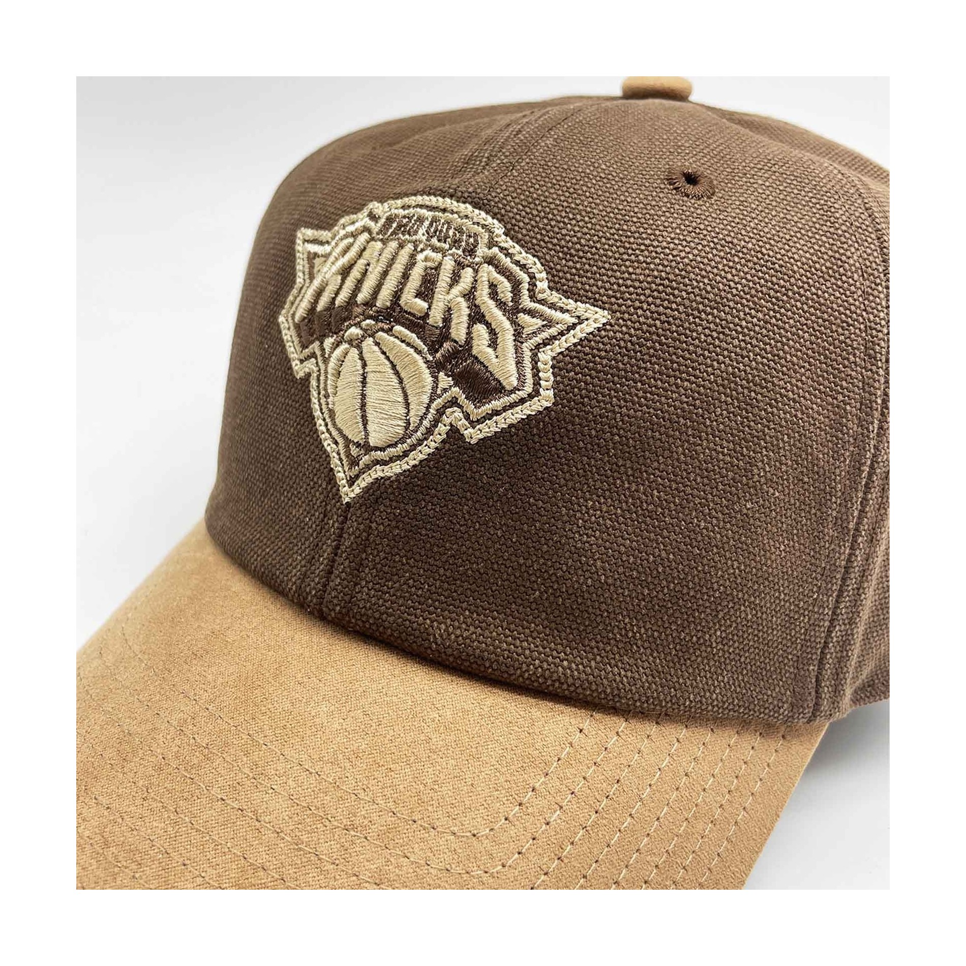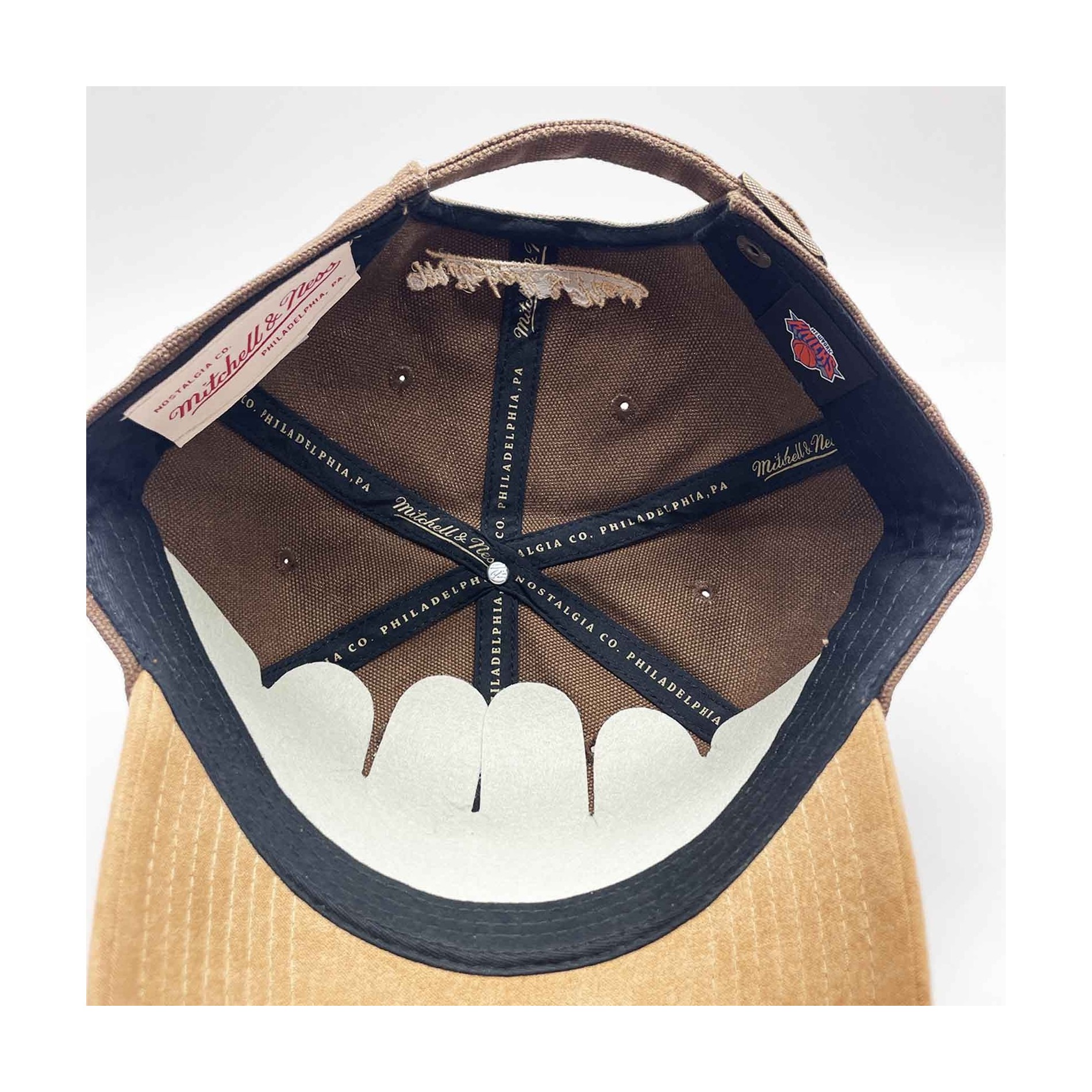 Visa upp din New York Kn icks-stil med Mitchell & Ness Lux Chain Strapback. Denna premiummodell kombinerar en ostrukturerad låg krona i bomullscanvas med en soft-touch visir i mockaimitation. Knicks-logotypen är broderad i relief + platt, förstärkt med kedjestygn för en avancerad, ton-i-ton texturerad look. Baktill finns Mitchell & Ness-signaturen och ett metallspänne som ger en exakt och hållbar passform. Lättmatchade bruna och beige färger - perfekta för vardagsbruk eller spelkvällar. Officiell NBA-licens.
