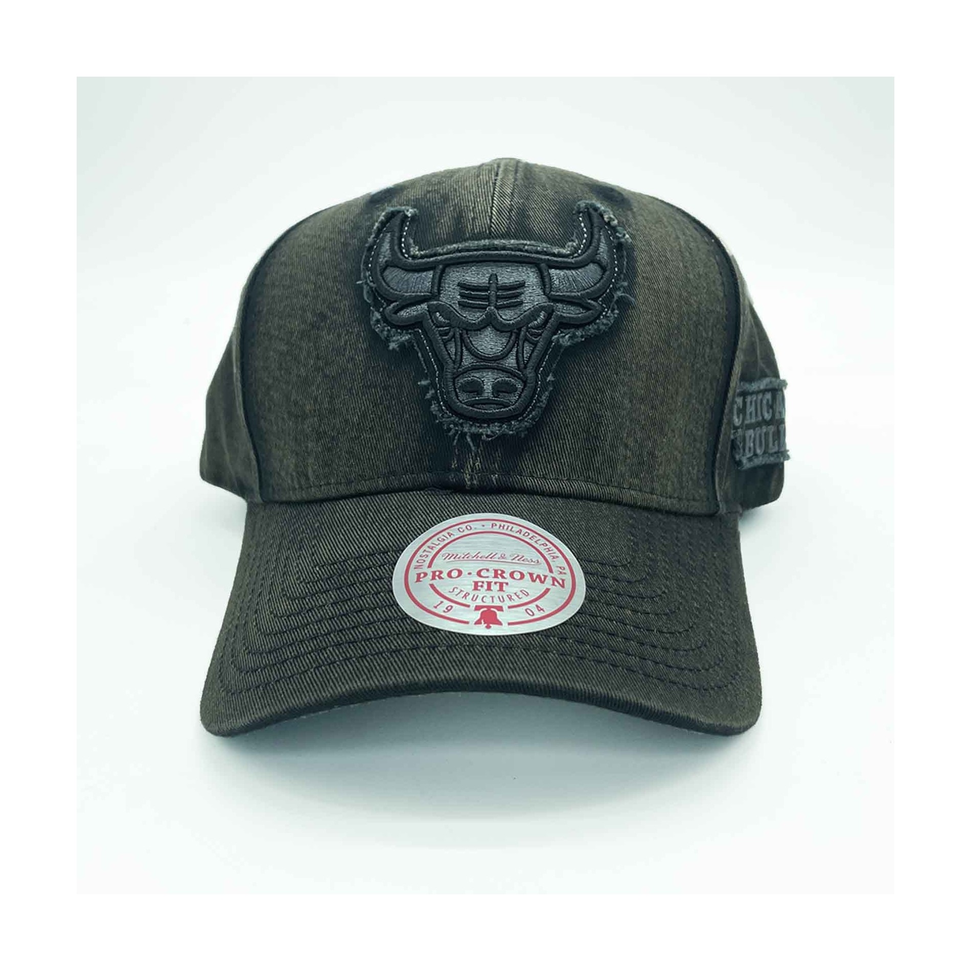 Patch med slitageeffekt och präglad och platt brodyr på framsidan (Bulls-logotyp)
