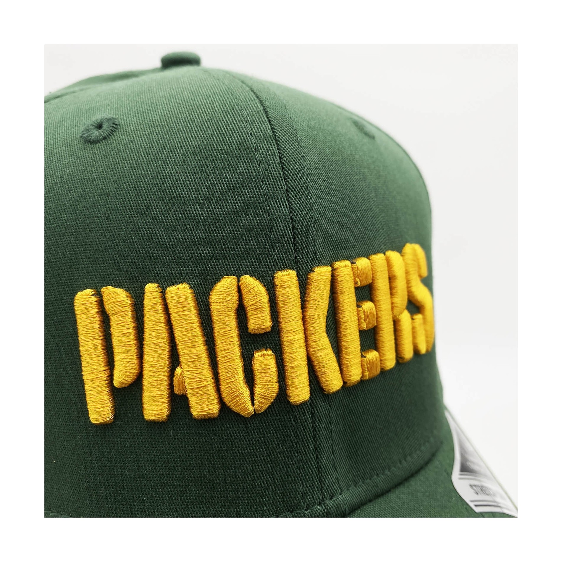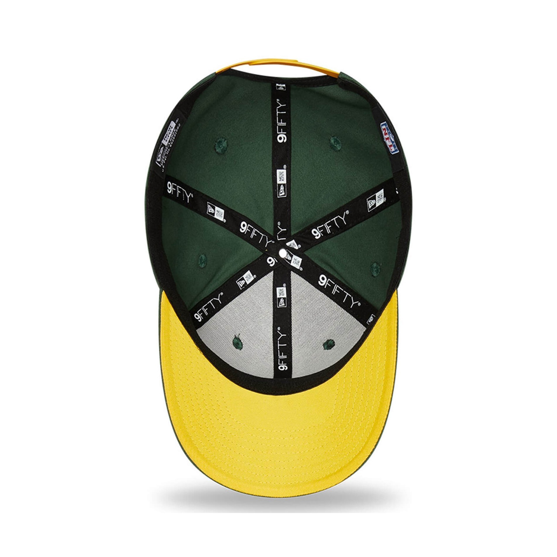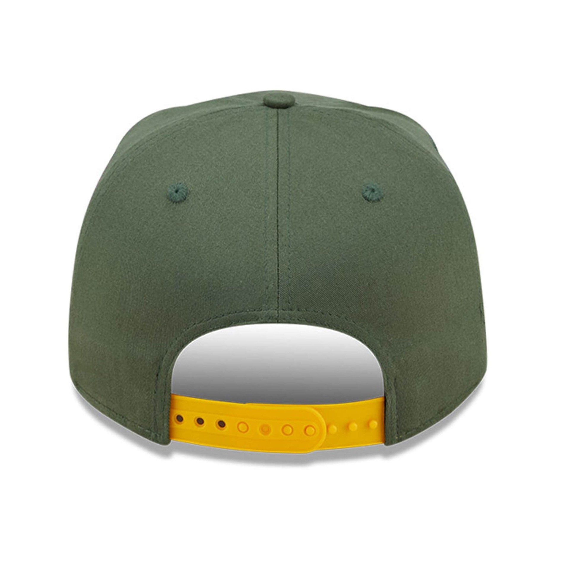 New Era 9FIFTY Green Bay Packers NFL wordmark cap, snapbackjusteringssystem, bomullsmaterial med Green Bay Packers-logotyp på sidan och Packers-bokstäver på framsidan.