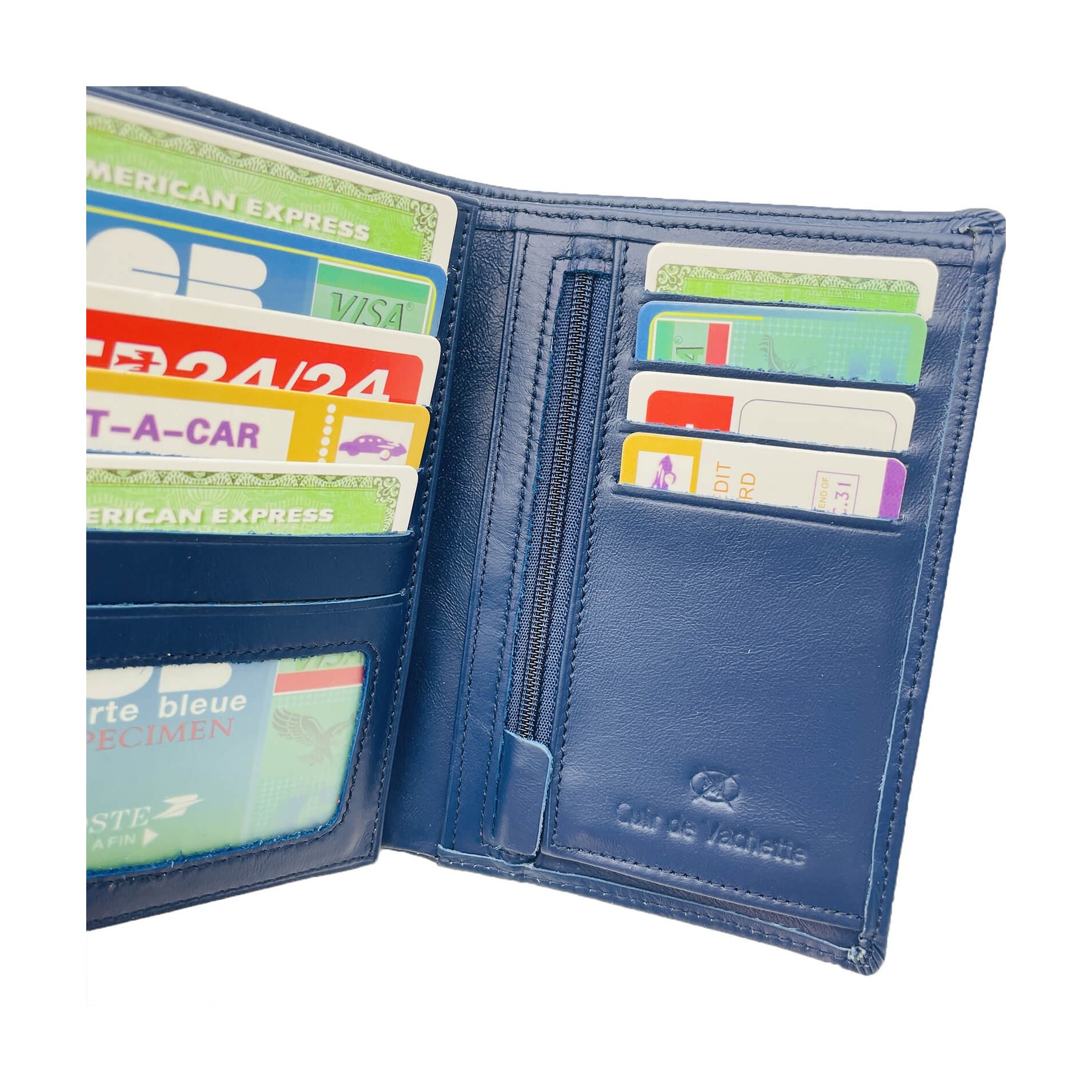 Vacker plånbok i kohudsläder "ELEPHANT D'OR", den är mycket praktisk (Dimensions : 150 x 105 x 25 mm), den kan lätt glida in i en ficka på insidan av jackan.