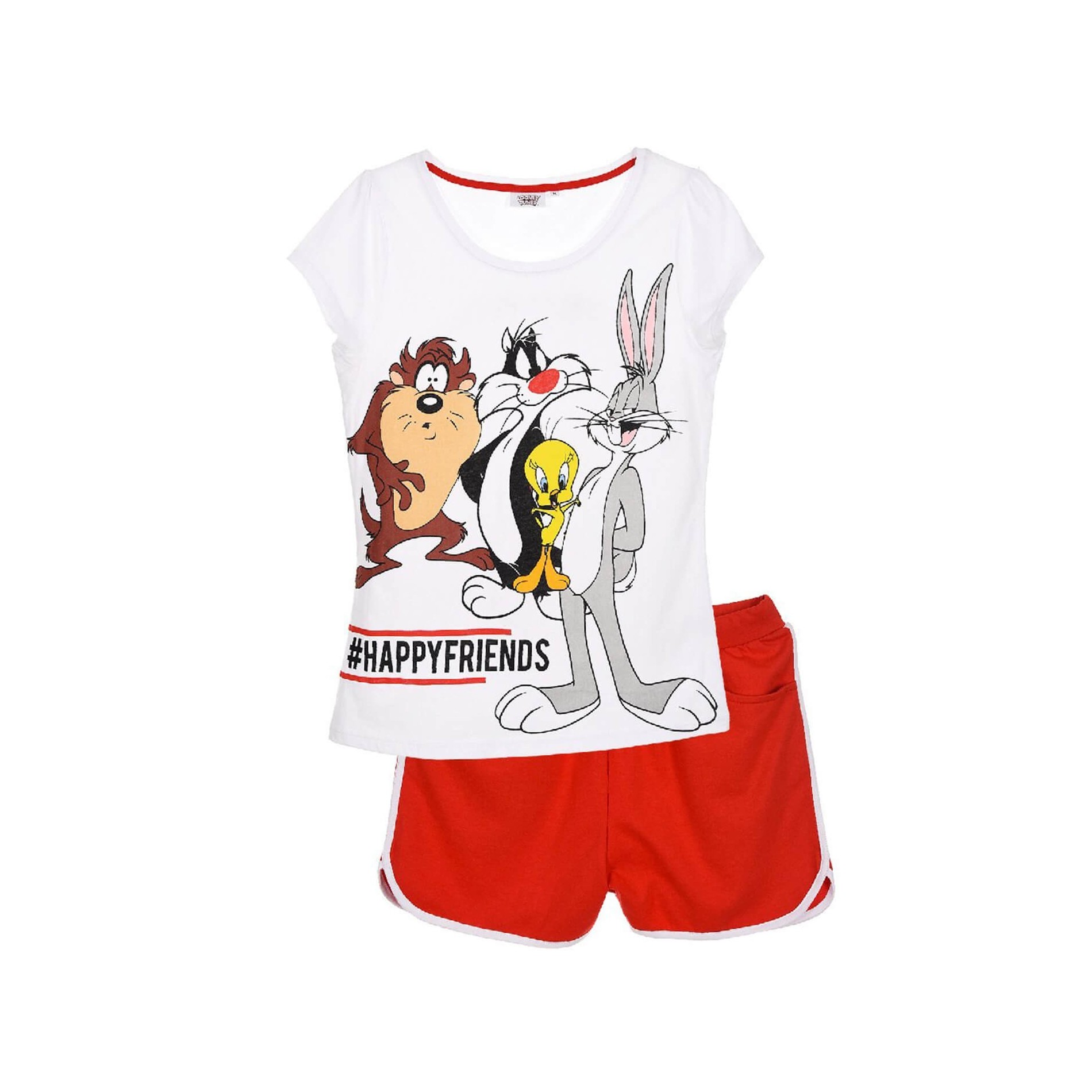 Kort pyjamaset för kvinnor med 100 % OEKO-TEX® bomullstops och 35 % bomull 65 % polyestershorts i officiell LOONEY TUNES, WARNER Bros.