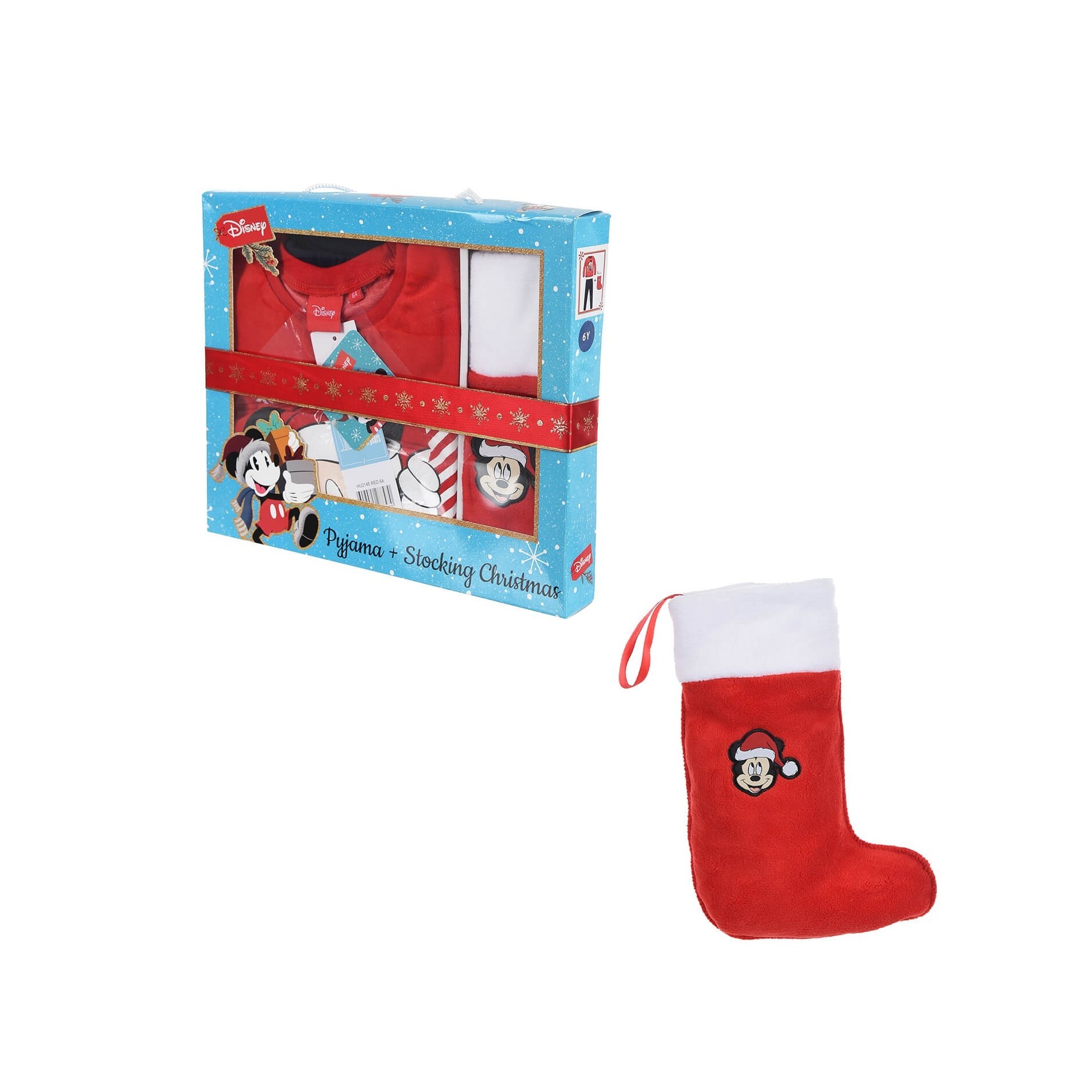 DISNEY Mickey Pyjamaset i velour för pojkar på vintern. De är varma, mjuka och mycket bekväma, med texten "Merry Christmas! Presenteras i en presentask med en fleecestrumpa för att ge bort i present. 75% bomull, 25% polyester