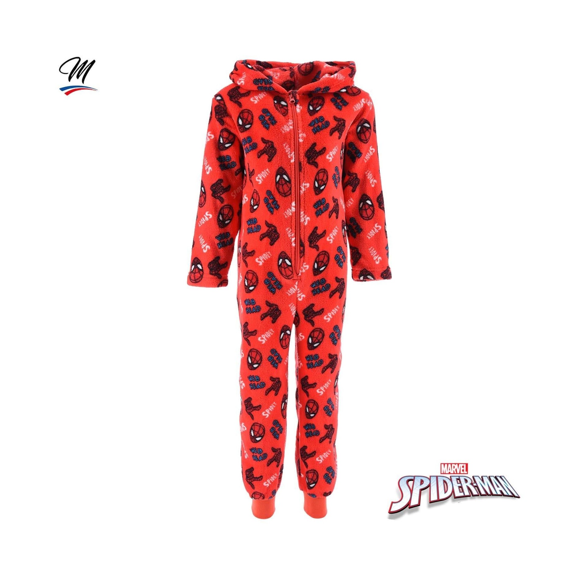 MARVEL SPIDER-MAN pyjamasdräkt med huva för pojkar för vintern.