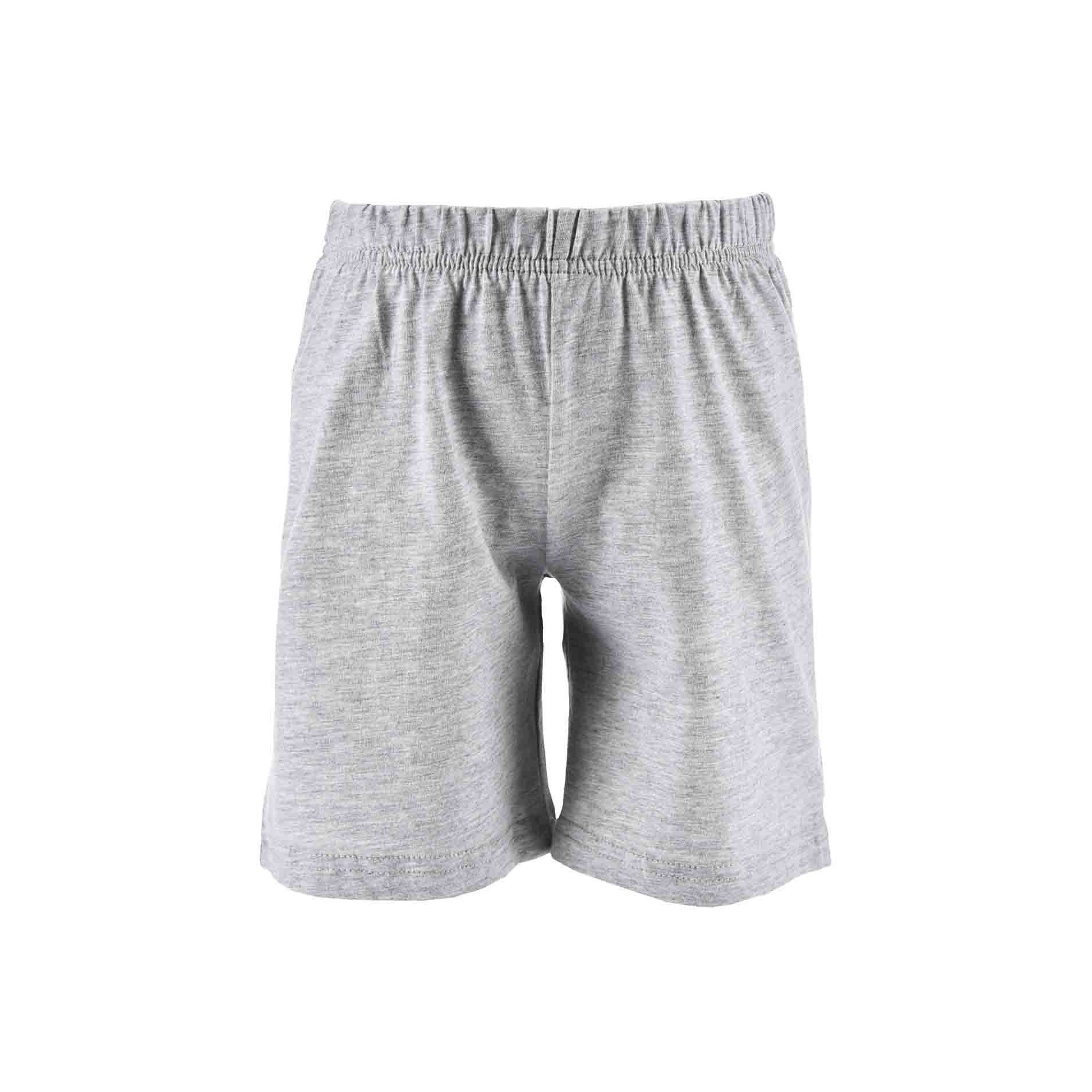 Färger: svart T-shirt med tryck, ljusgrå shorts