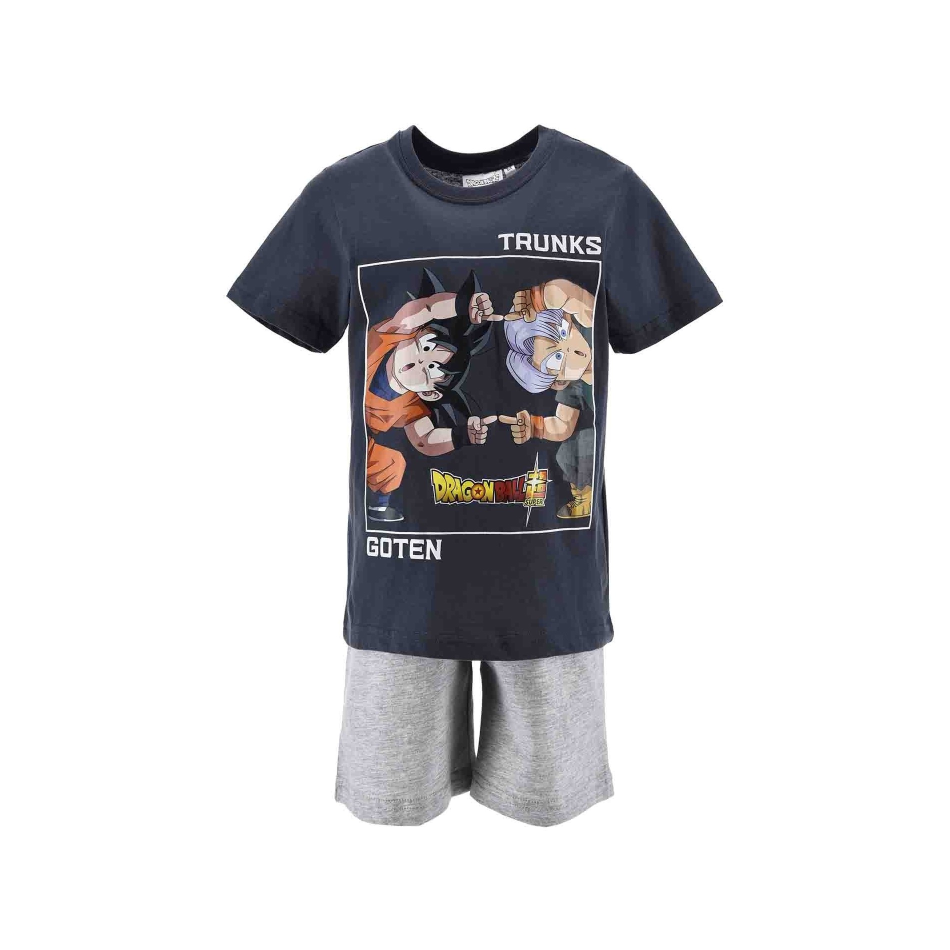 Gör ditt barn redo för energiska kvällar med denna officiellt licensierade Dragon Ball Super korta pyjamas för pojkar! Detta 2-delade set innehåller en kortärmad T-shirt med ett dynamiskt tryck av Trunks och Goten i full fusion, tillsammans med matchande grå shorts.