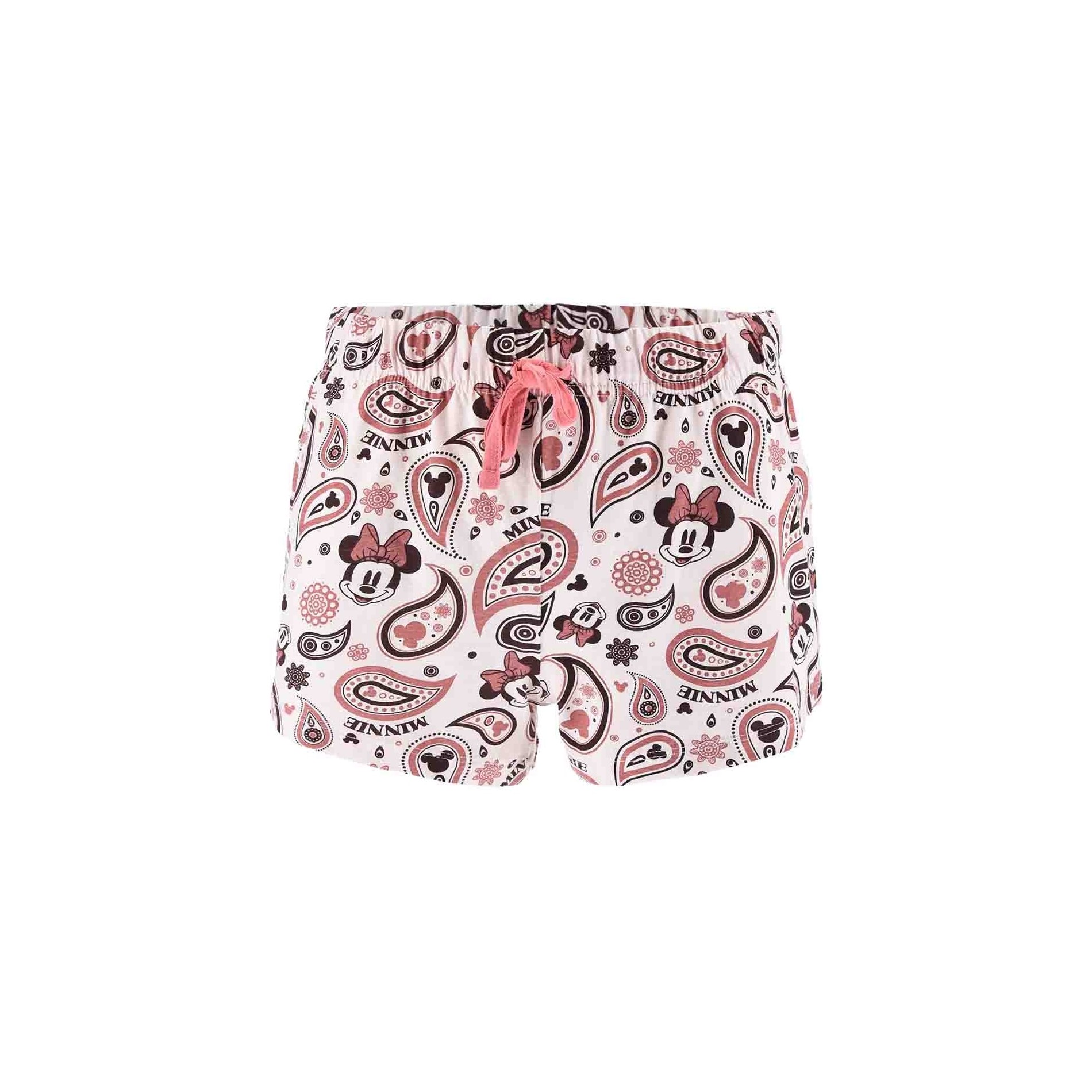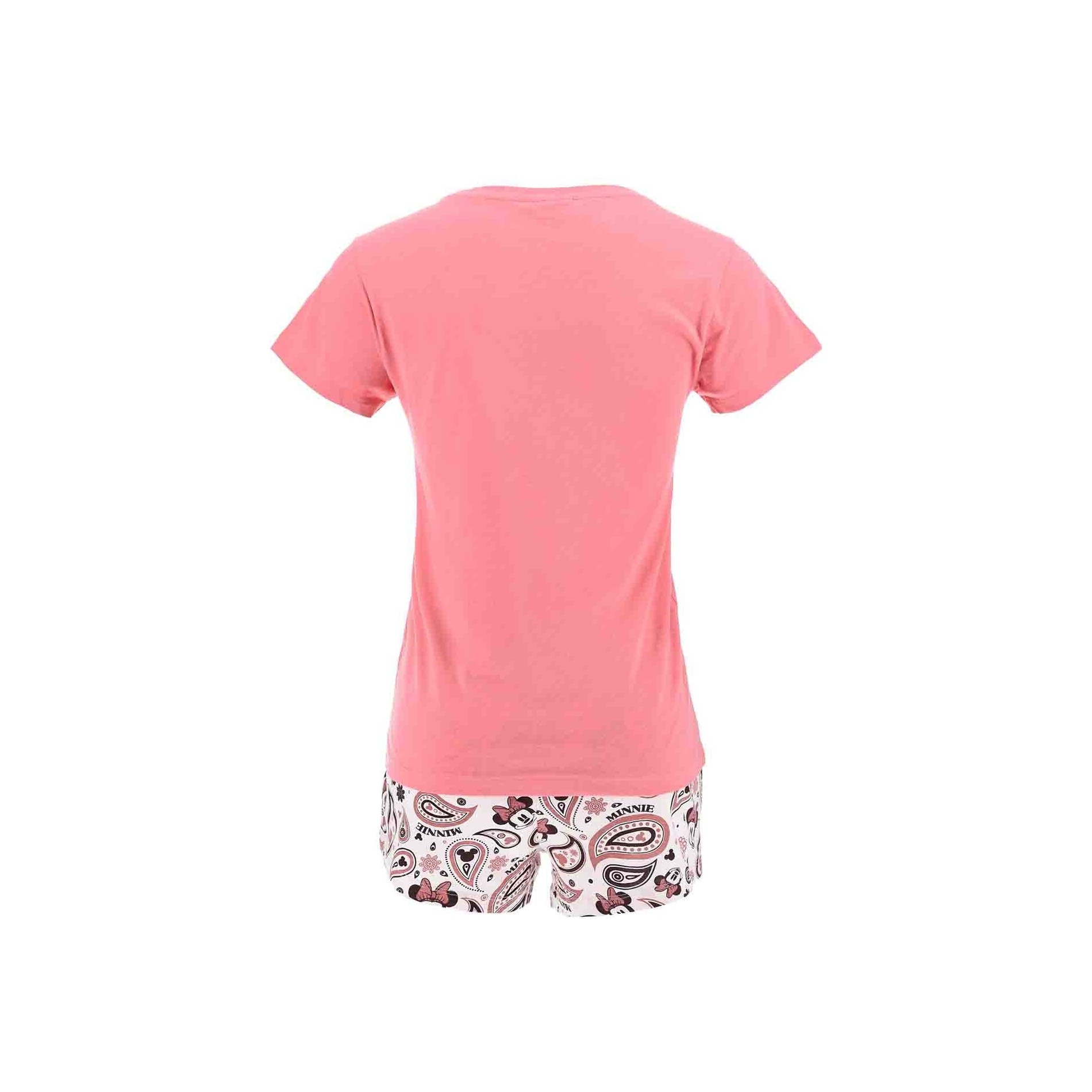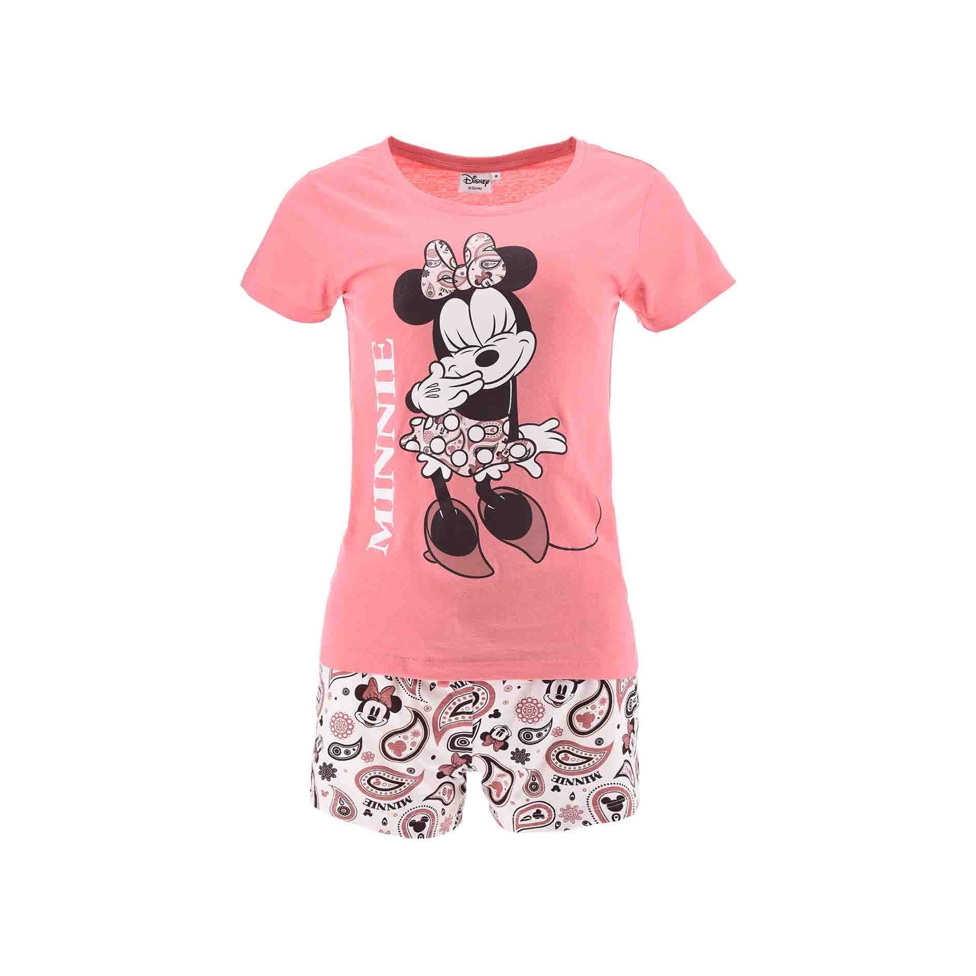 Minnie Mouse kort pyjamas i bomull för kvinnor. Rosa T-shirt + paisleymönstrade shorts. Produkt under officiell Disney-licens. Lätt, mjuk och supertrendig!