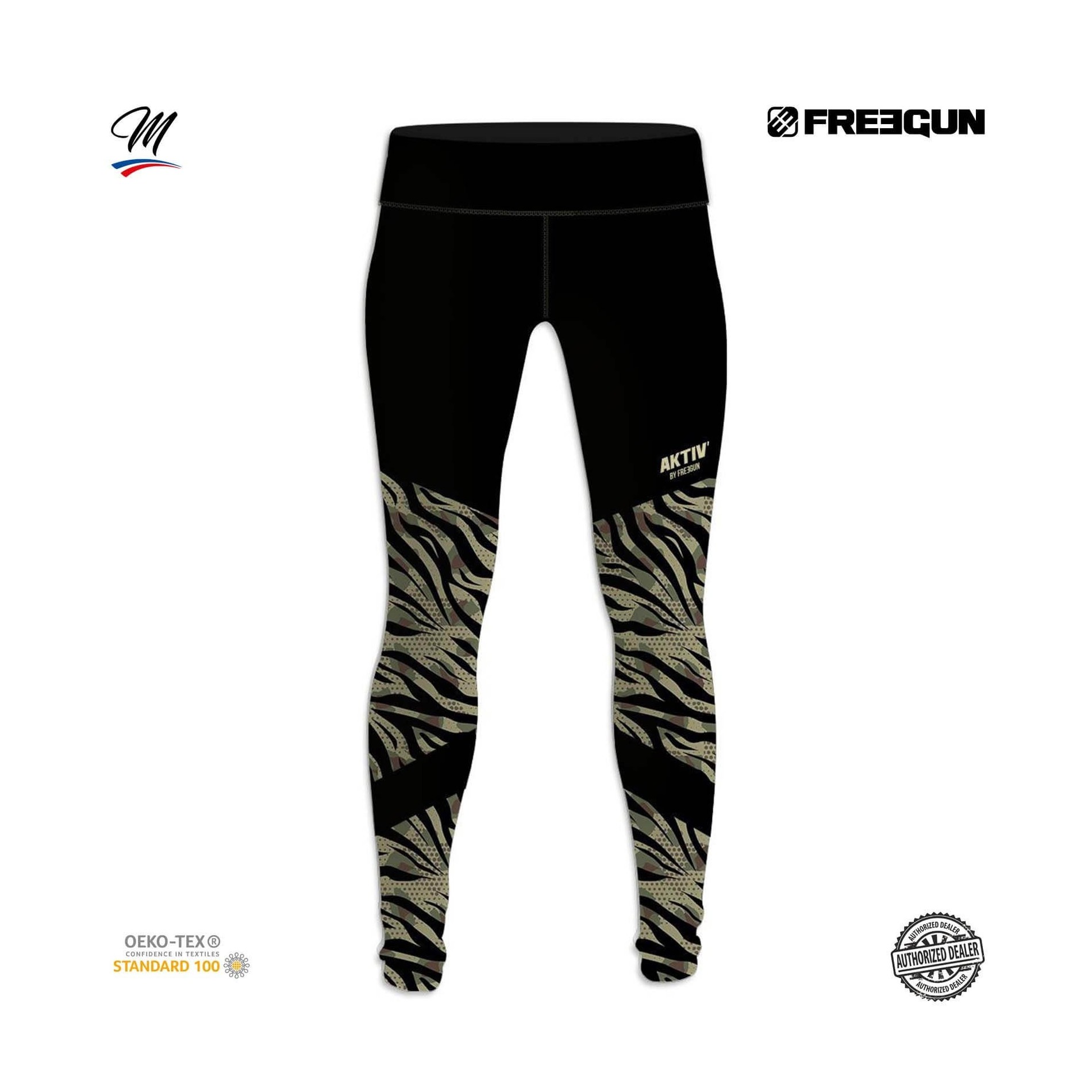 FREEGUN AKTIV Sport damleggings i mikrofiber, svart och kamouflagemönstrad.