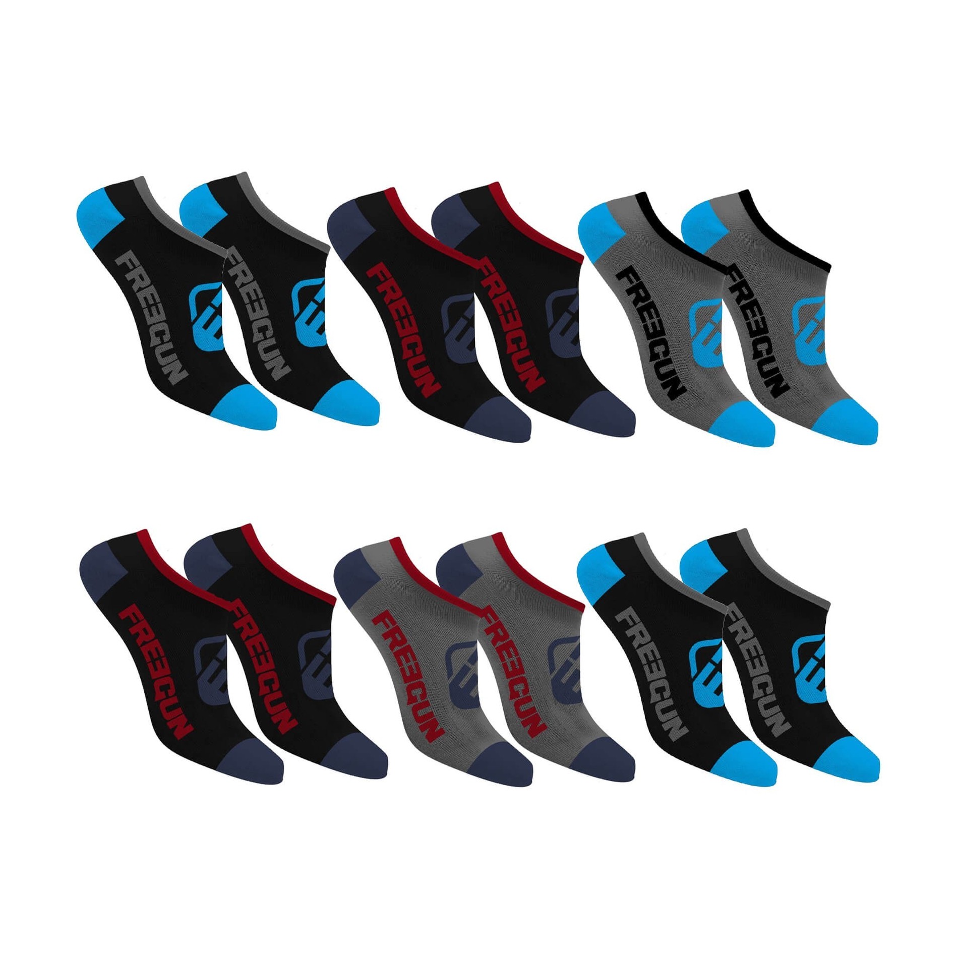 Paket med 6 par FREEGUN korta strumpor. Fin färg med logotyp på toppen av foten och FREEGUN skrivet under foten.