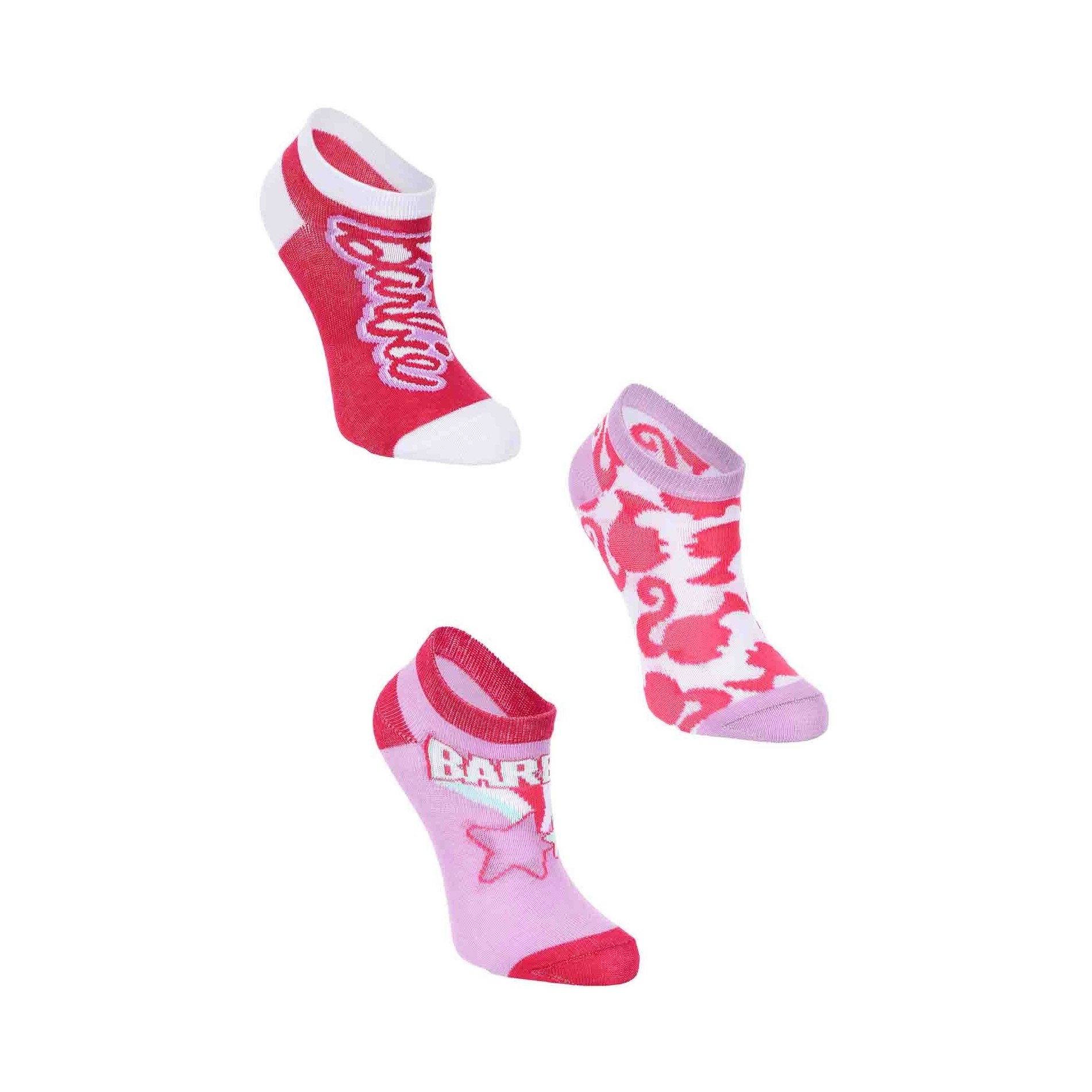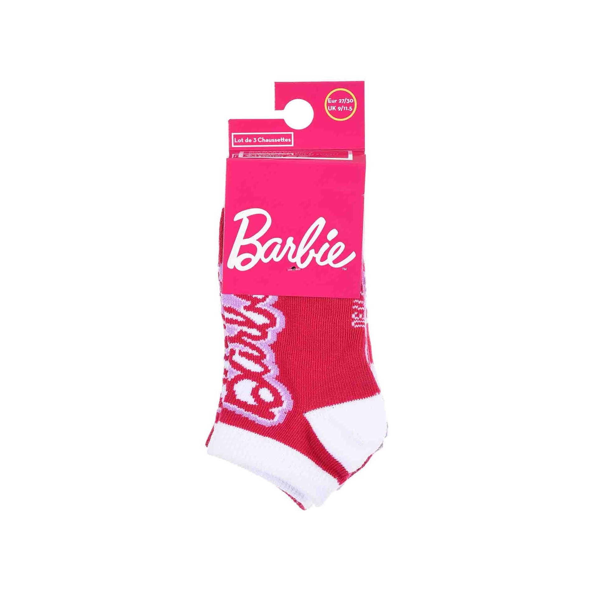 Set med 3 Barbie bomullsstrumpor för flickor. Ultrabekväma och bedårande med flickmotiv. Officiell produkt - barnstorlek.