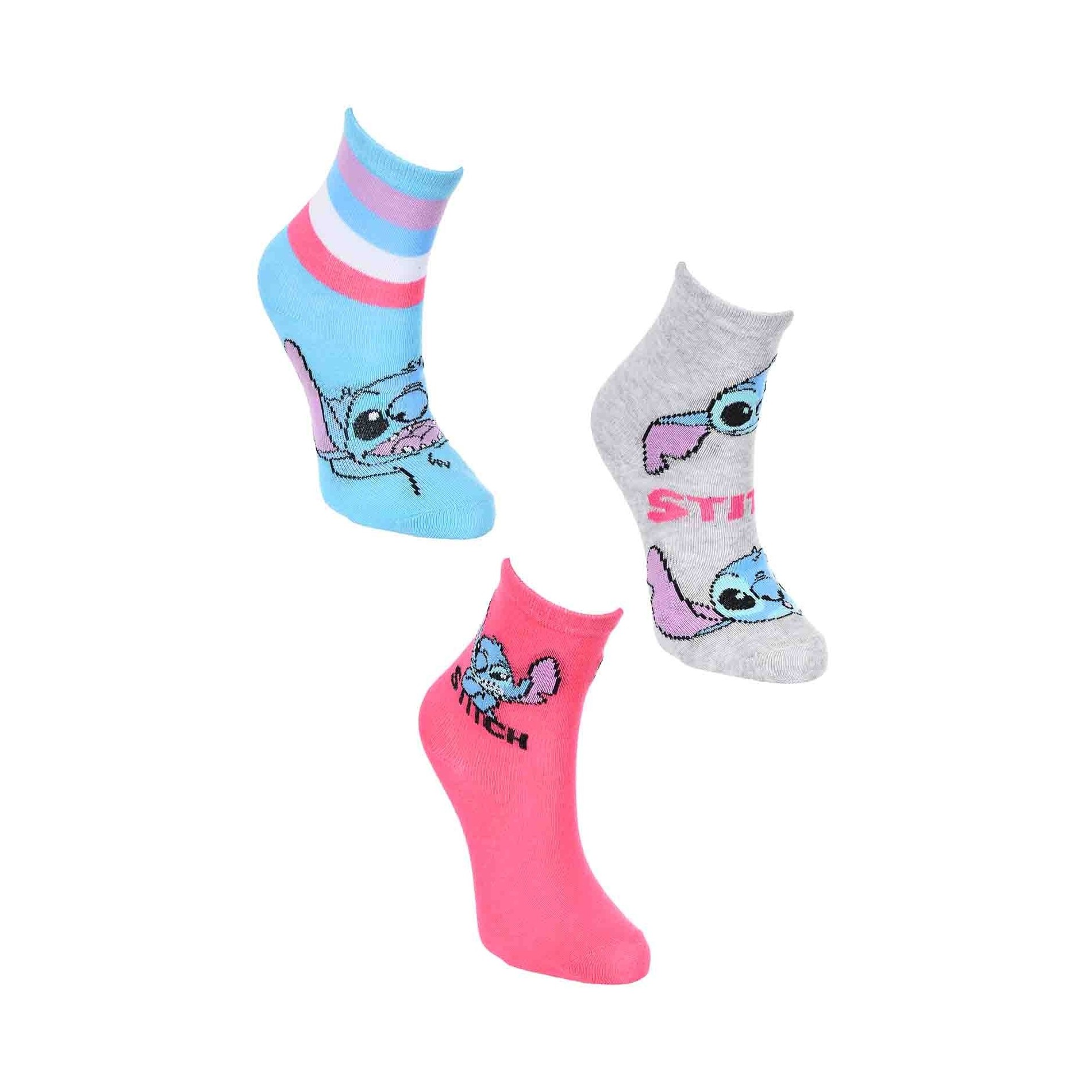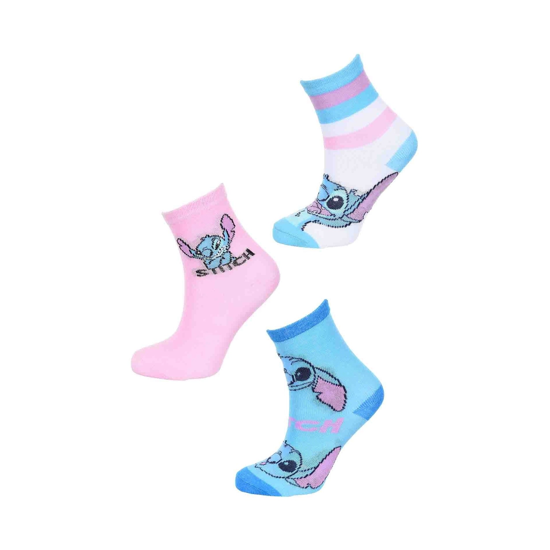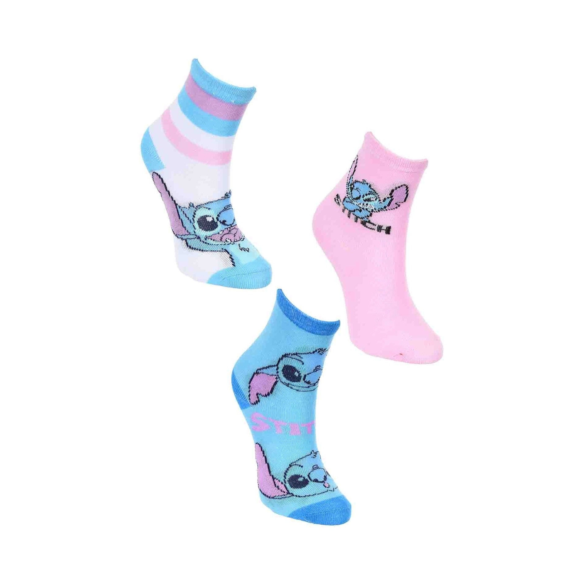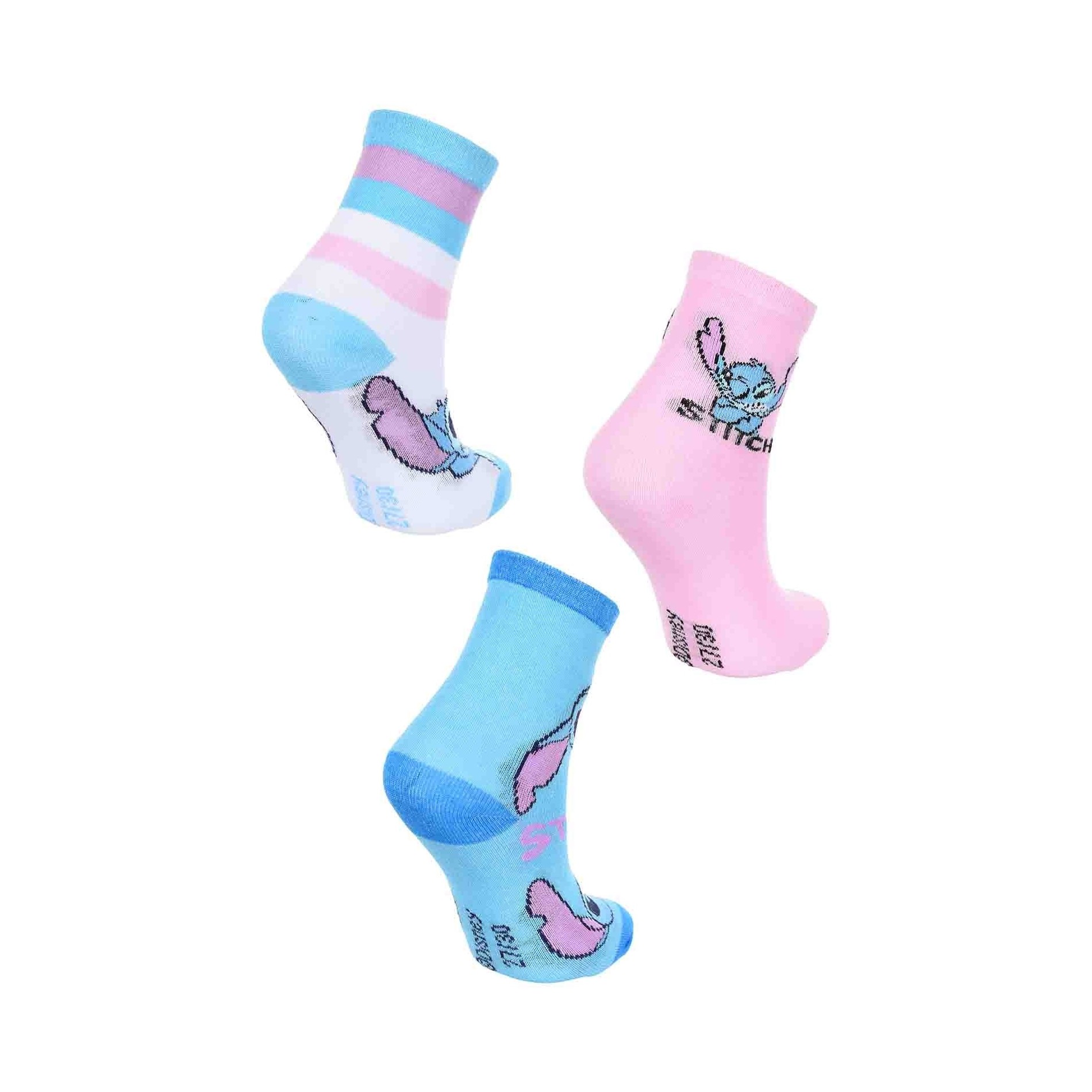 Förpackning med 6 par "Lilo & Stitch" flickstrumpor - officiell Disney-licens. Mjuk bomull, Stitch-mönster, olika färger. Perfekt för vardagsbruk.