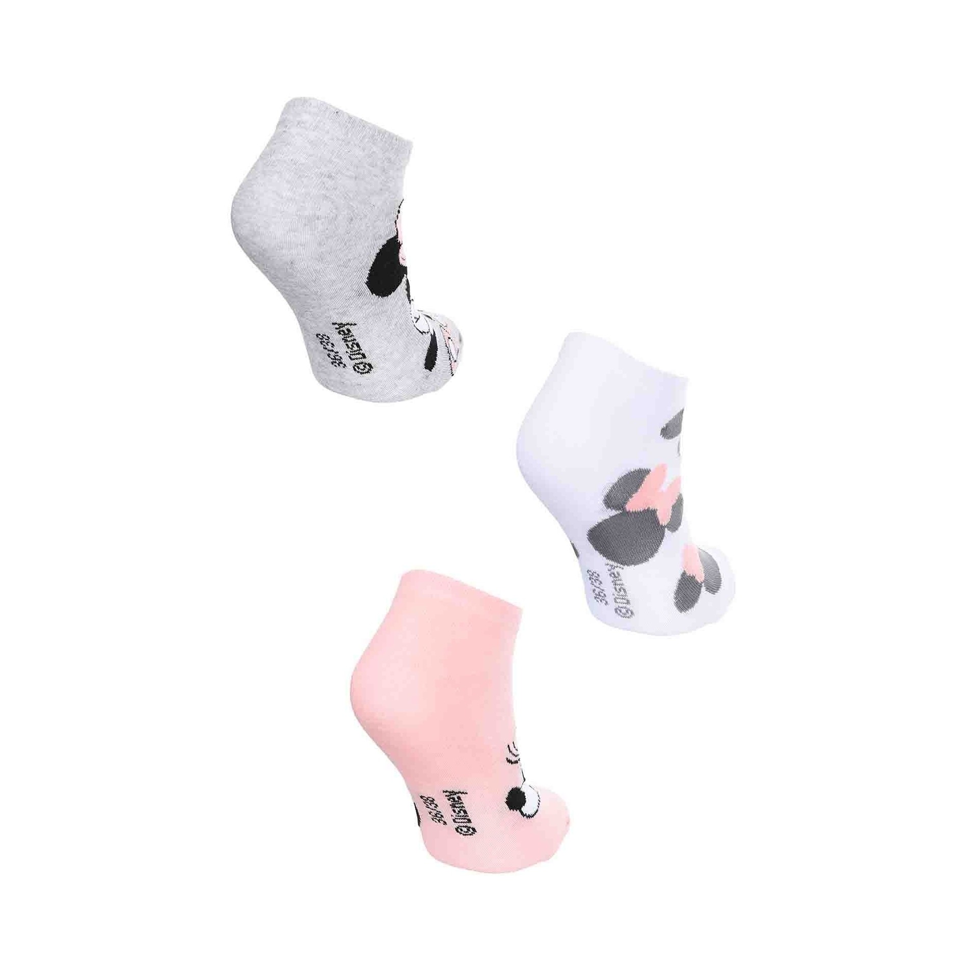 Set med 3 par "Mimmi Pigg"-strumpor i bomull för damer - officiell Disney-licens. Lågt skuren, varierad och färgglad design. Bekväma och andas. Storlekar: 36/38 eller 39/41