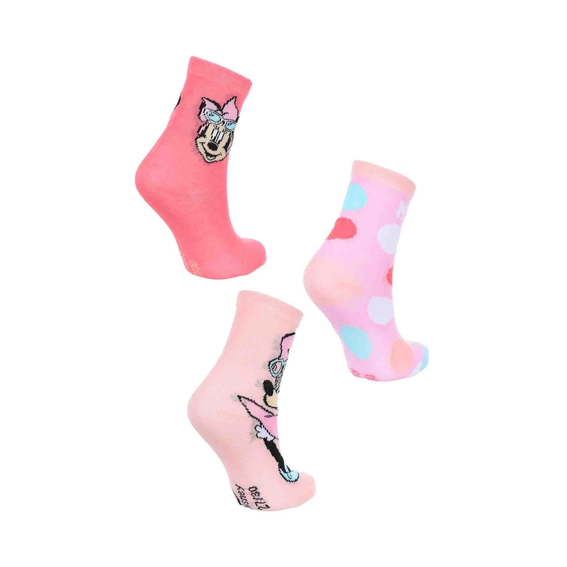 Förpackning med 3 par Minnie Mouse-strumpor för flickor, mjuka och bekväma med färgglada Disney-motiv. Perfekta för vardagsbruk och en bra presentidé. Snabb leverans.