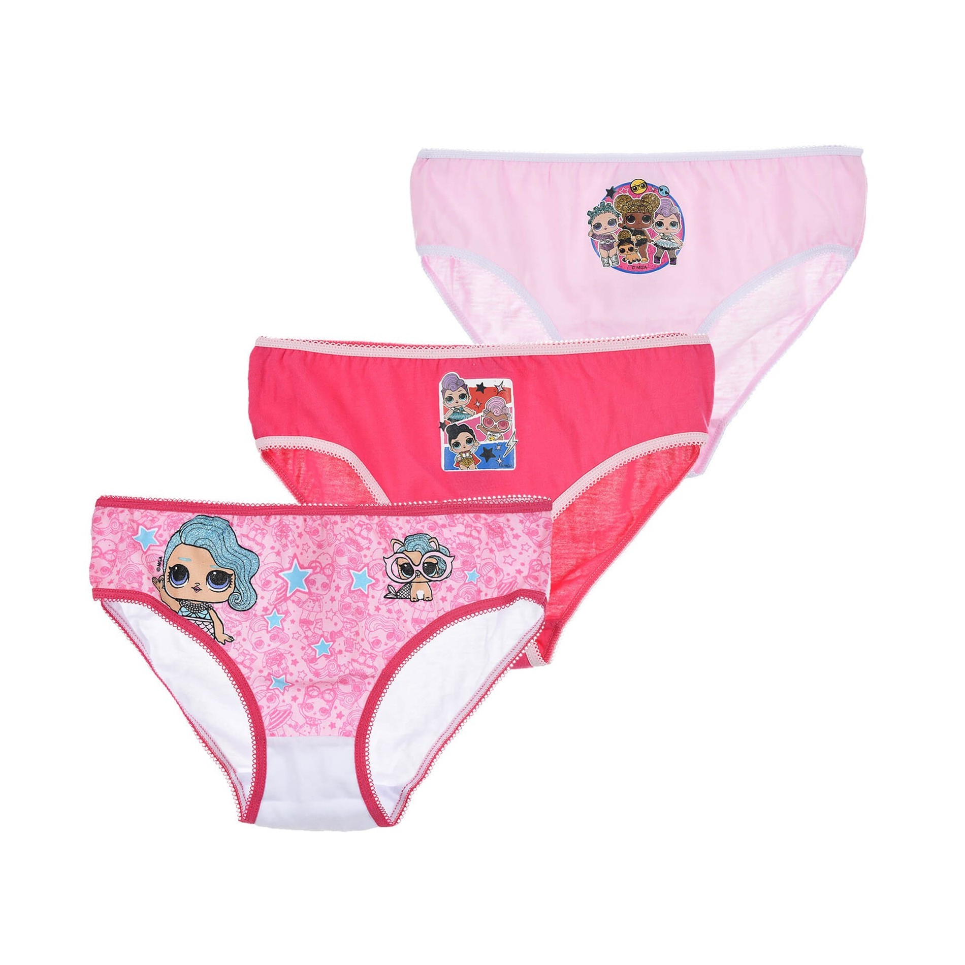 Set med 3 LOL Surprise! tjejtrosor - Elastisk linning - Elastisk benöppning - 100 % bomull OEKO-TEX® Mycket bekväm