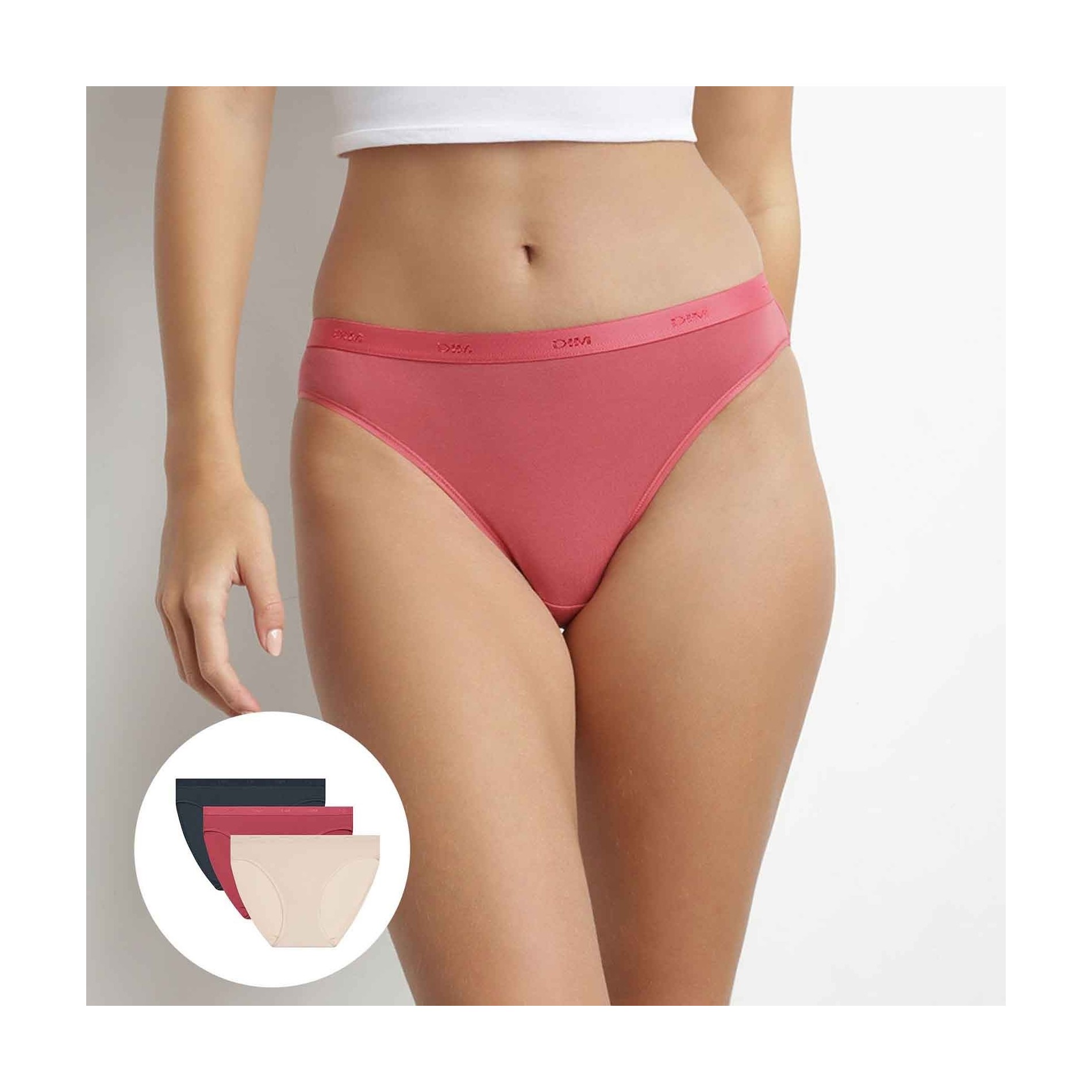 DIM Women's 3-Pair PackBälte med DIM-logotypExtremt bekväm tack vare kvaliteten och bomullsstretchmaterialetFlera enfärgade färger att välja mellanUtan etiketter, utan klåda