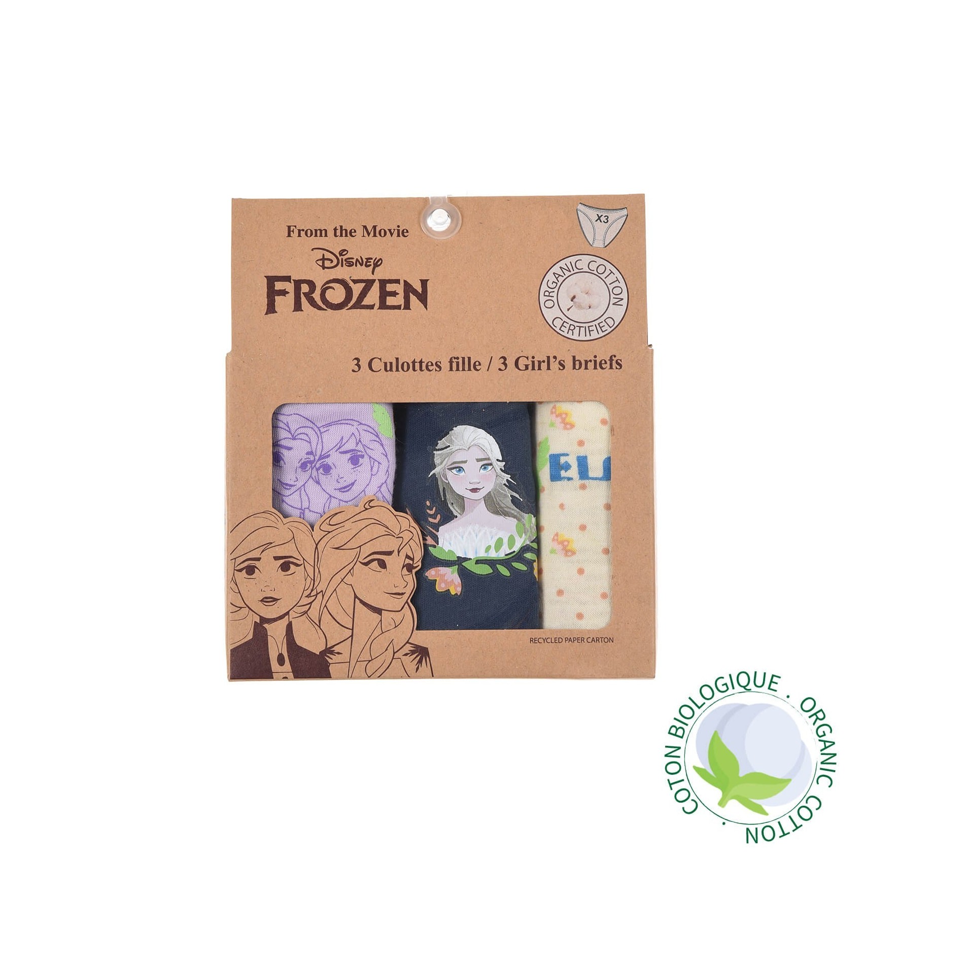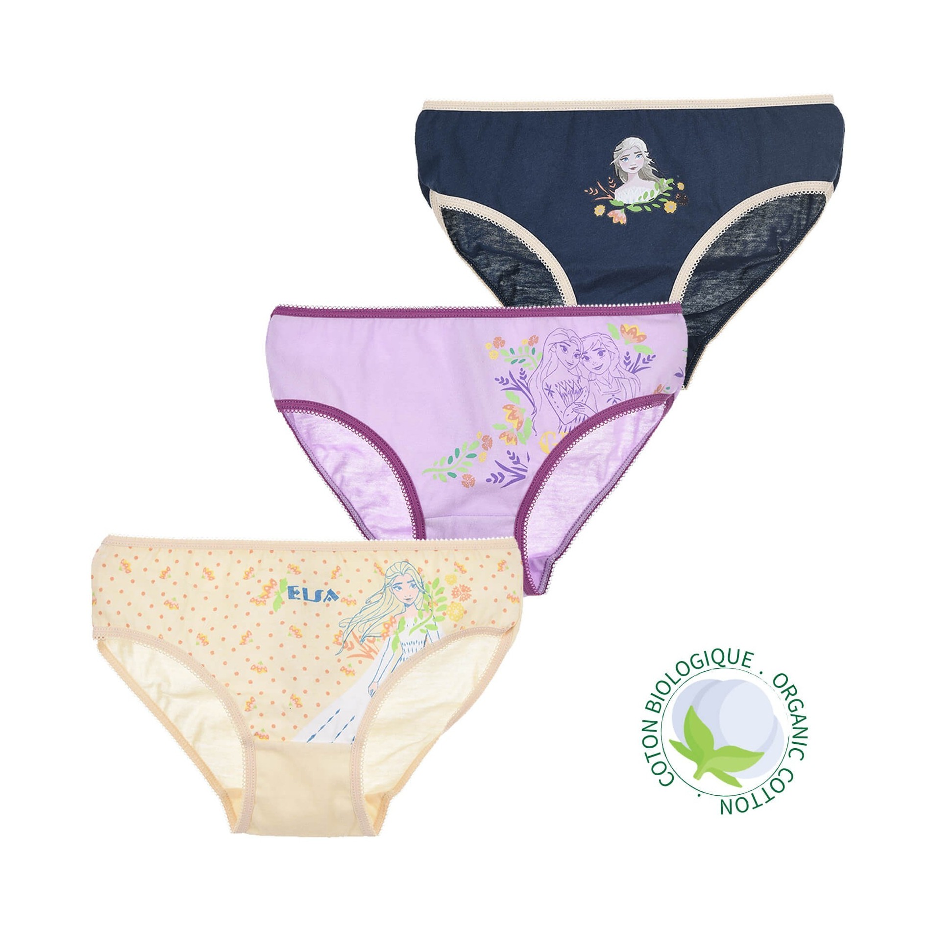 Set med 3 Snödrottning "FROZEN"-trosor för flickor i officiell DISNEY-licens. 100 % bomull Oekotex Mycket bekväm.