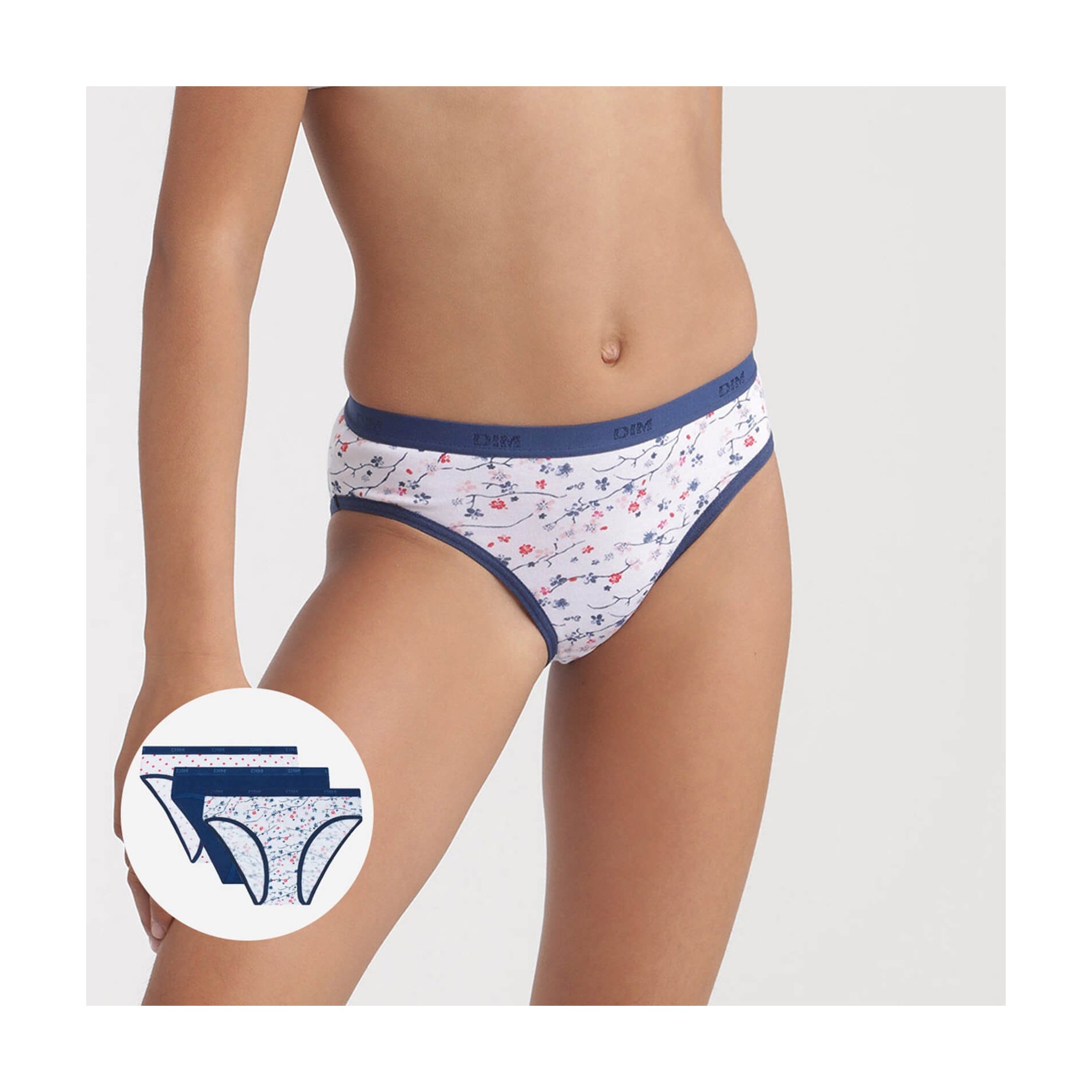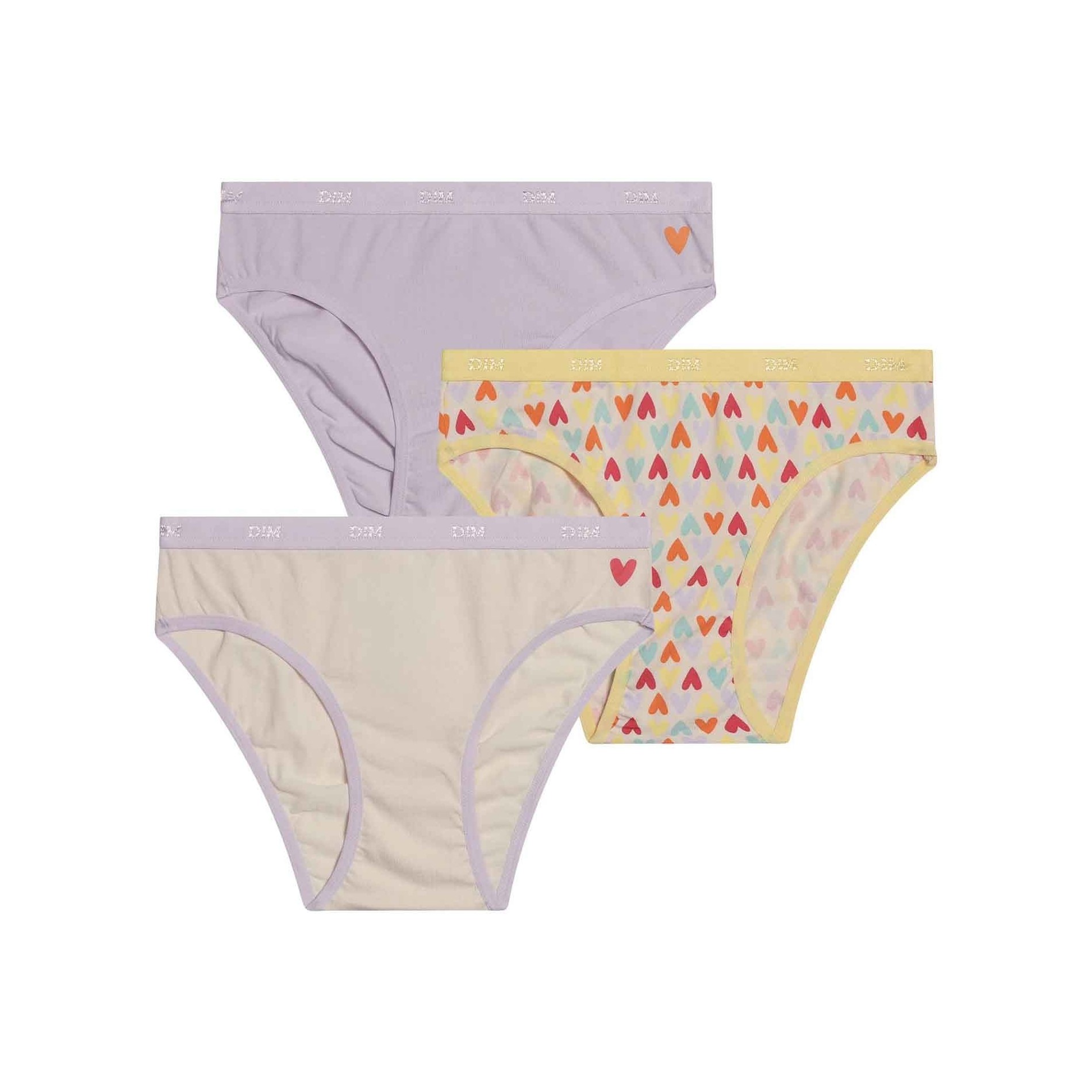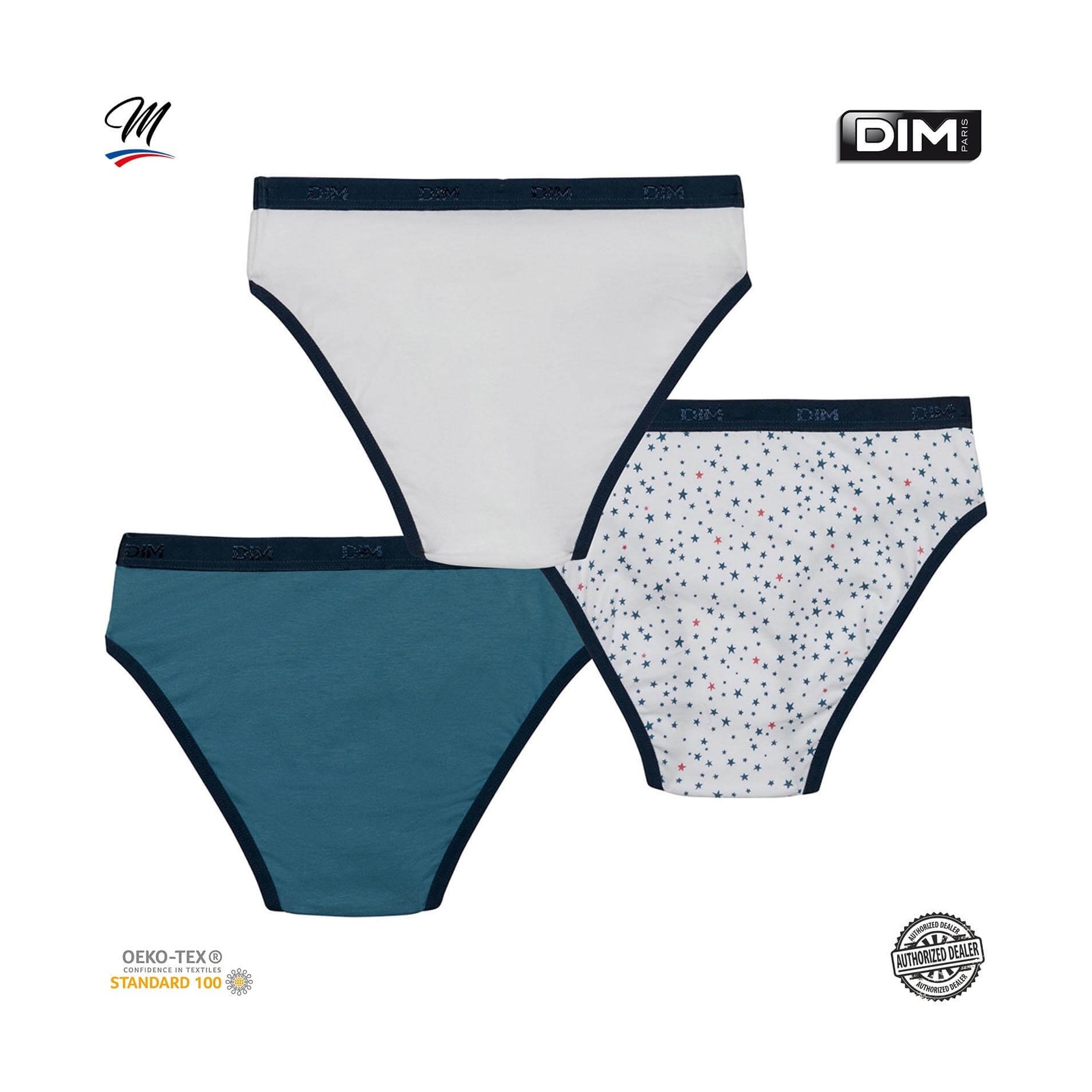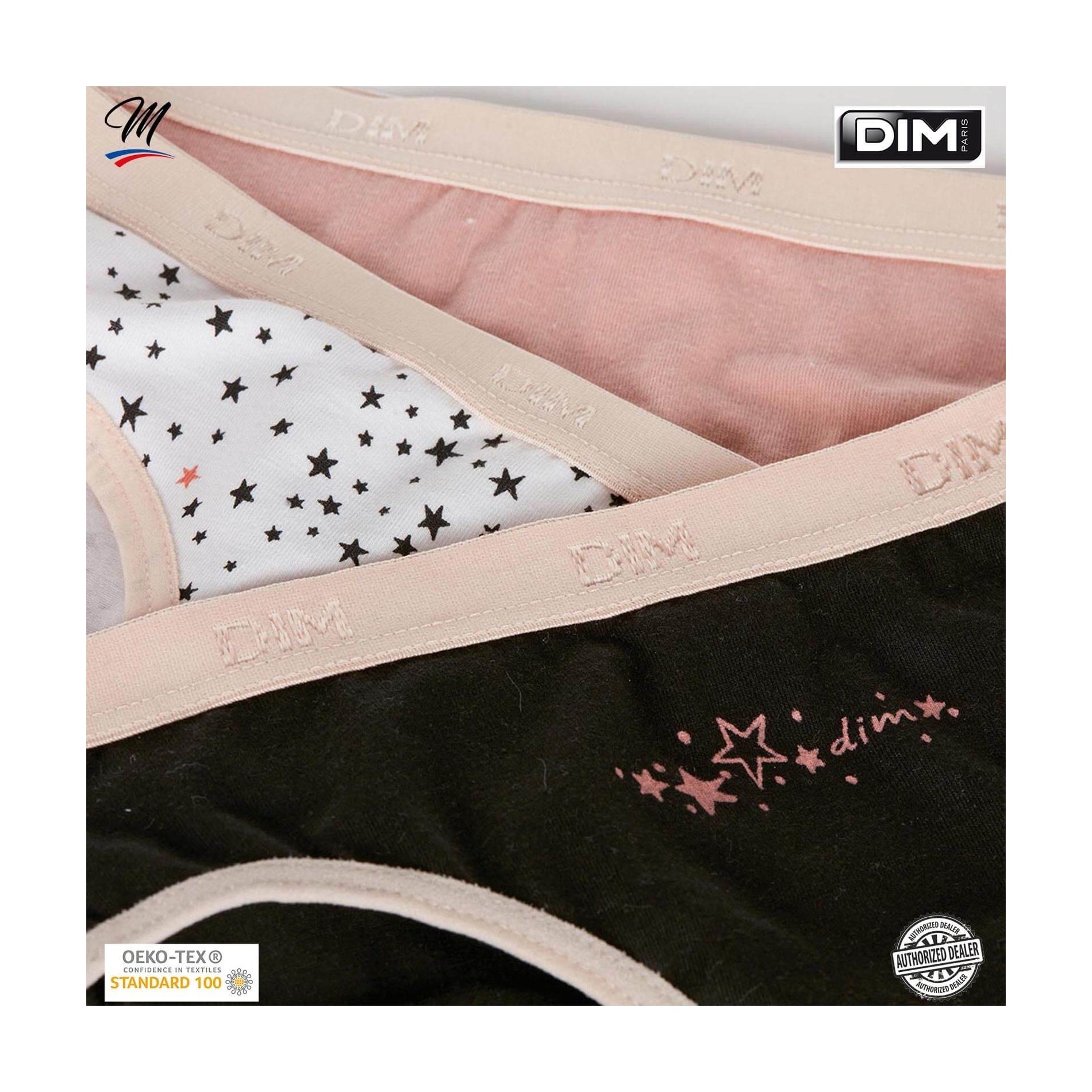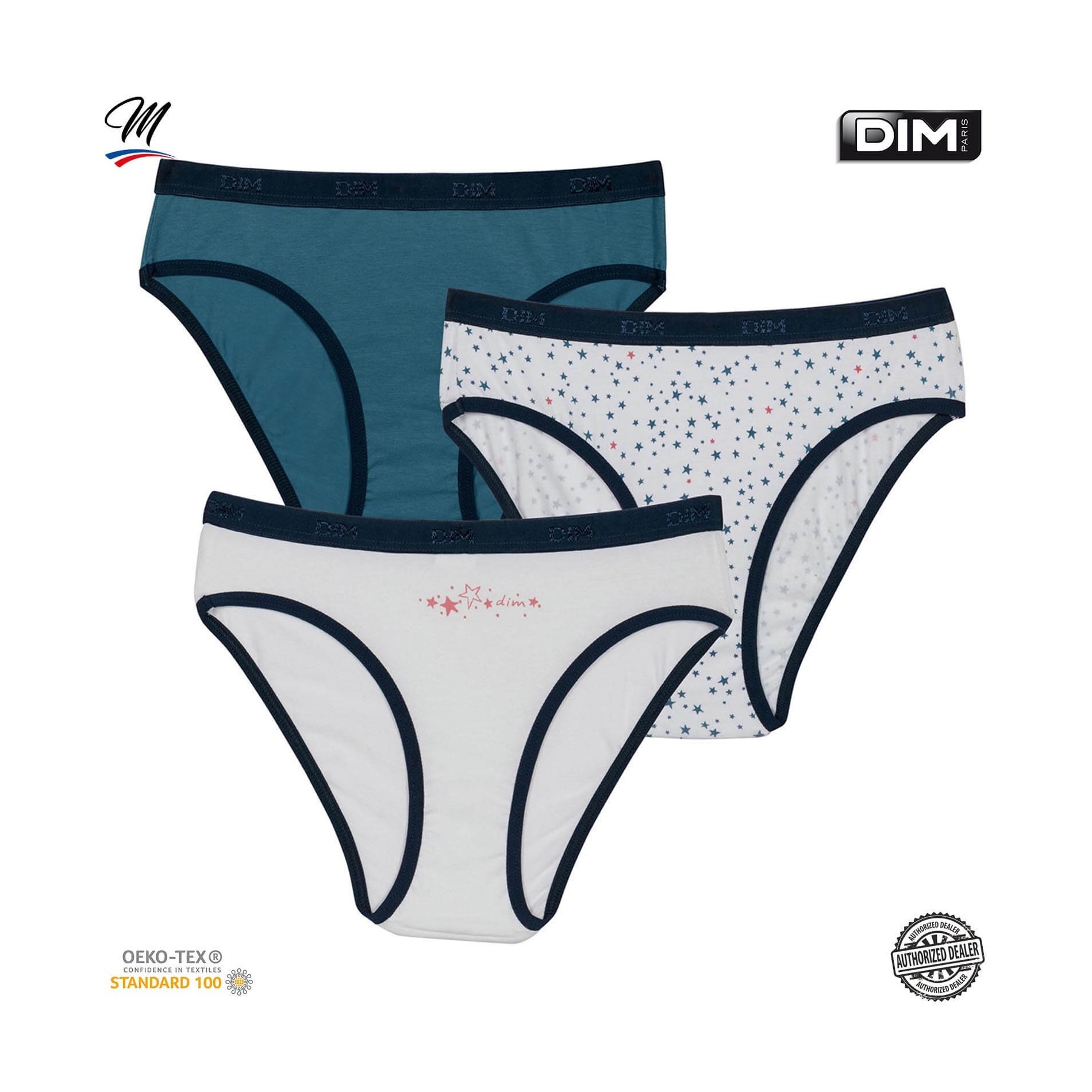 Hitta DIM-sortimentet av flicktrosor i ett set med 3 bomullstrosor, bekväma, med attraktiva och färgglada mönster, så att din dotter får en originell stil. 95 % bomull, 5 % elastan