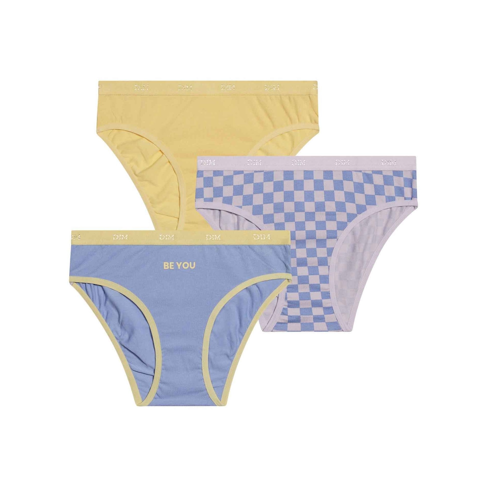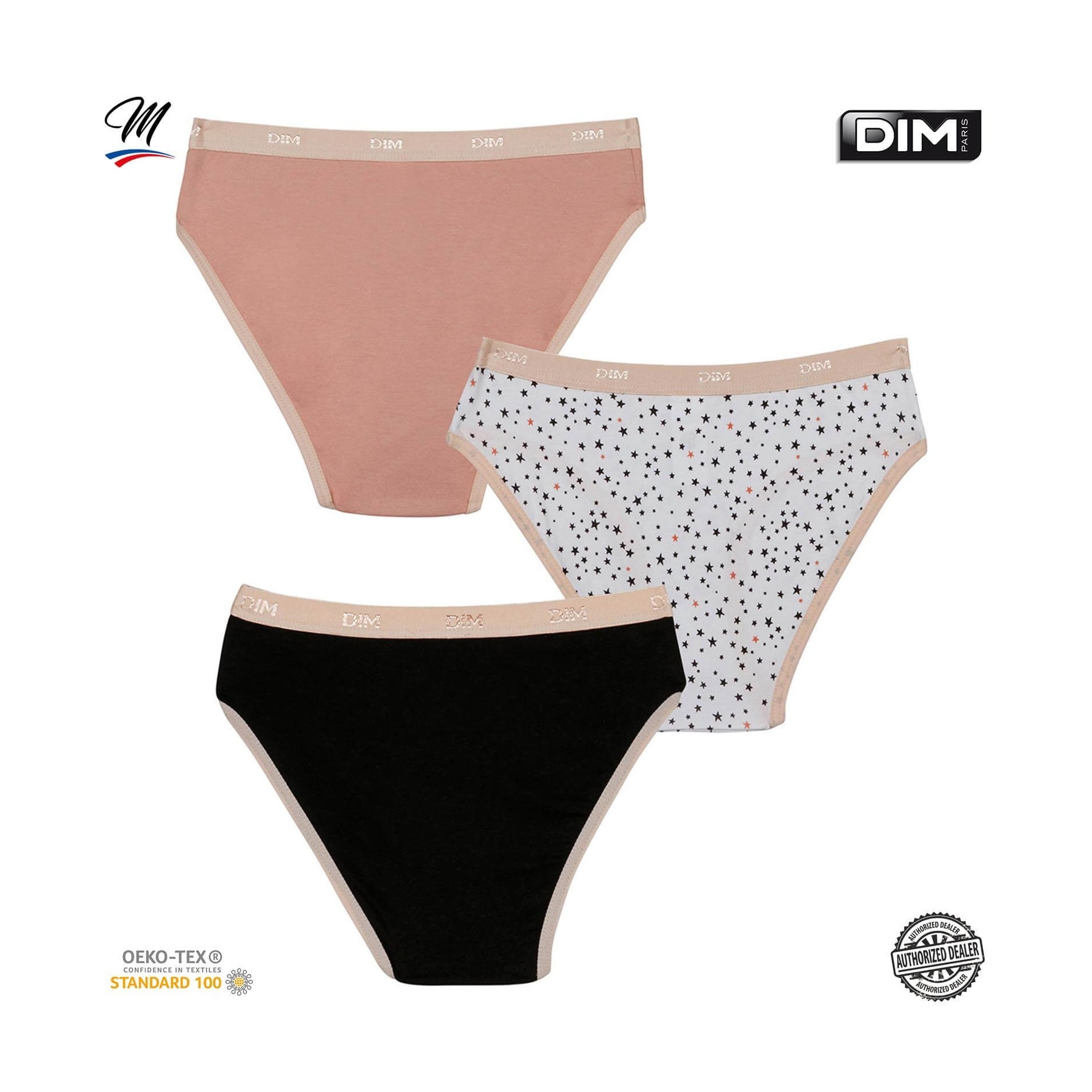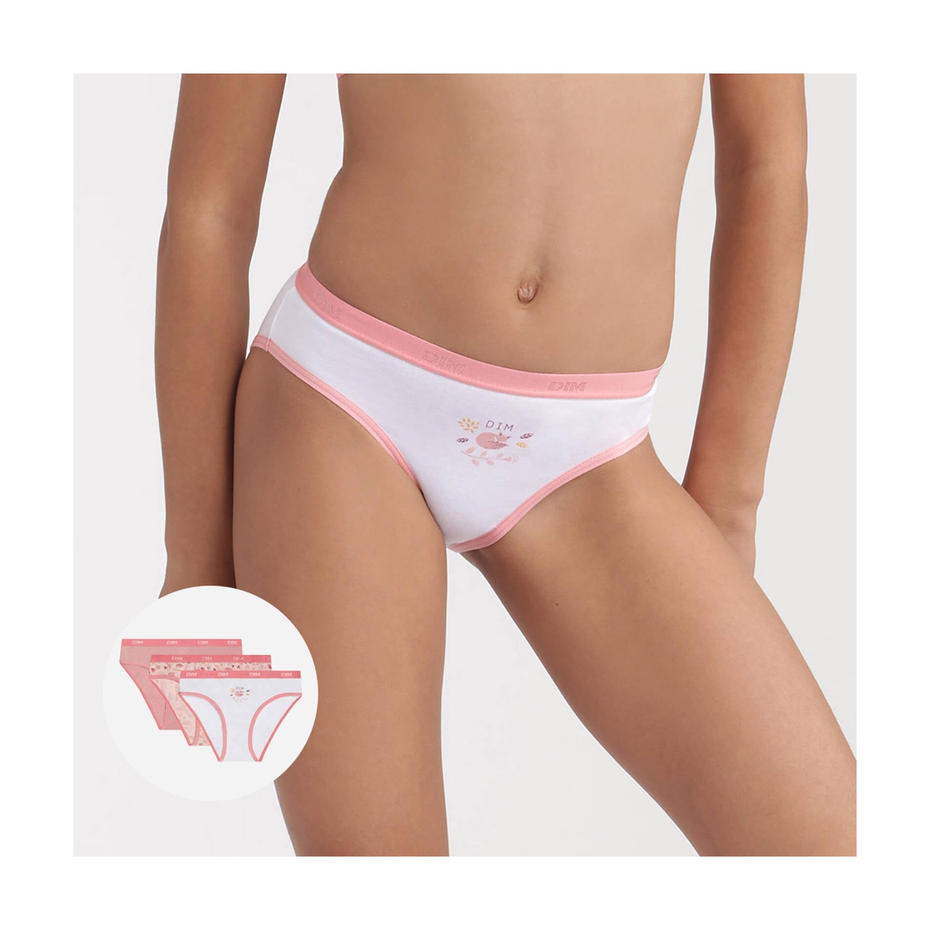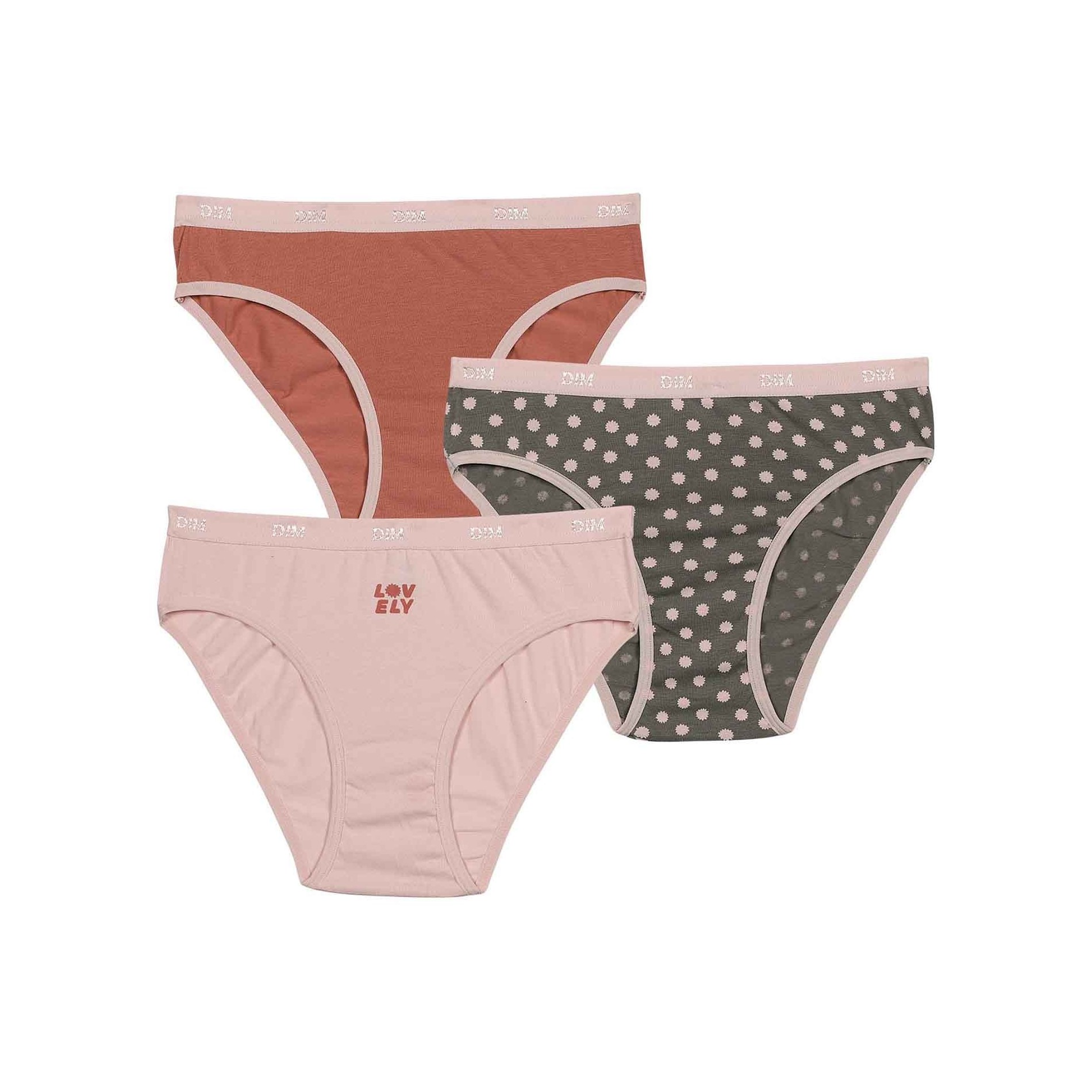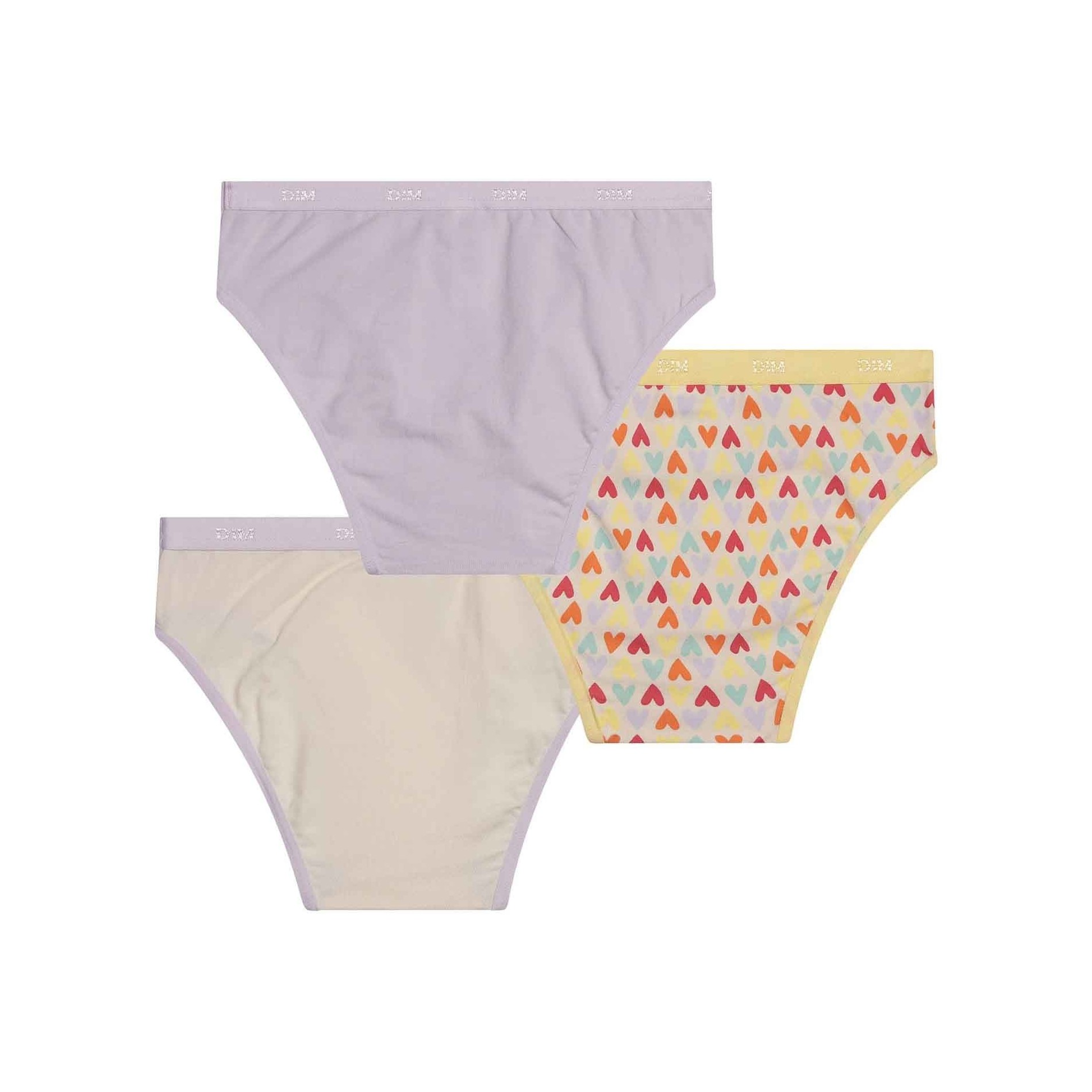 Hitta DIM-sortimentet av flicktrosor i ett set med 3 bomullstrosor, bekväma, med attraktiva och färgglada mönster, så att din dotter får en originell stil. 95 % bomull, 5 % elastan