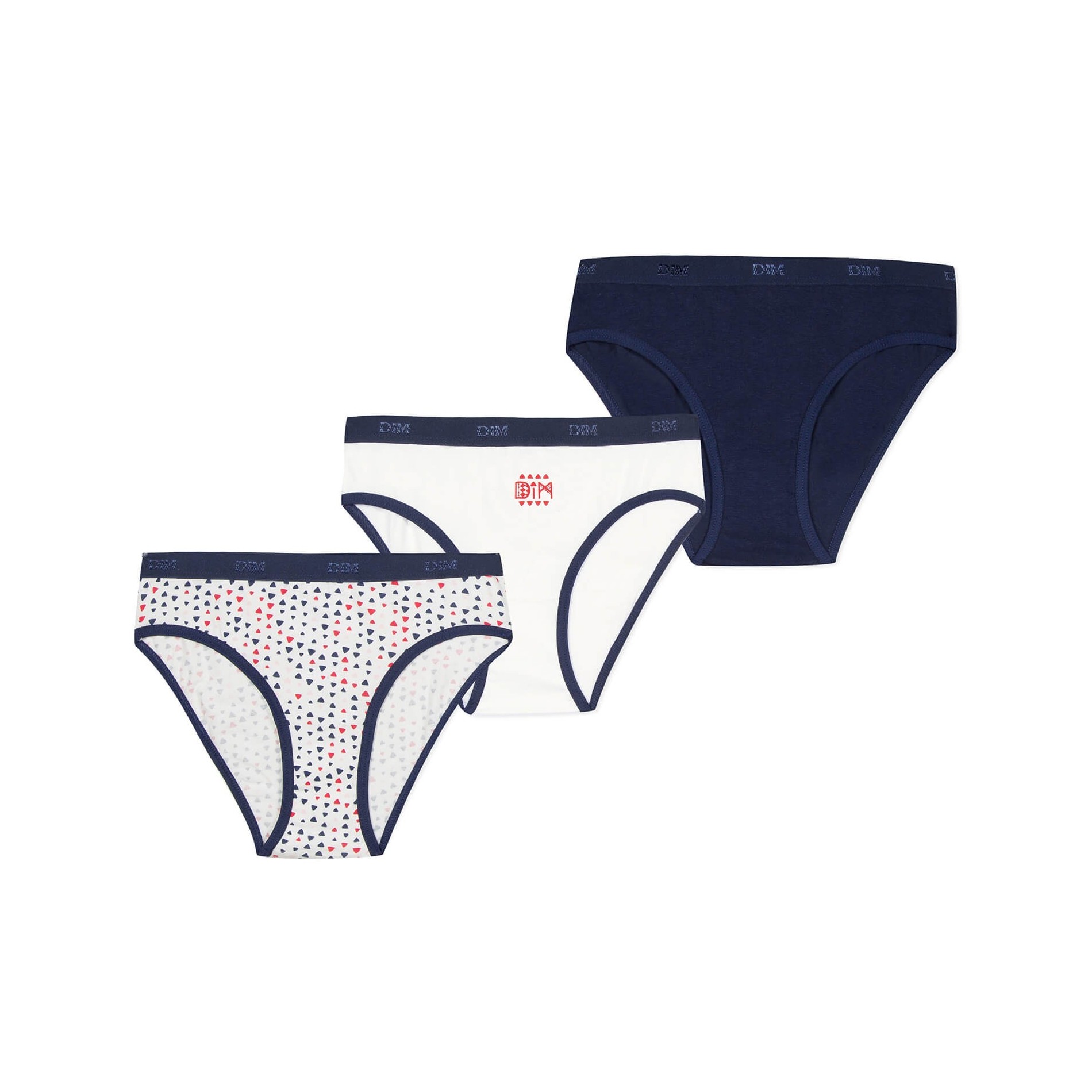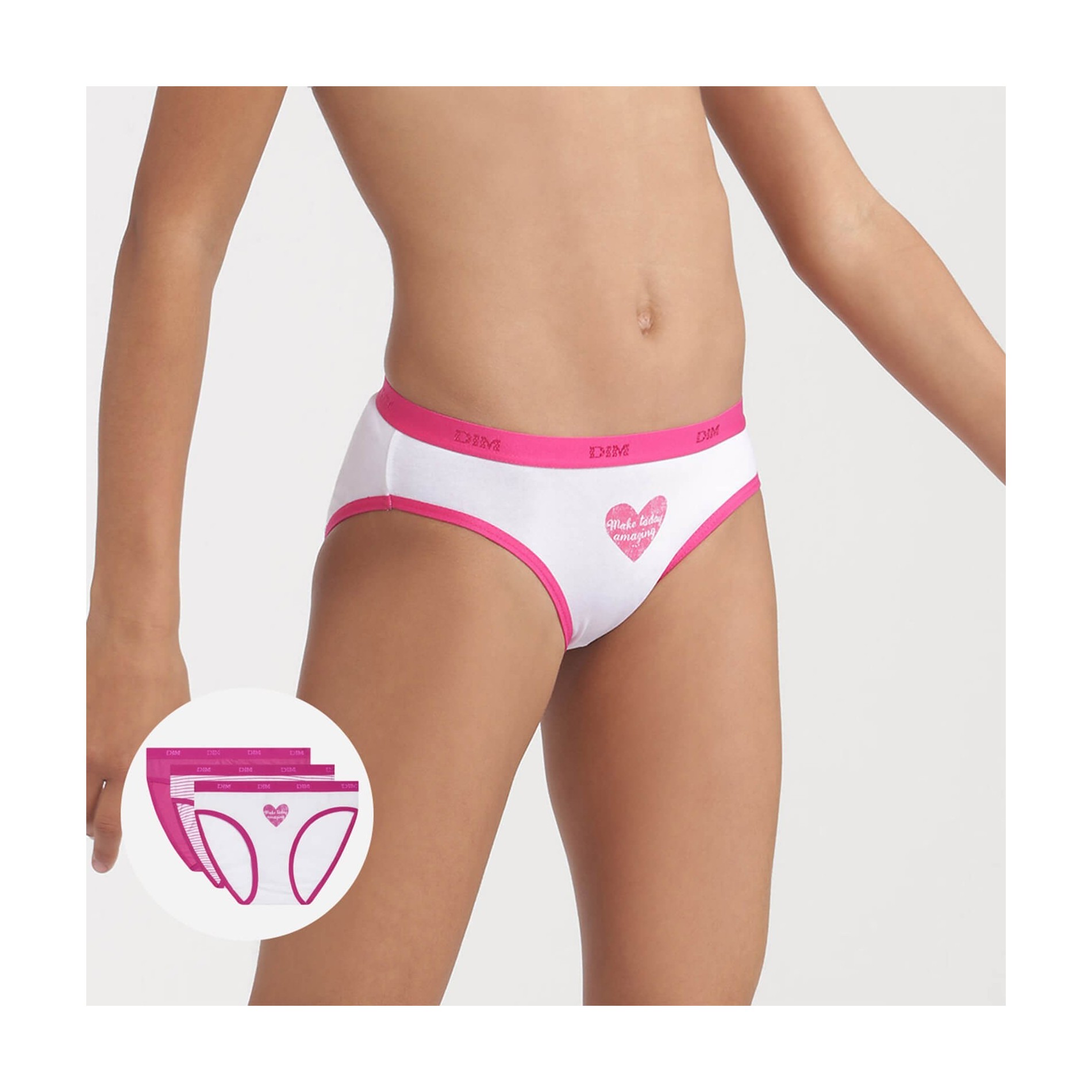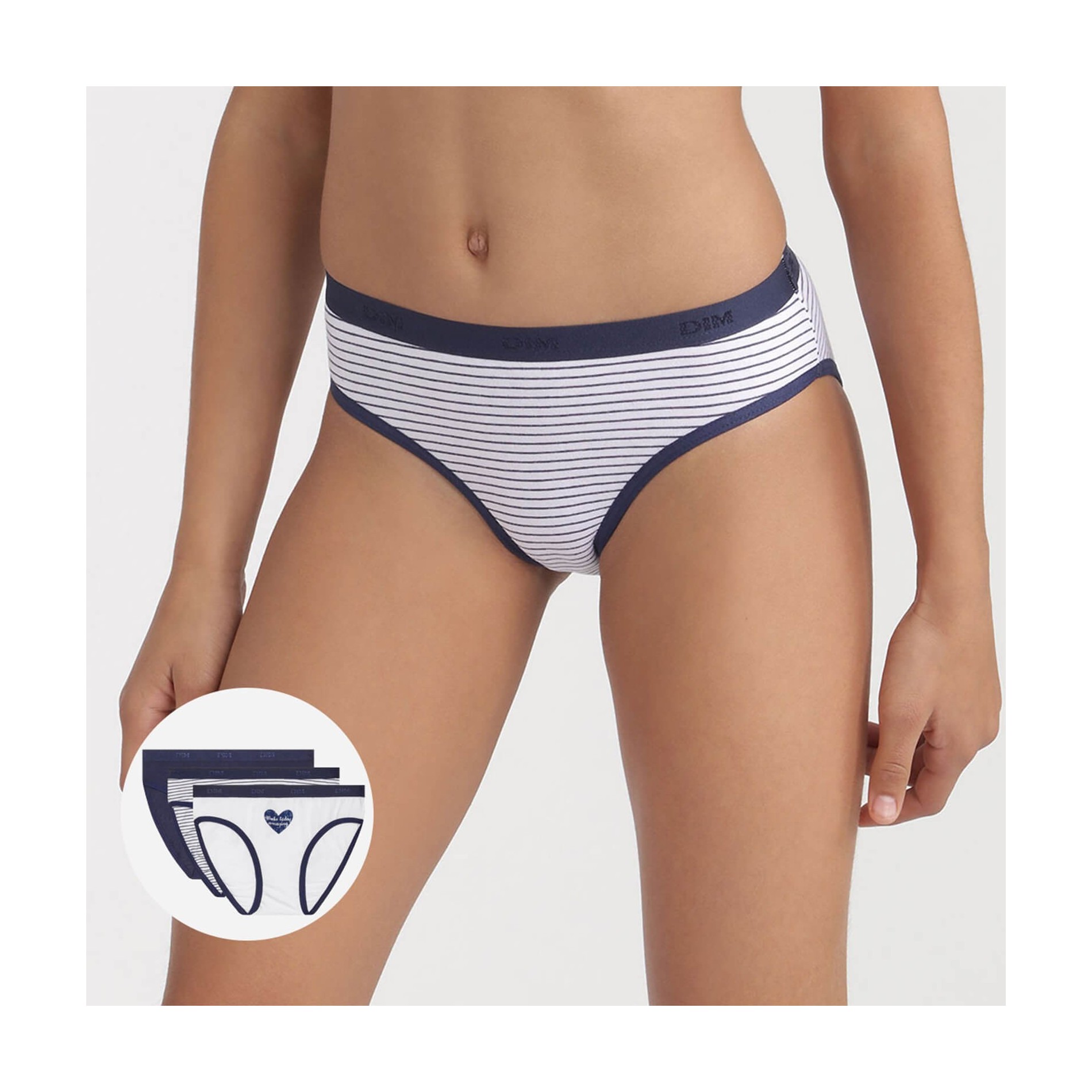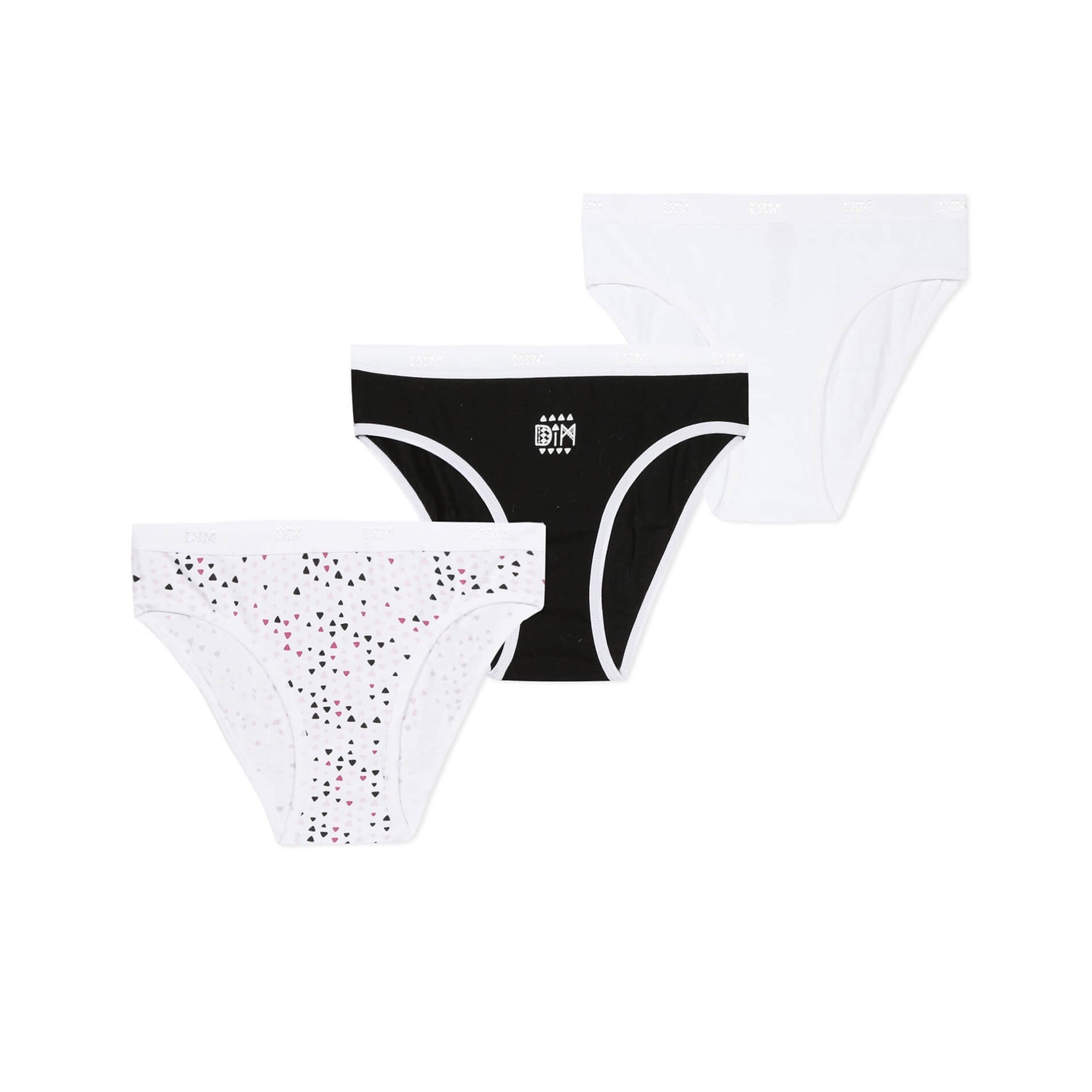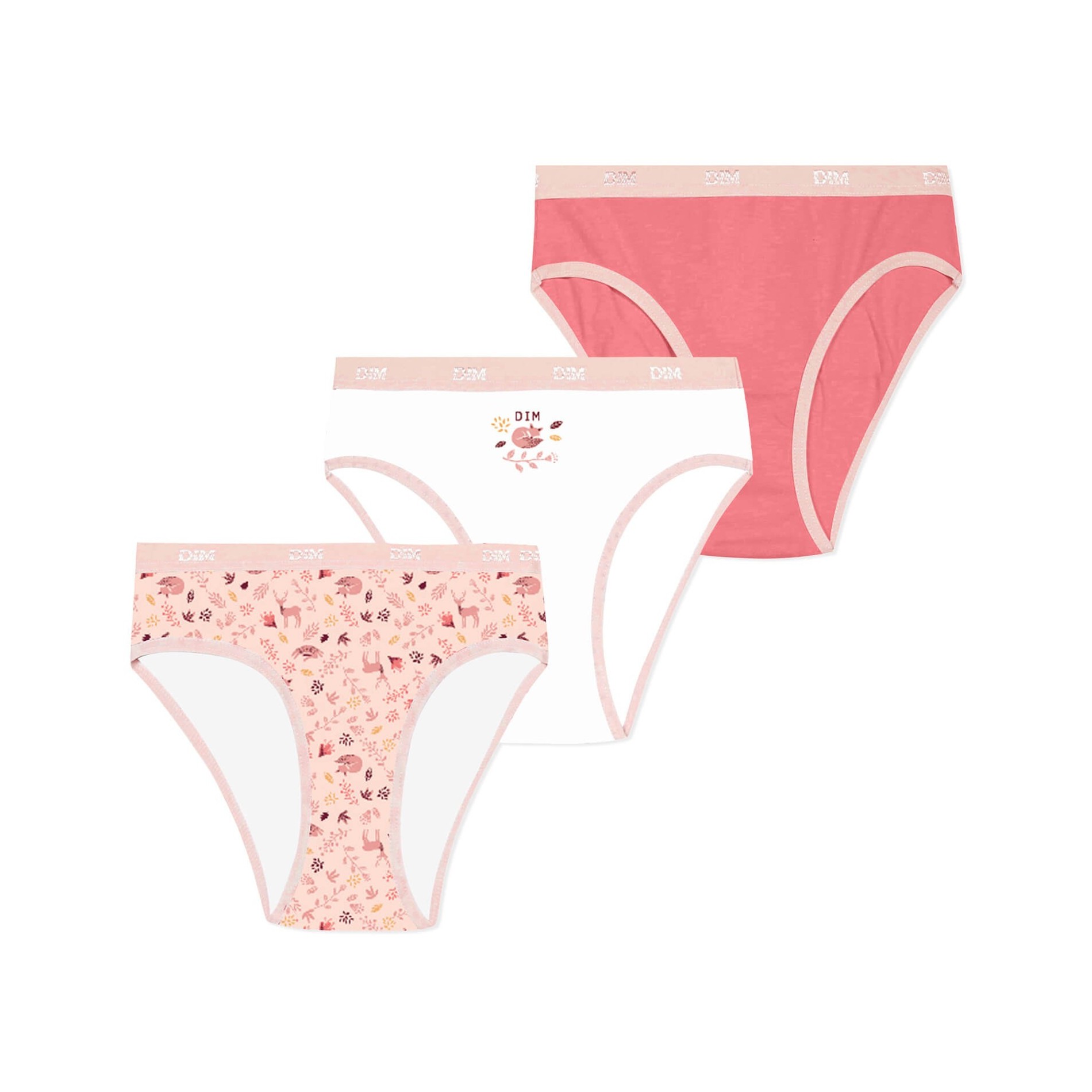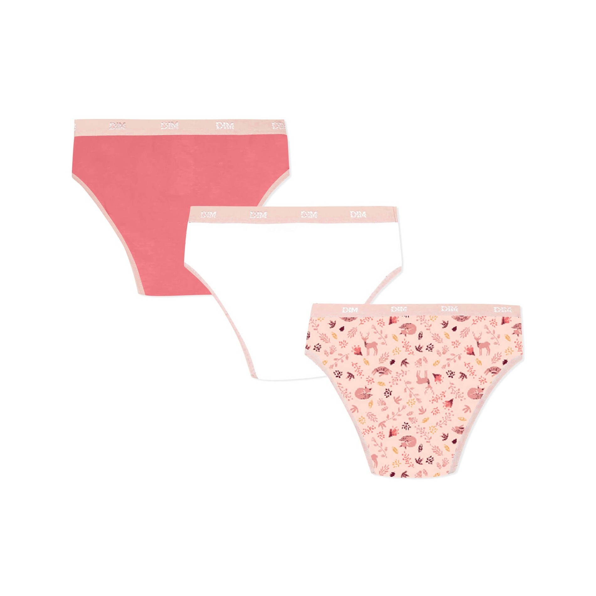 Hitta DIM-sortimentet av flicktrosor i ett set med 3 bomullstrosor, bekväma, med attraktiva och färgglada mönster, så att din dotter får en originell stil. 95 % bomull, 5 % elastan