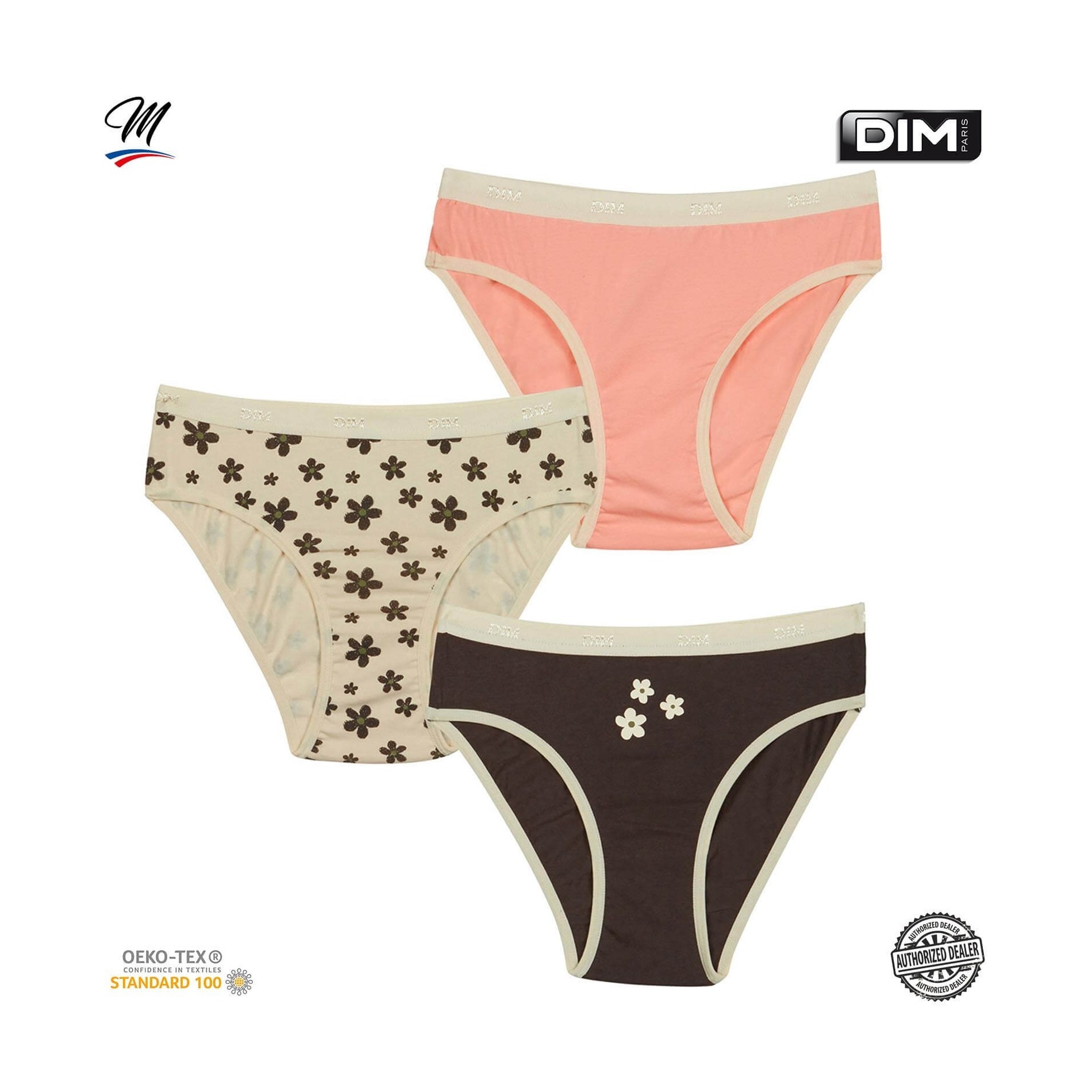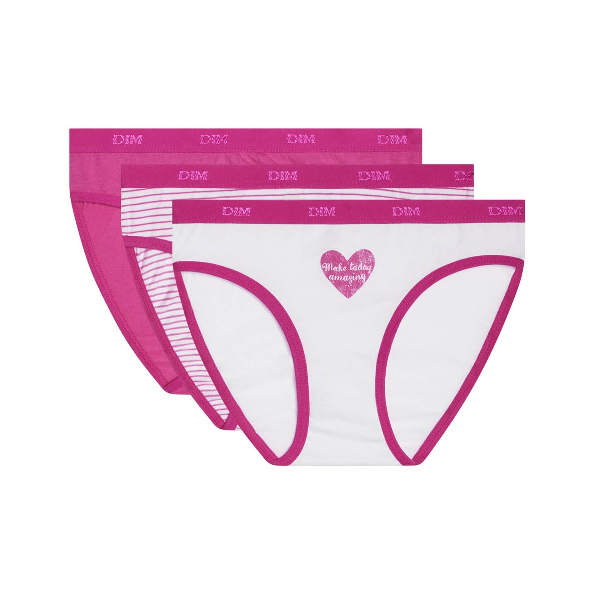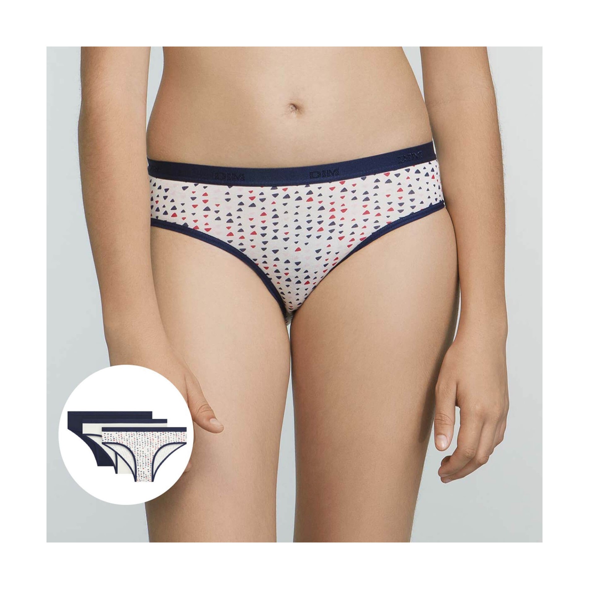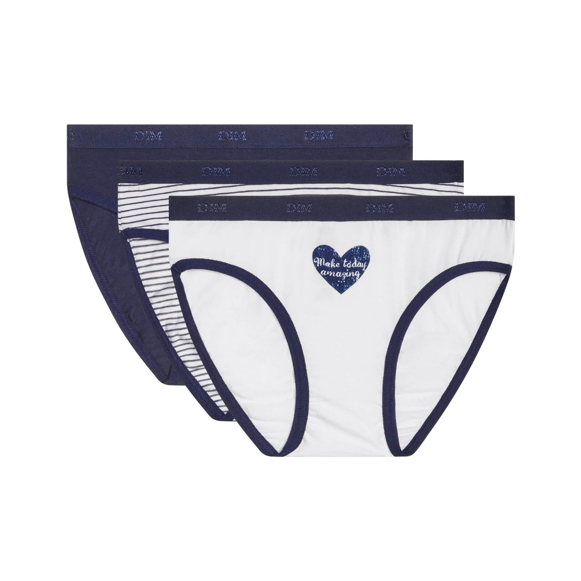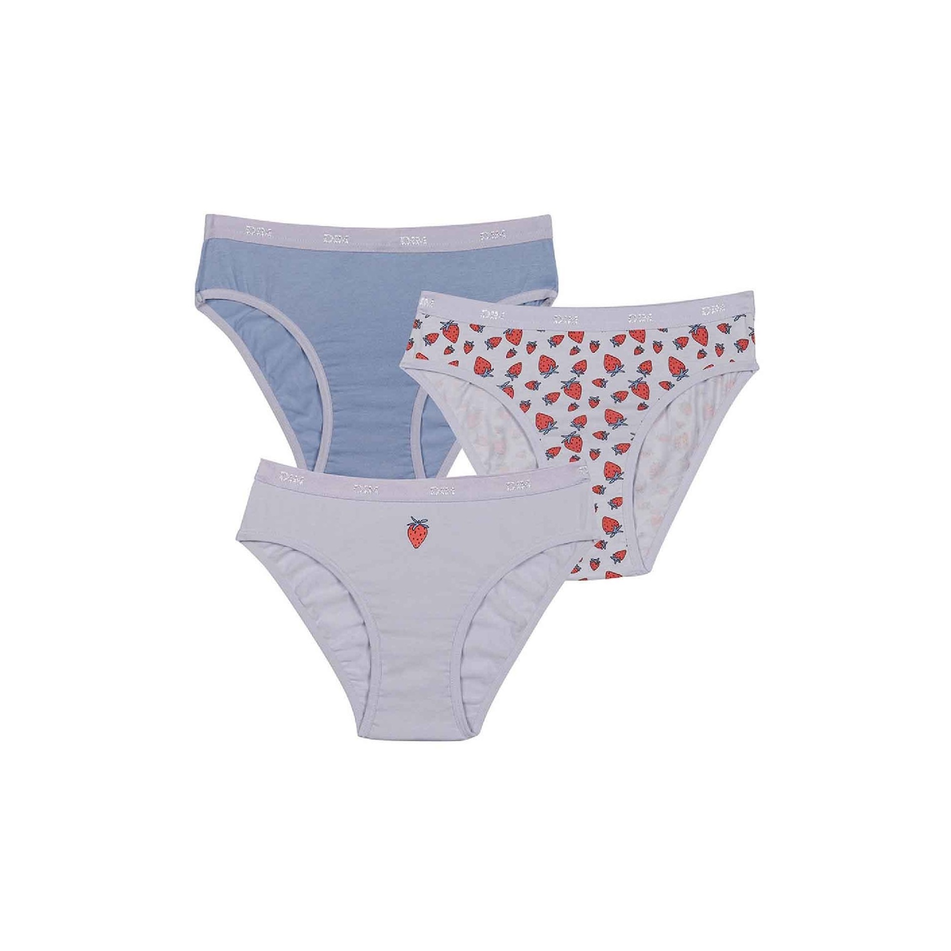 Hitta DIM-sortimentet av flicktrosor i ett set med 3 bomullstrosor, bekväma, med attraktiva och färgglada mönster, så att din dotter får en originell stil. 95 % bomull, 5 % elastan