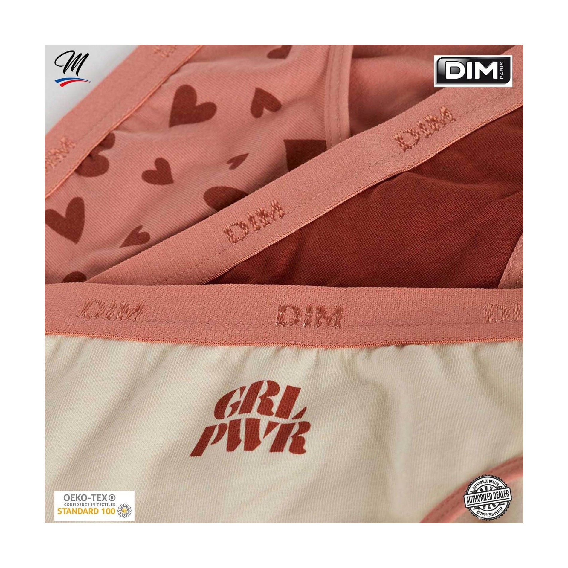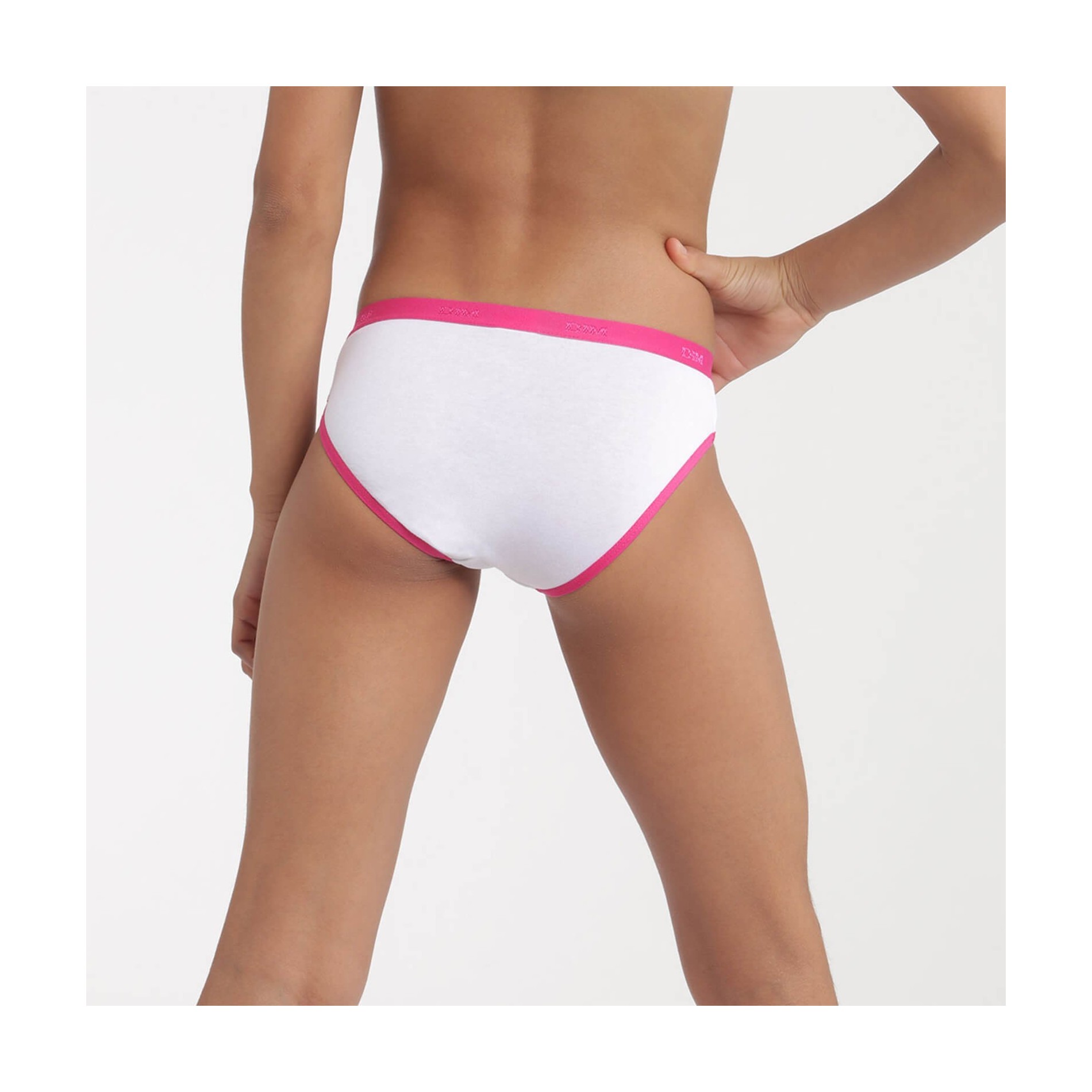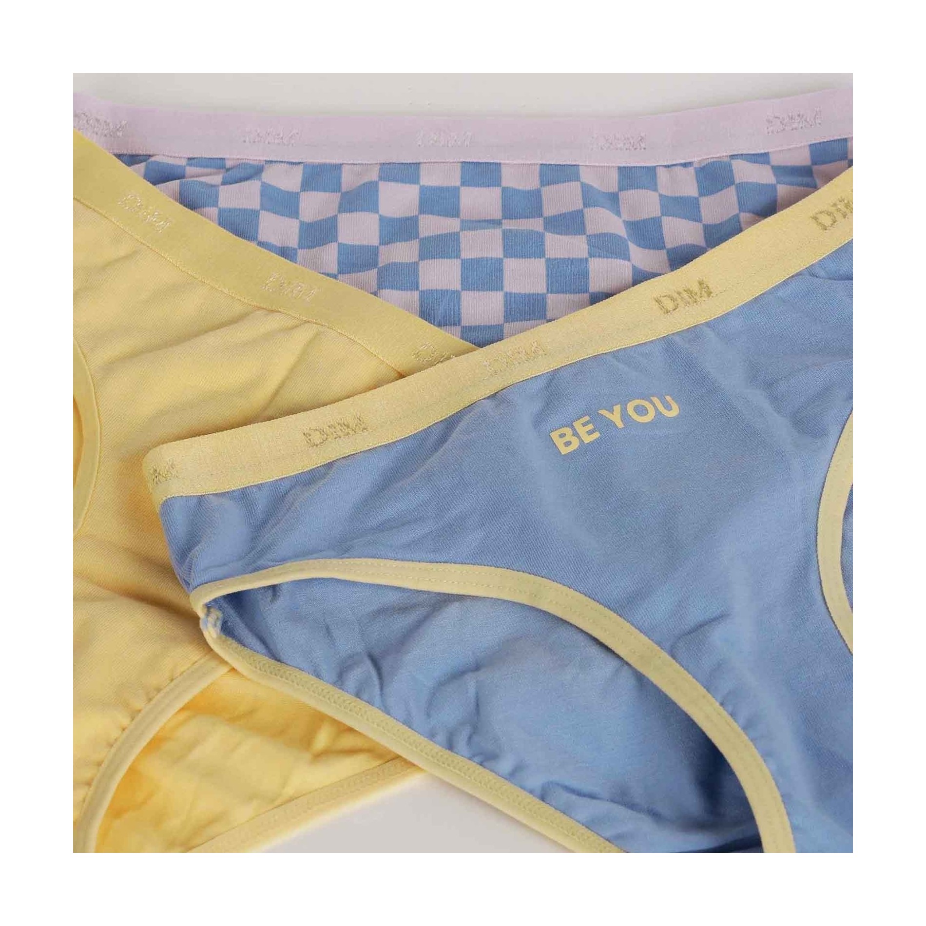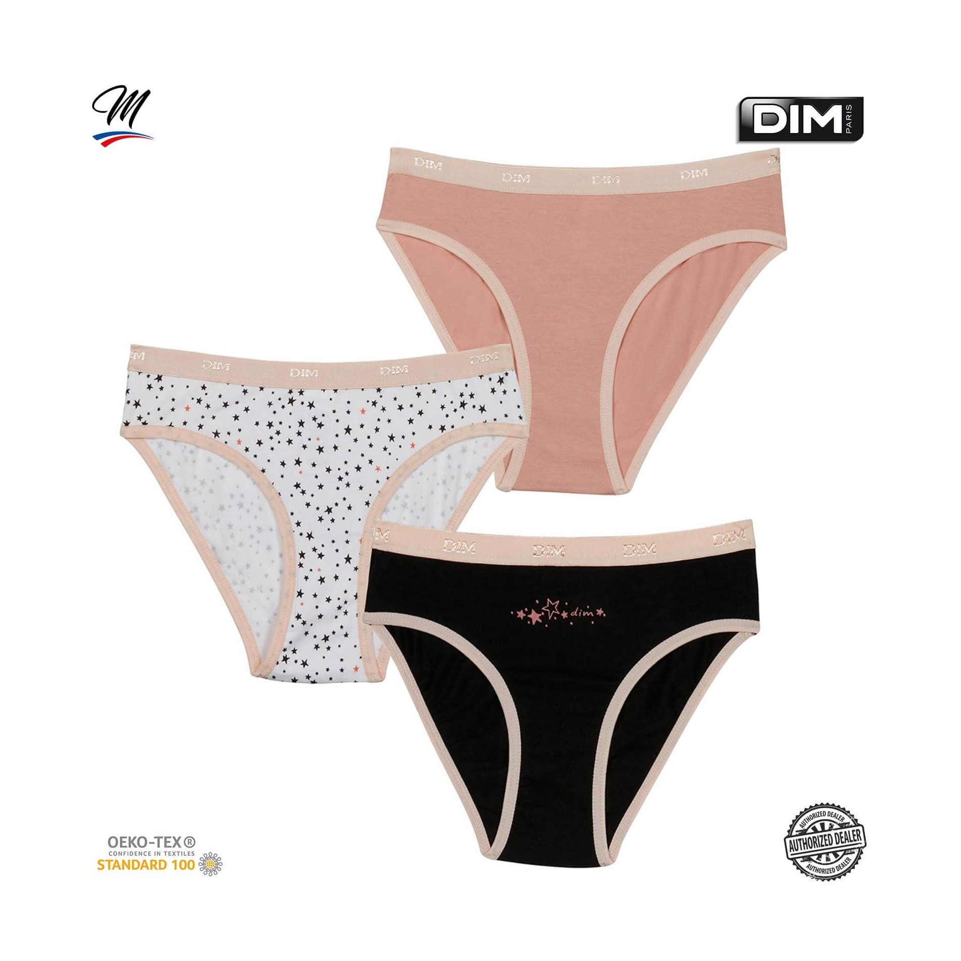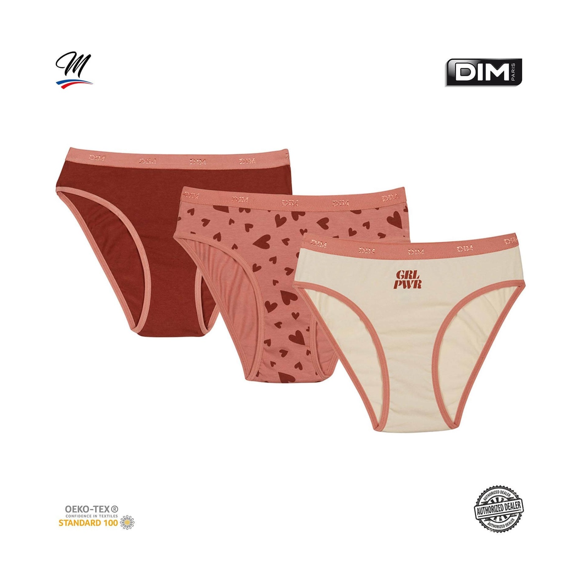 Hitta DIM-sortimentet av flicktrosor i ett set med 3 bomullstrosor, bekväma, med attraktiva och färgglada mönster, så att din dotter får en originell stil. 95 % bomull, 5 % elastan